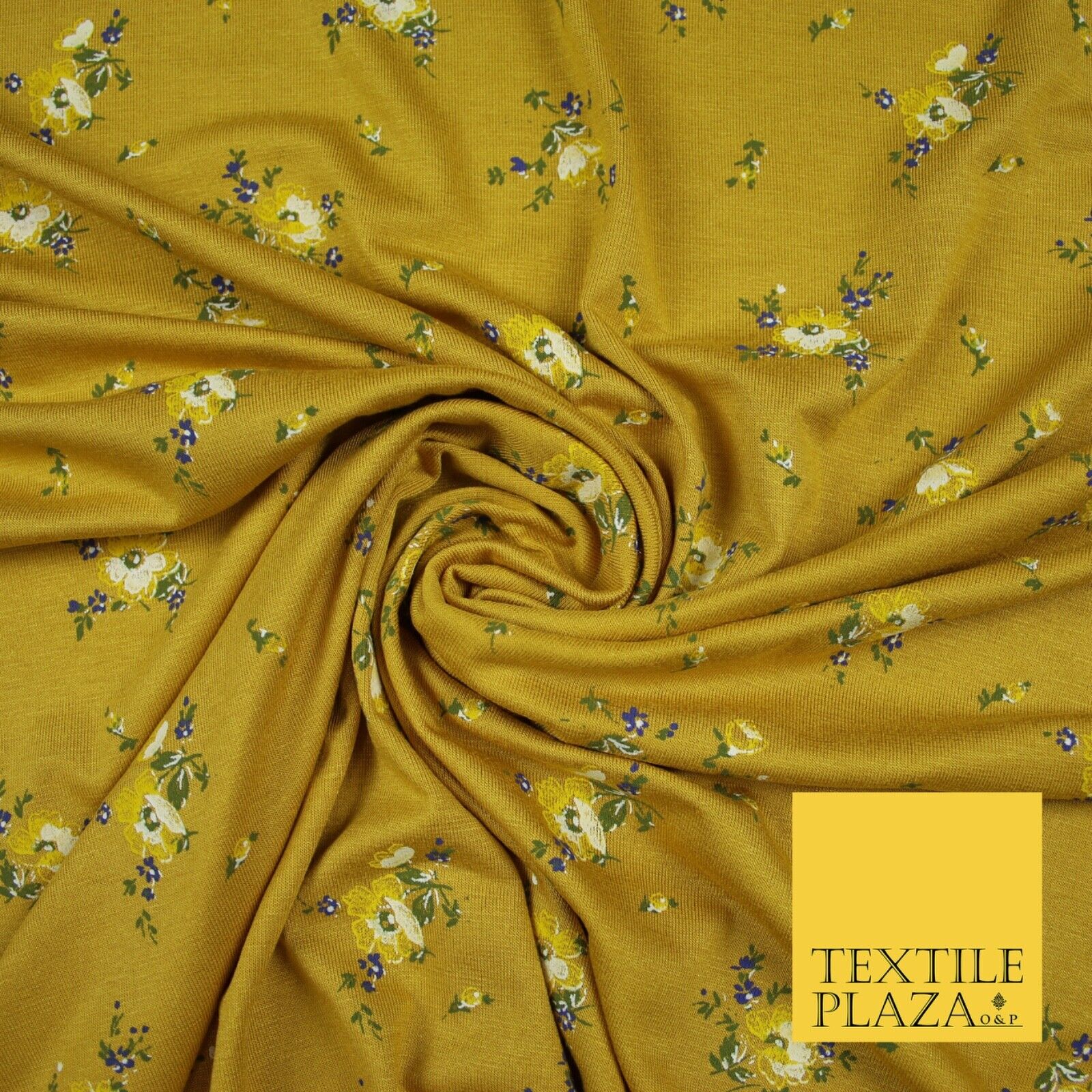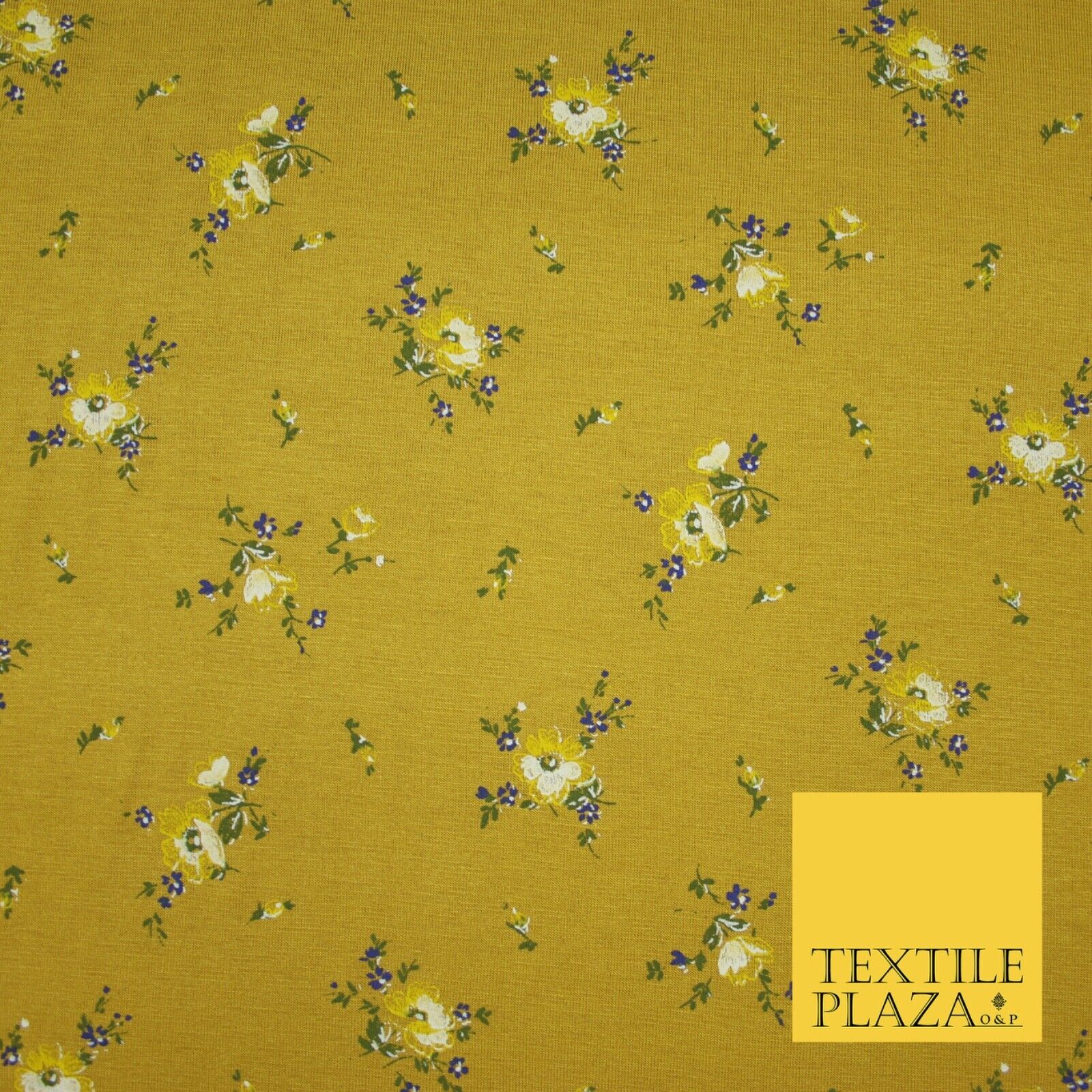 Mustard Ochre Ditsy Floral Printed Soft Touch Stretch Jersey Fabric 56" 6742