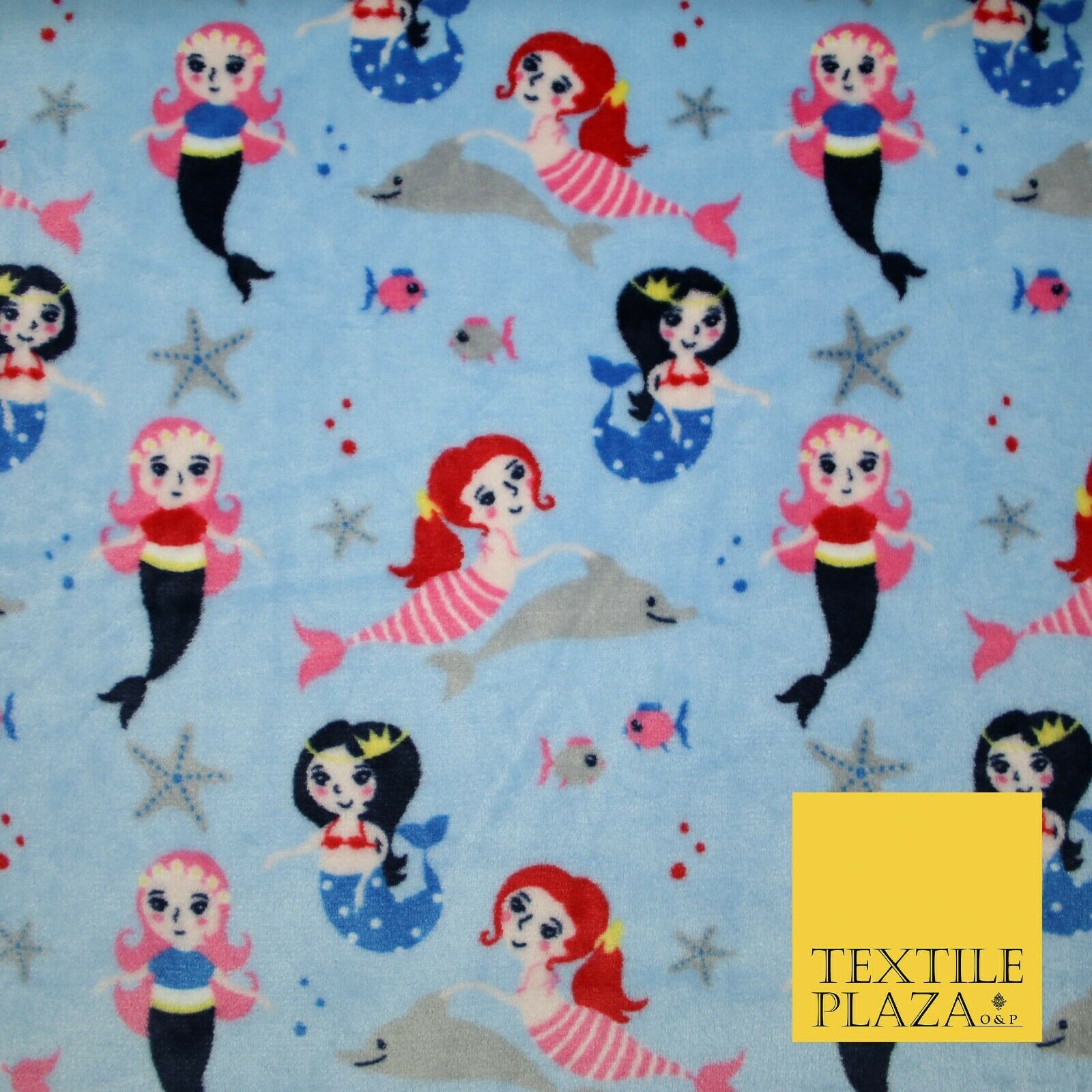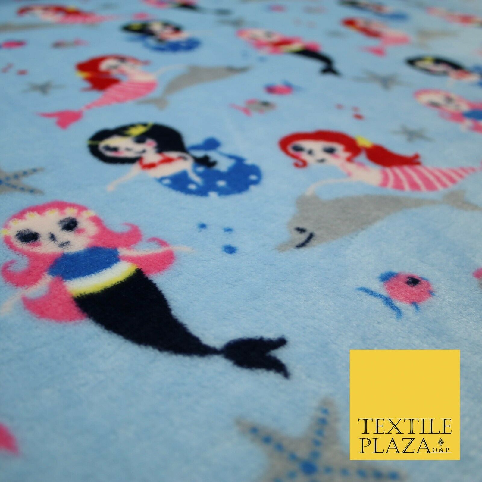 Mythical Mermaid Dolphin Stars SUPER SOFT Printed Cuddle Fleece Blankets Craft