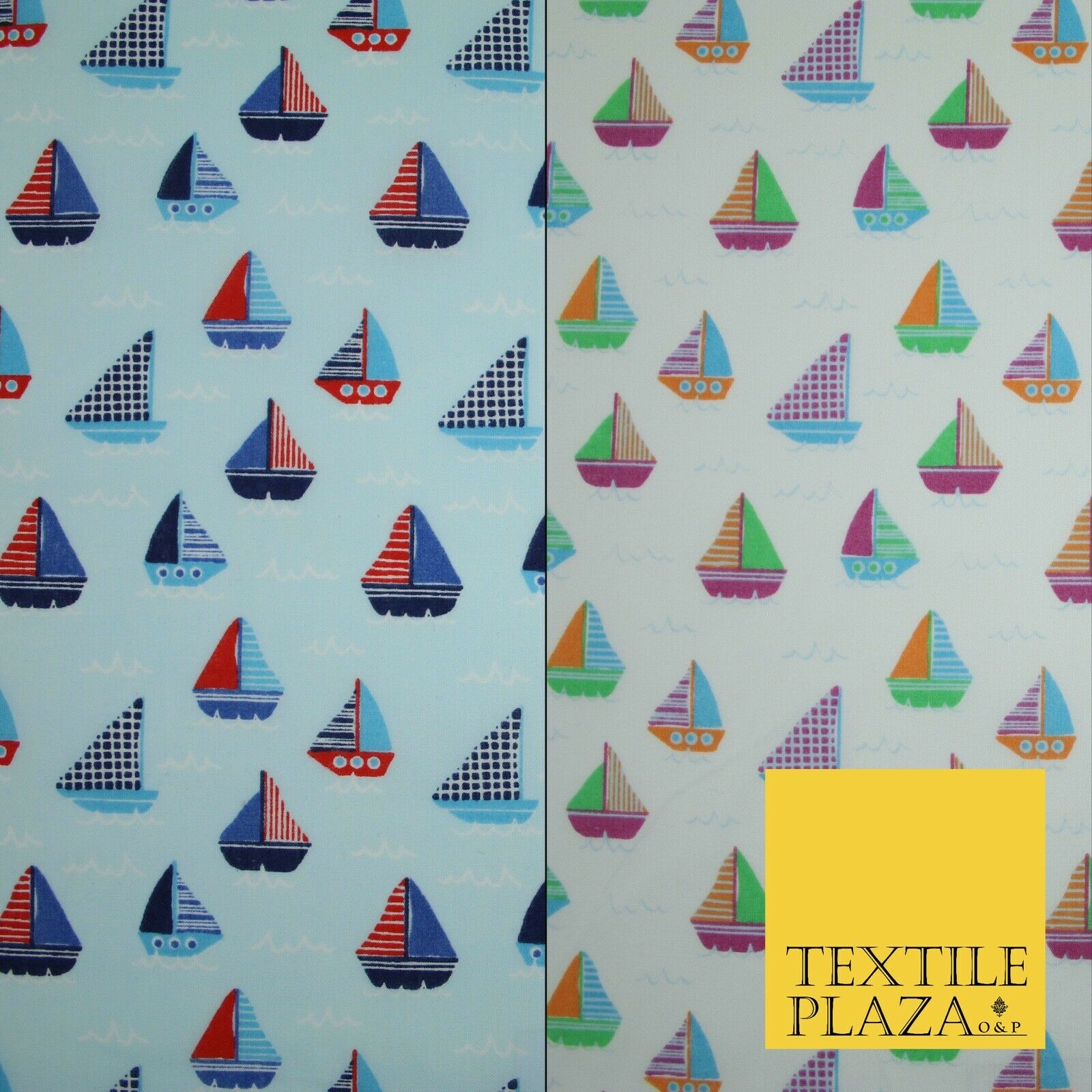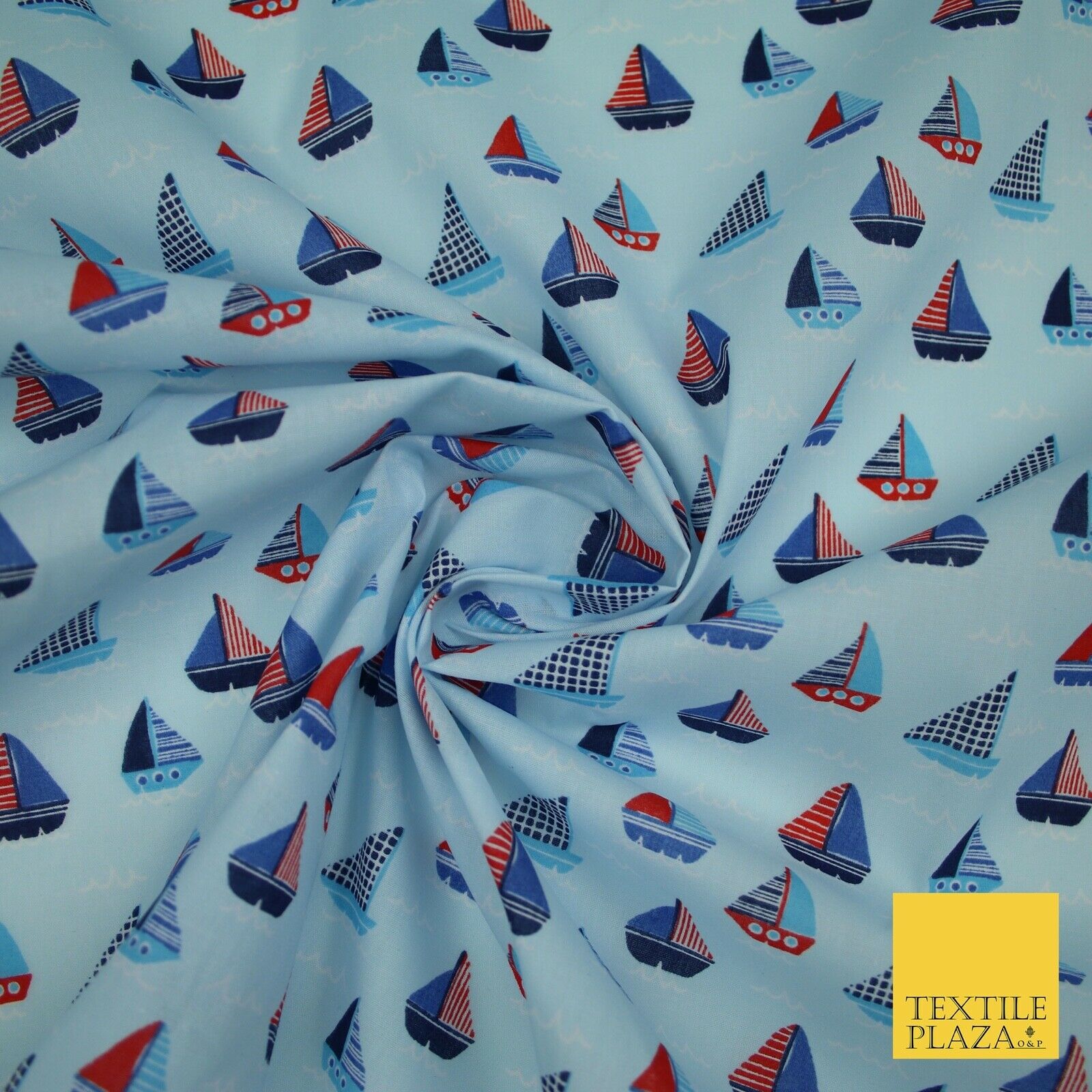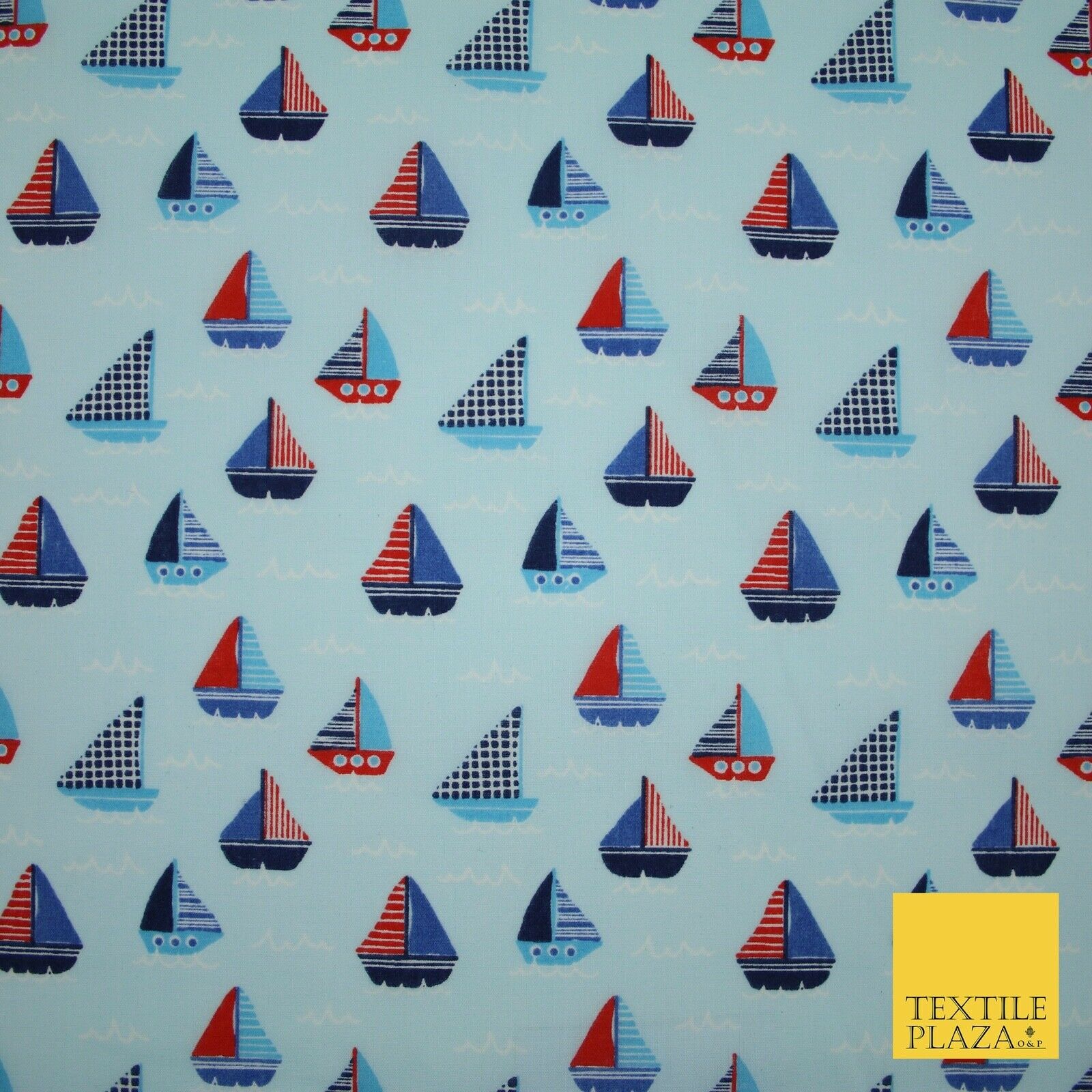 Nautical Sailing Boat Sailor Sea Printed Poly Cotton Fabric Polycotton Mask 45"