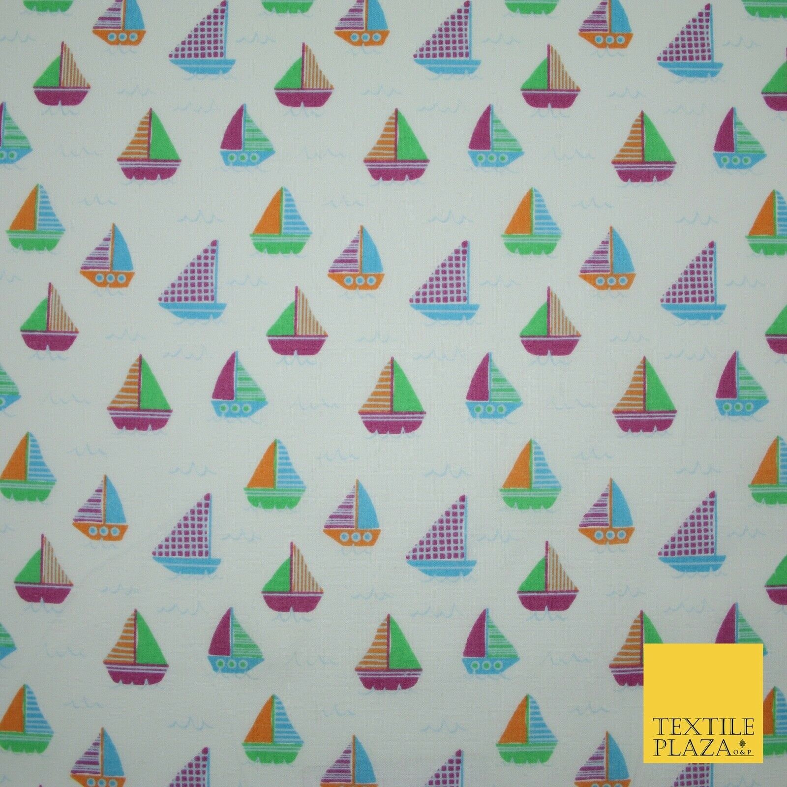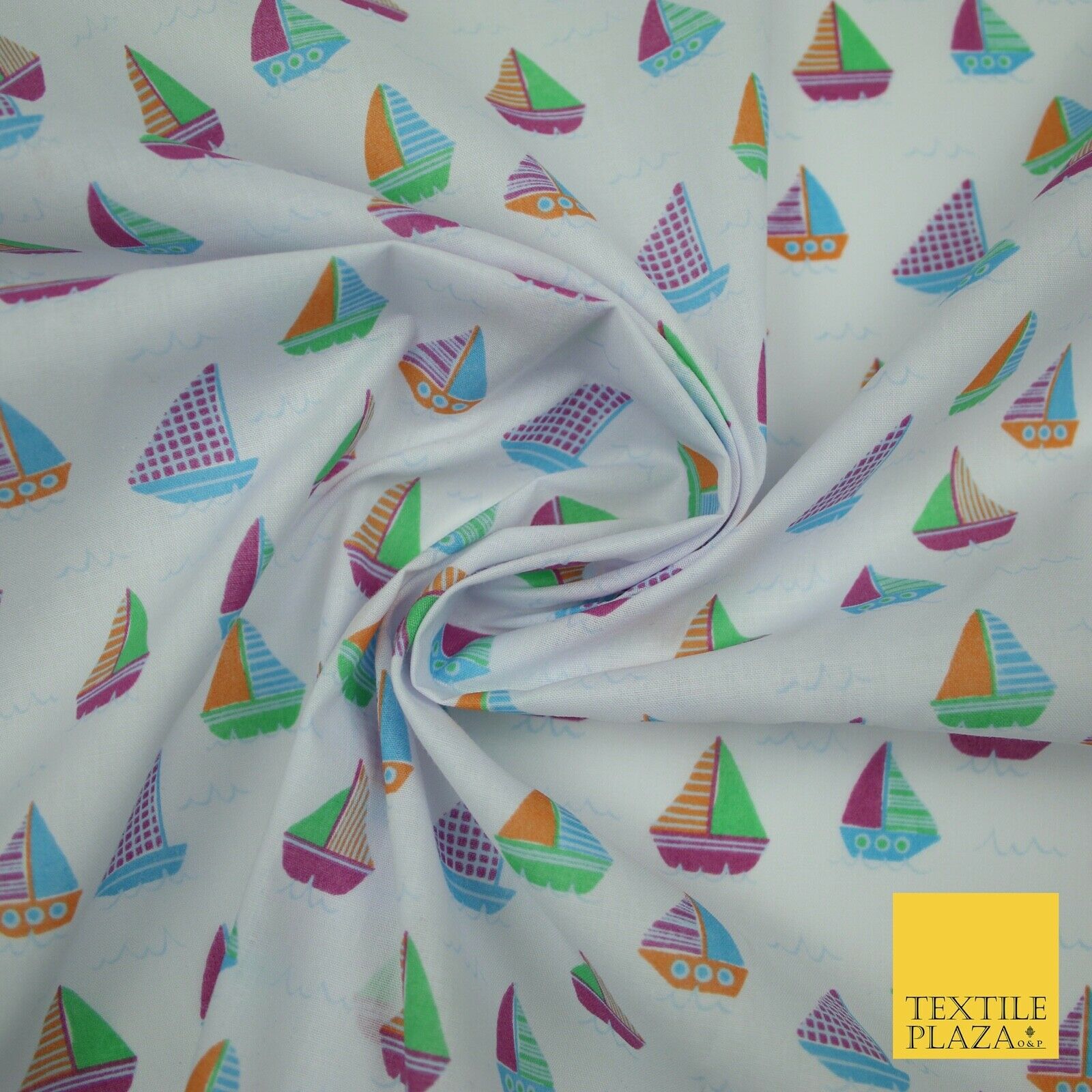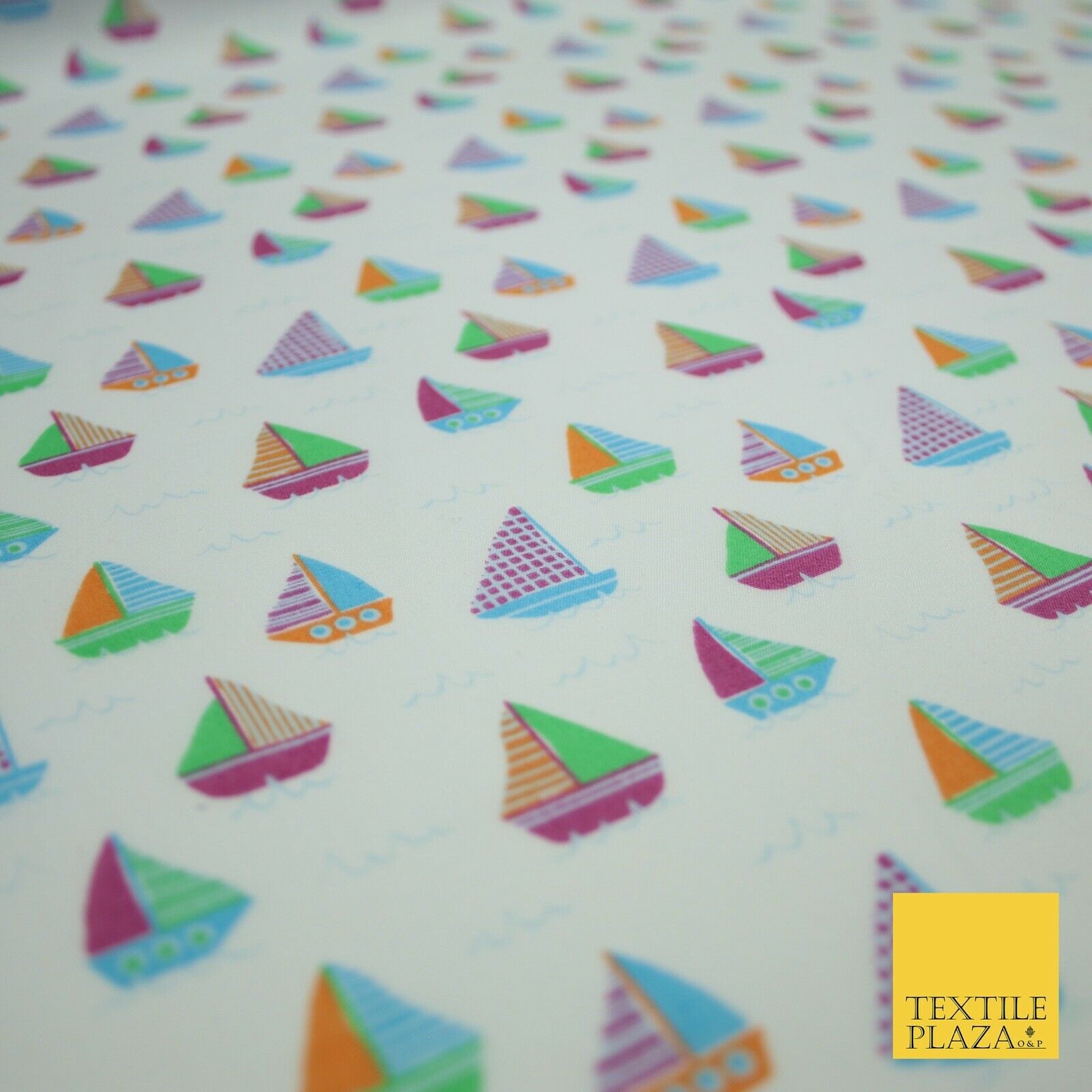 Nautical Sailing Boat Sailor Sea Printed Poly Cotton Fabric Polycotton Mask 45"