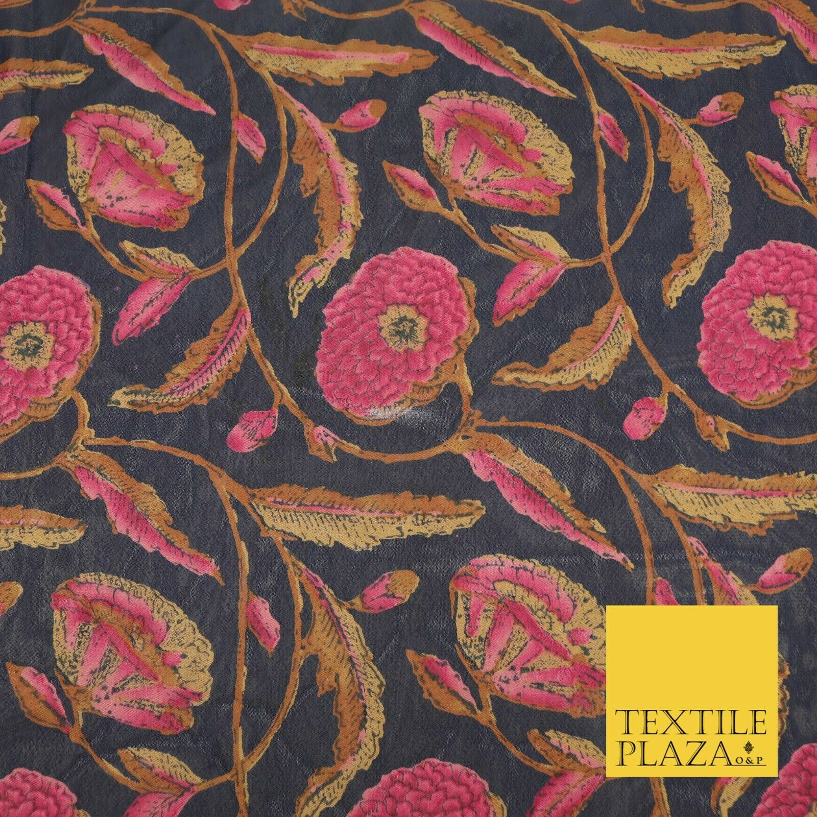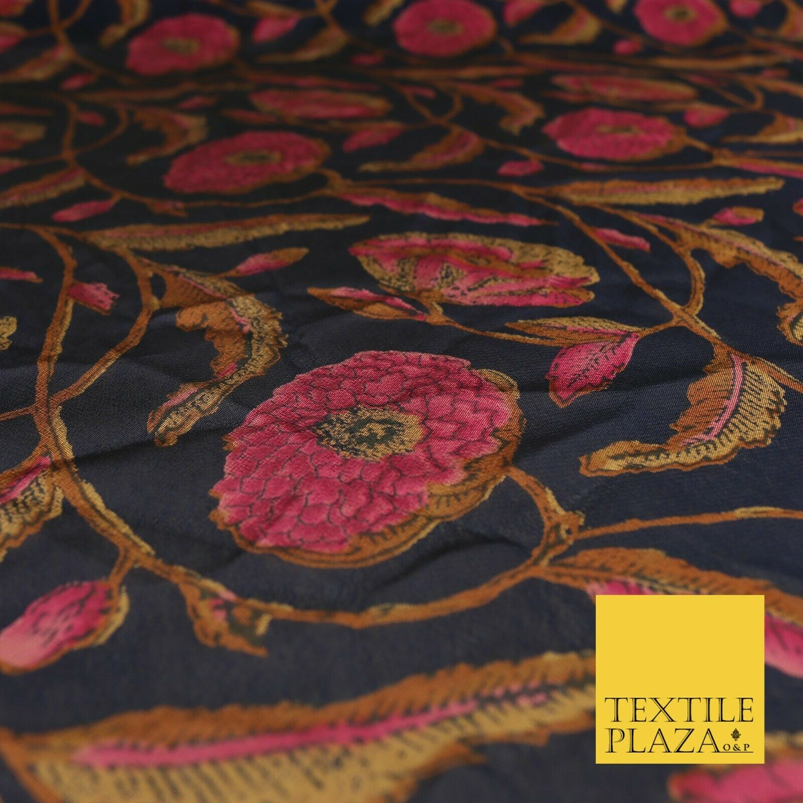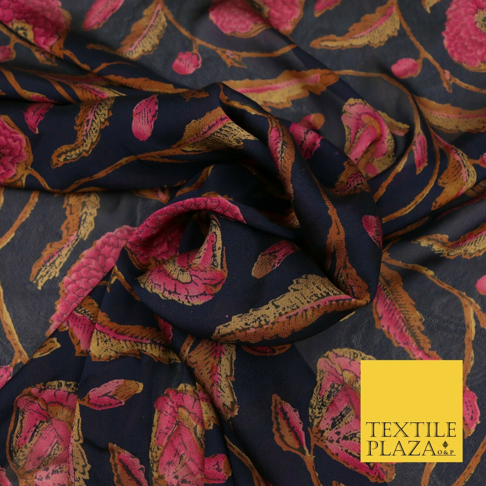 NAVY BLUE Floral Stem Premium Printed Sheen Georgette Dress Fabric Drape 1664