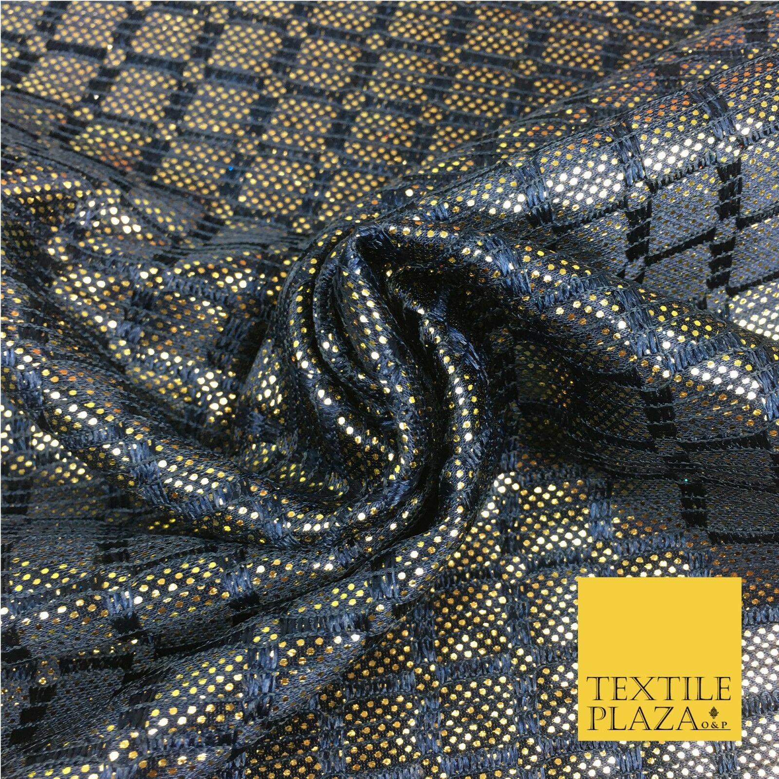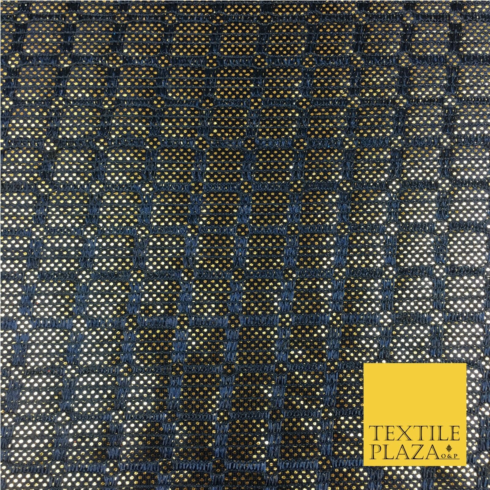 NAVY BLUE Gold Dot Glitter Foil Satin Bonded Lace Party Dance Sexy Fabric 2309