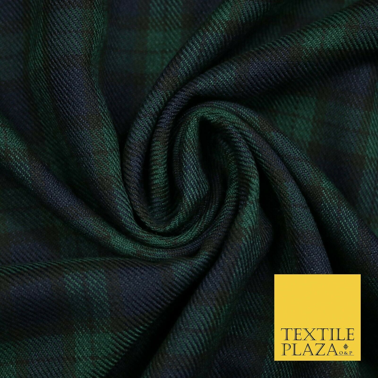 NAVY BLUE GREEN Tartan Check Polyester Viscose Fabric 58" Craft Dress 5074
