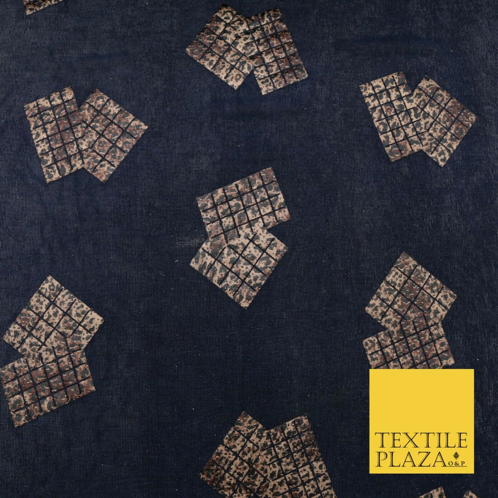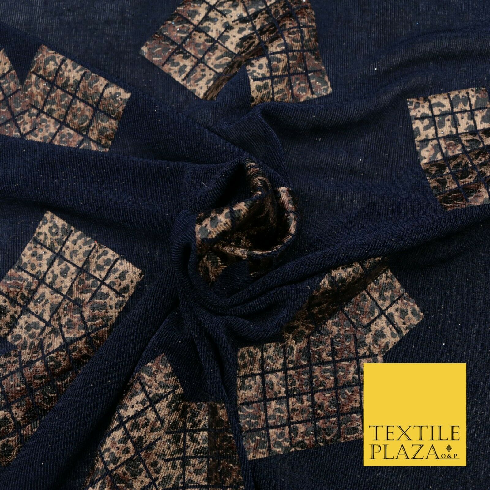 NAVY BLUE Leopard Waffle Cube Metallic Glitter Stretch Jersey Fabric - 59" 1576
