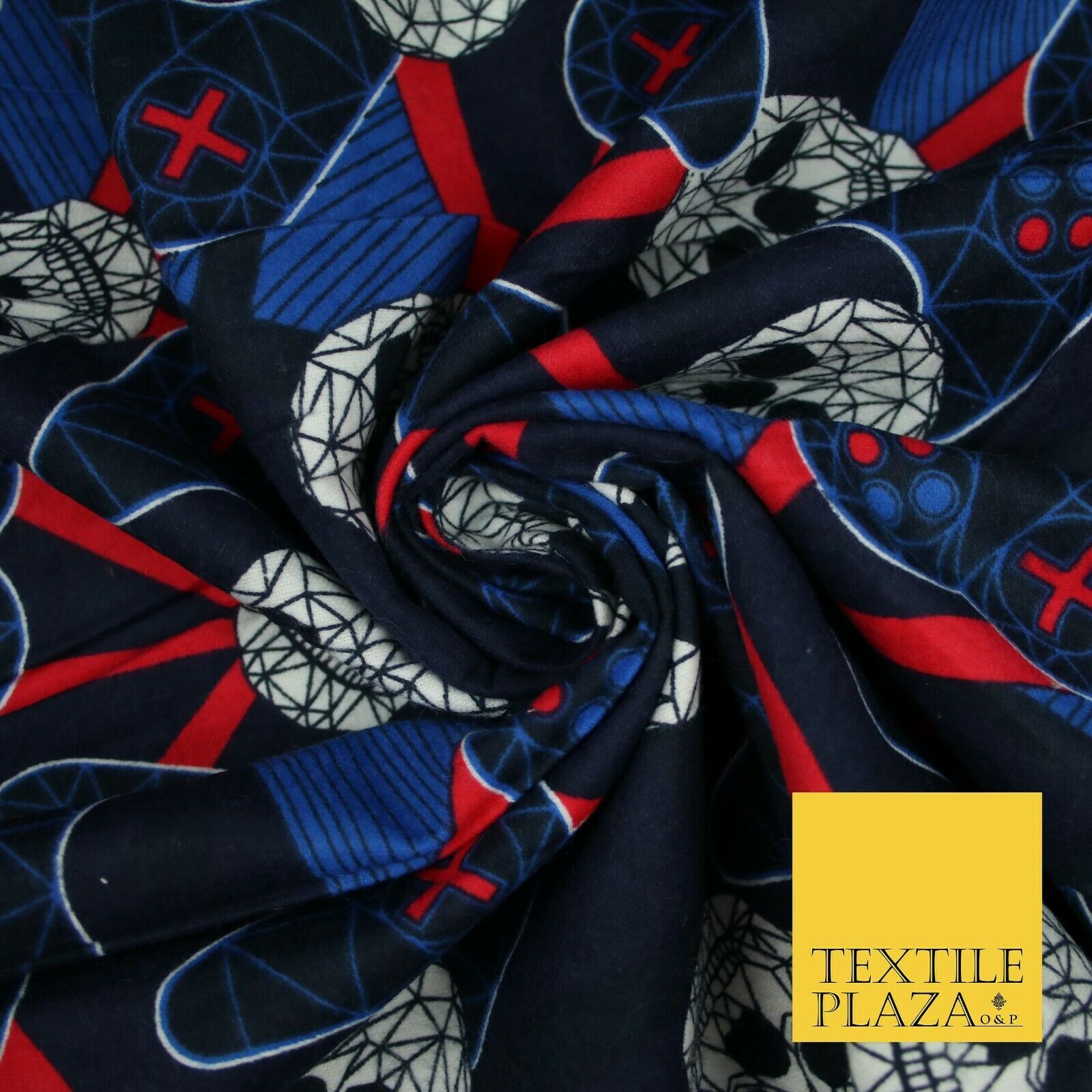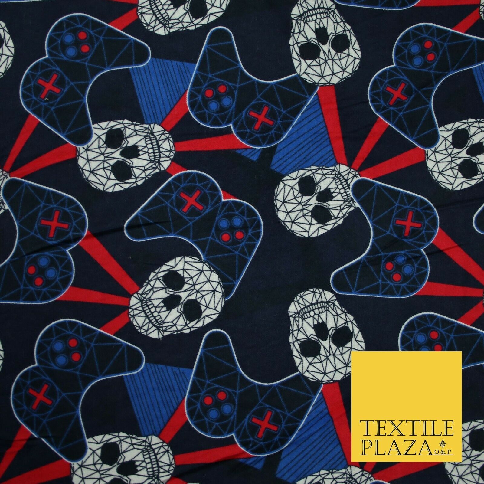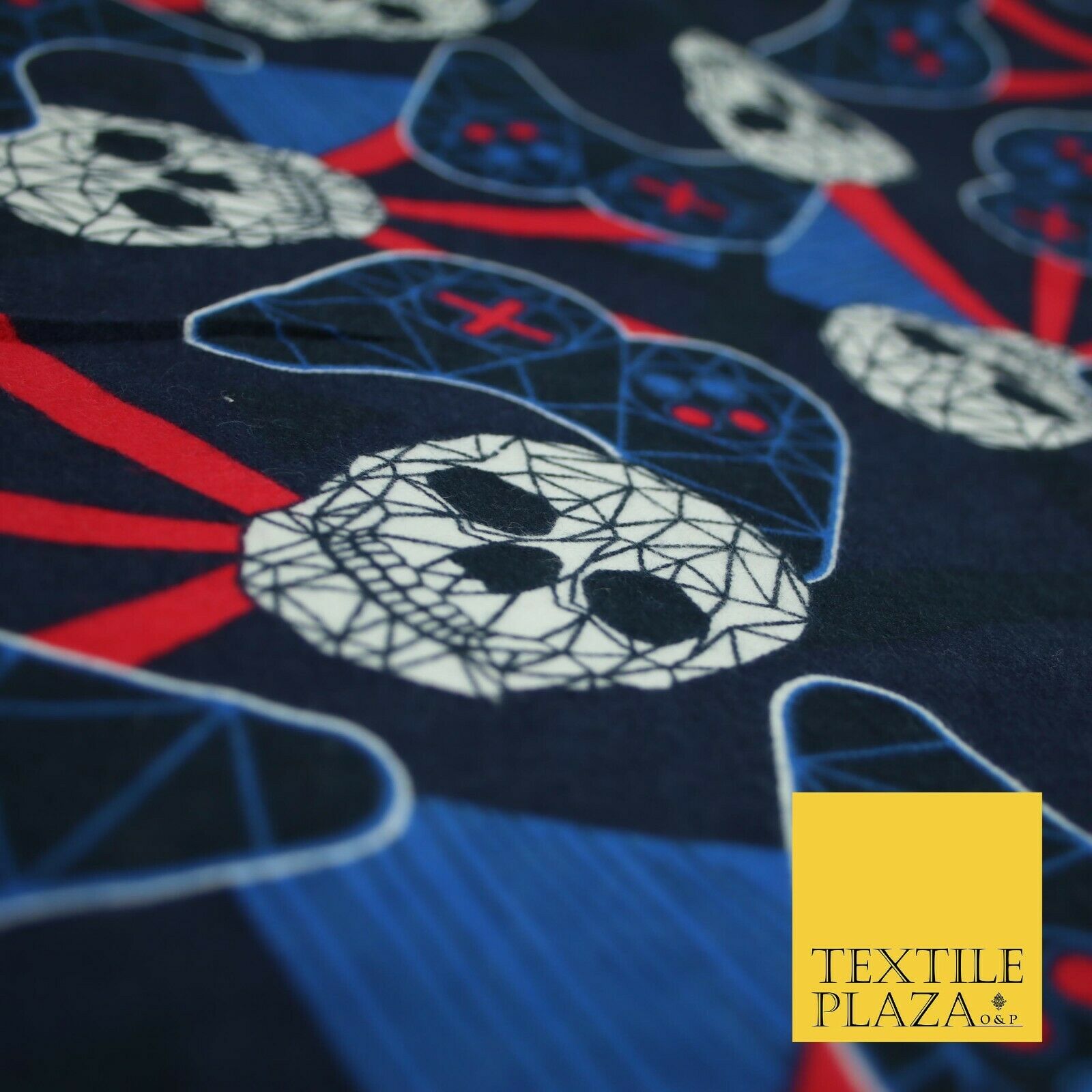 Navy Blue Skulls Digital Gaming Winceyette Soft Brushed Cotton Print Fabric 3966
