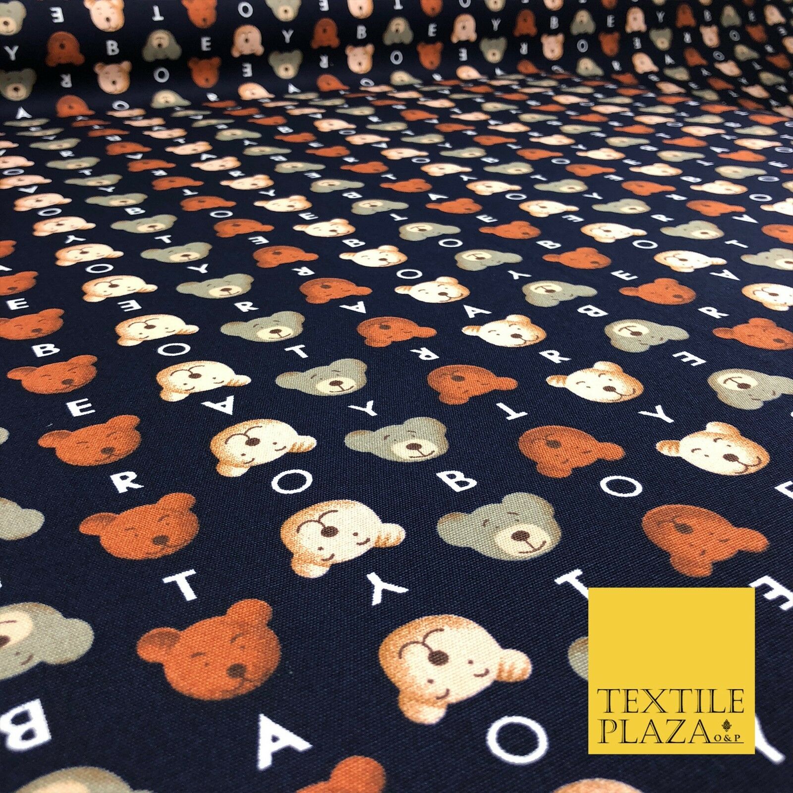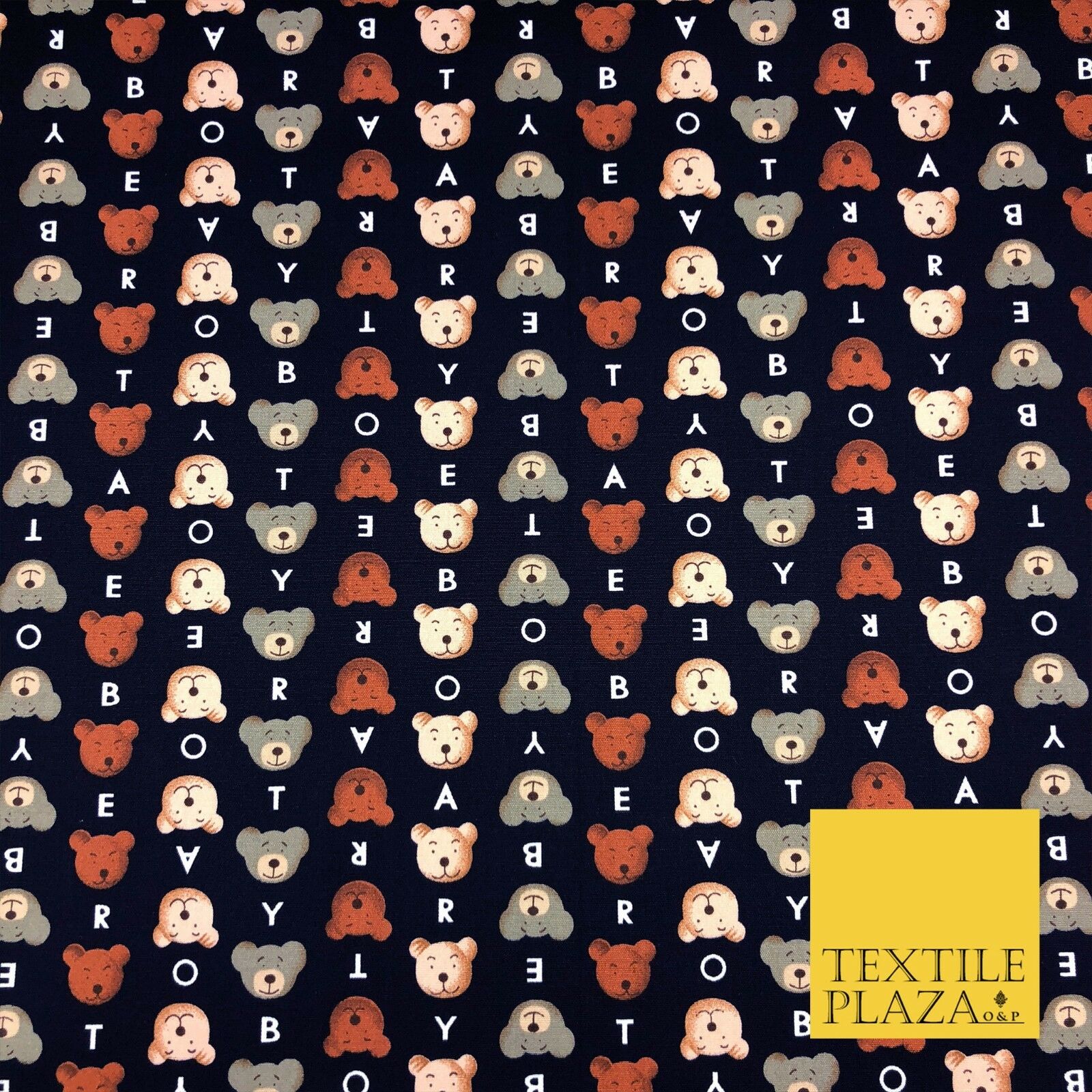 Navy Blue Teddy Bear 100% COTTON CANVAS Printed Fabric Craft Kids Baby 58" RG885