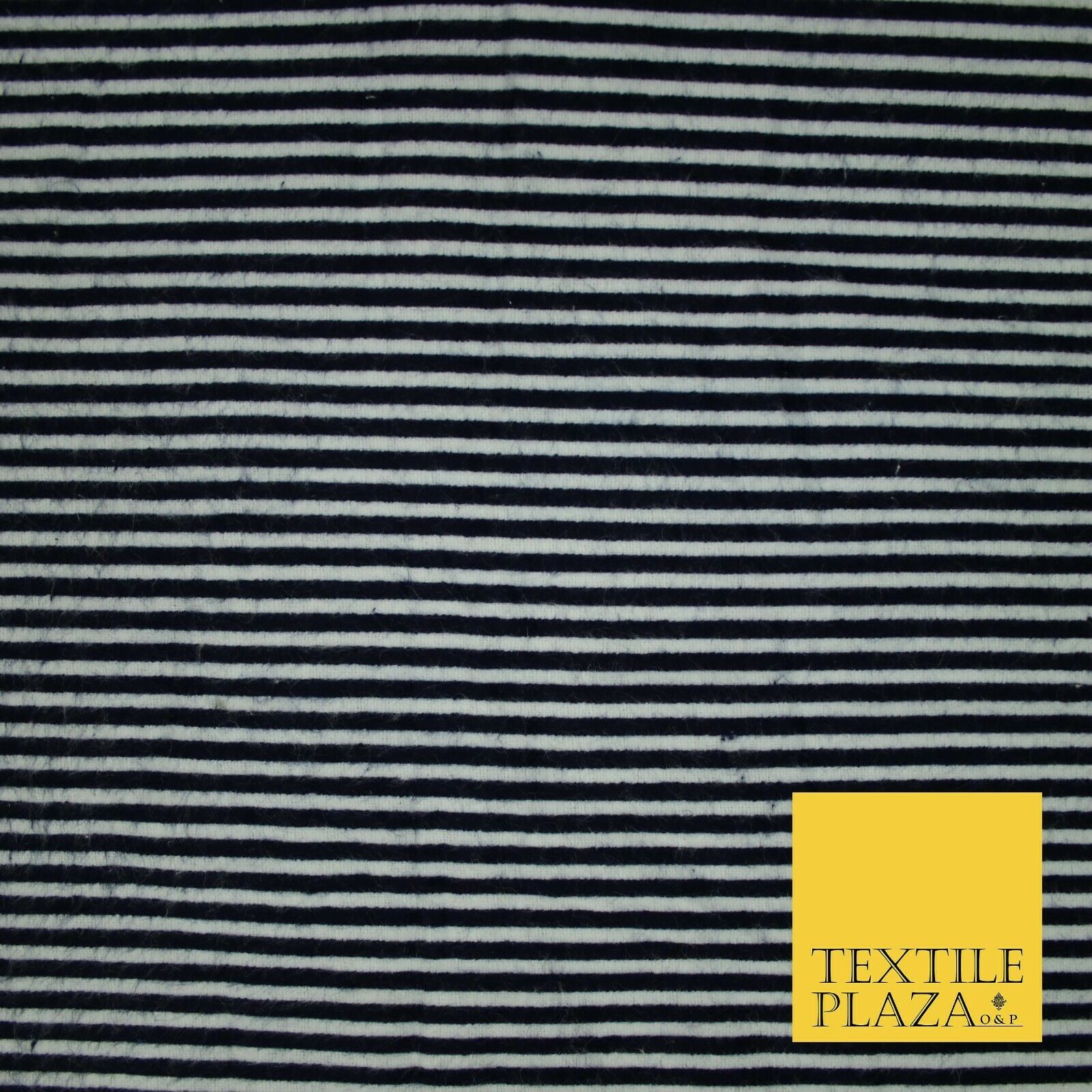 Navy Blue White Candy Stripe Winceyette Soft Brushed Cotton Print Fabric 3974
