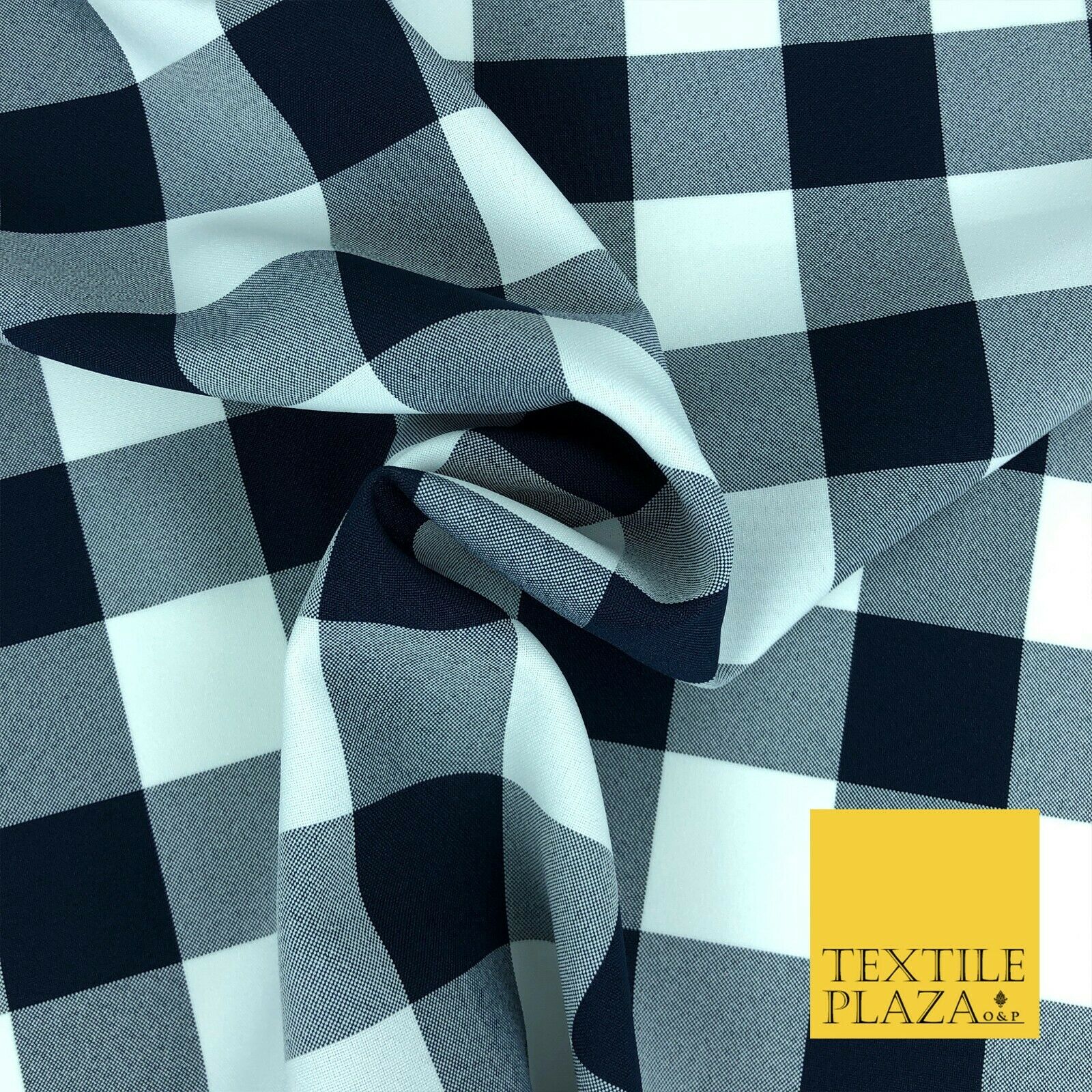 Premium Large Gingham Check Bi-Stretch Fabric (Check size - 4cm)Fabric : POLYESTERColour : NAVY BLUE & WHITEAvailable to purchase by...