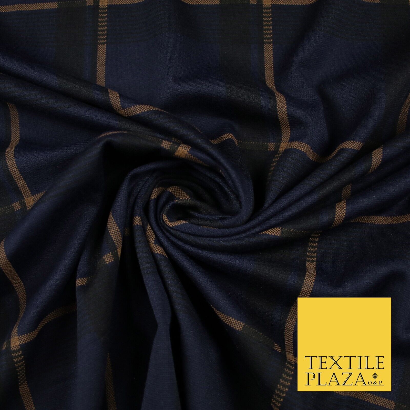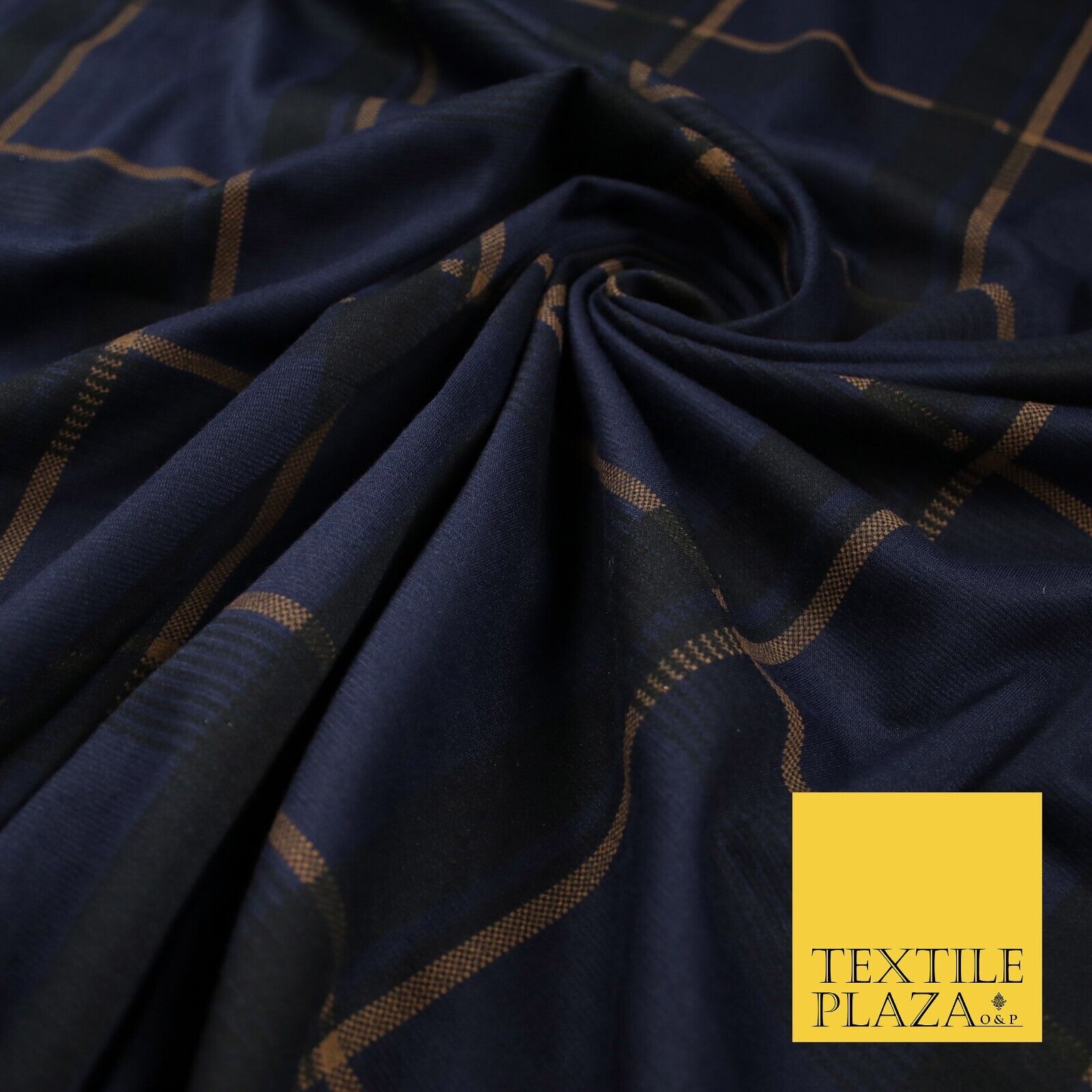 Navy Blue with Rust Check Print Soft Touch Stretch Jersey Fabric 56" 6617