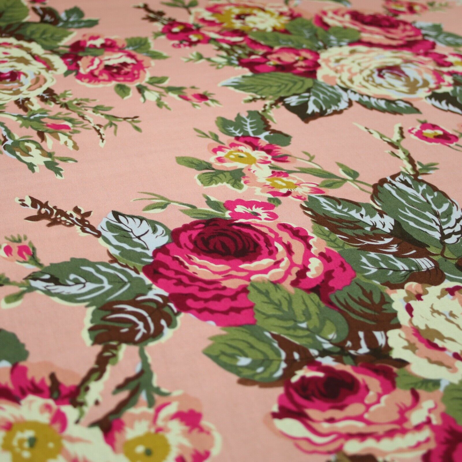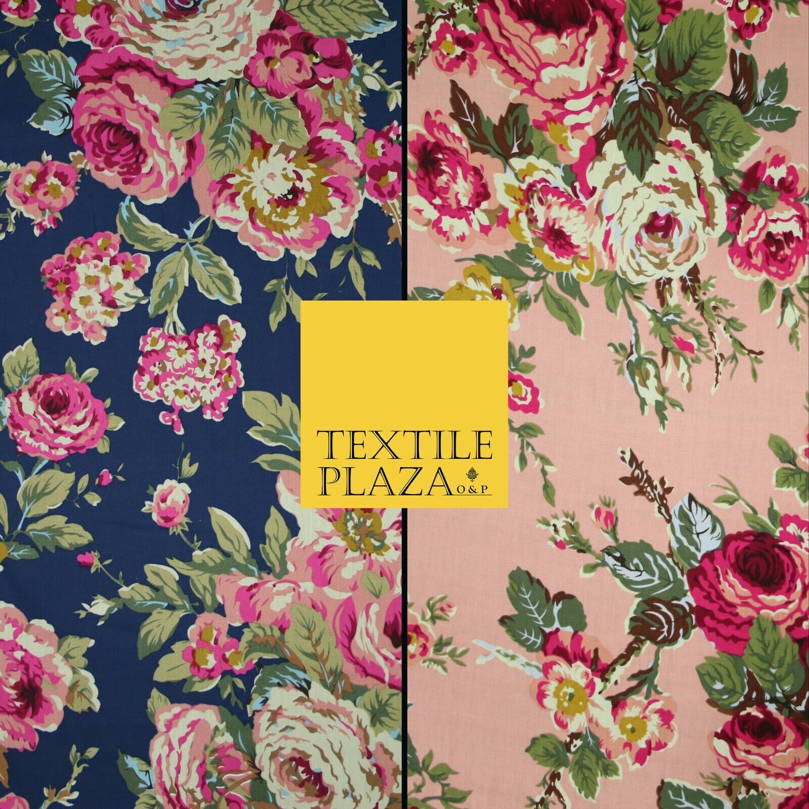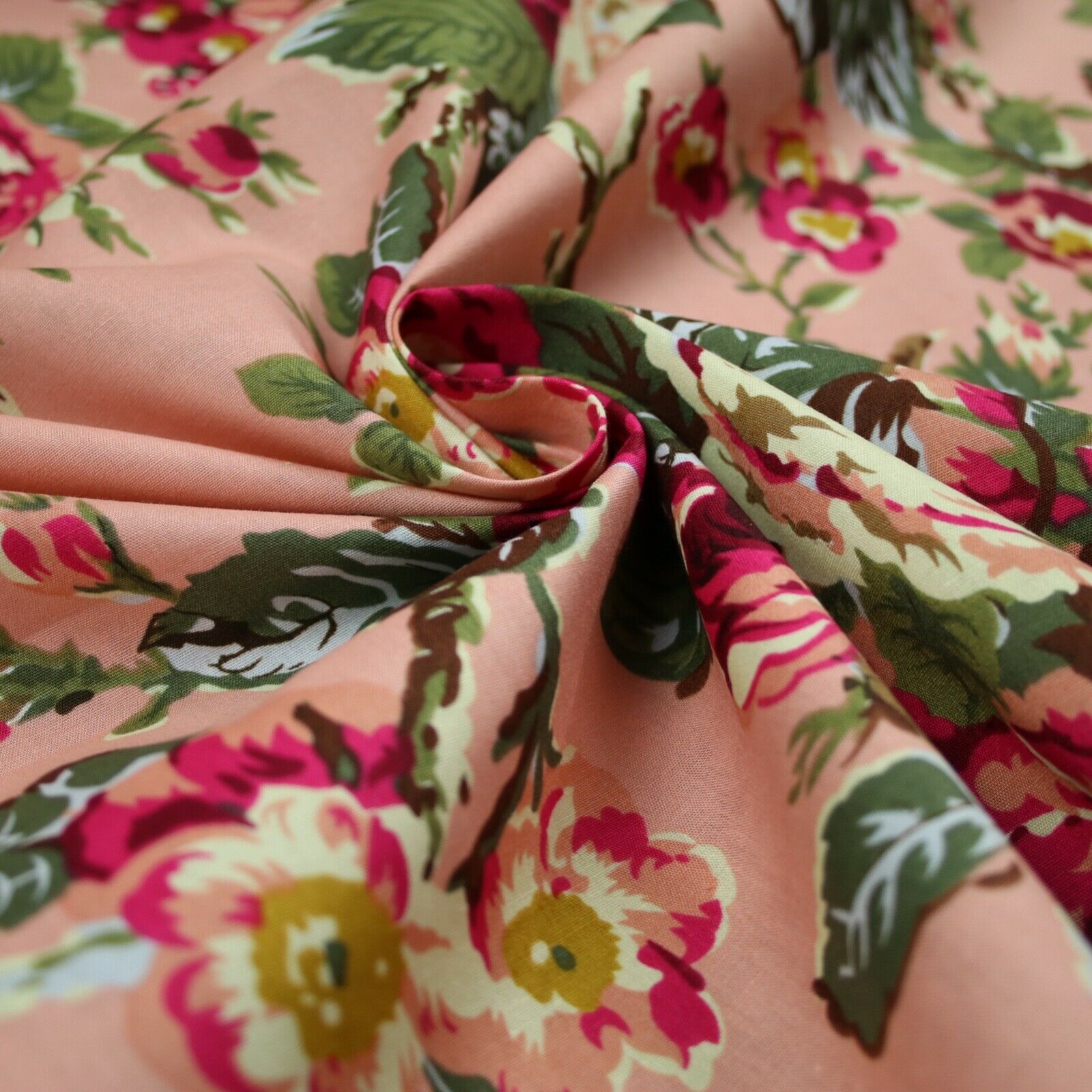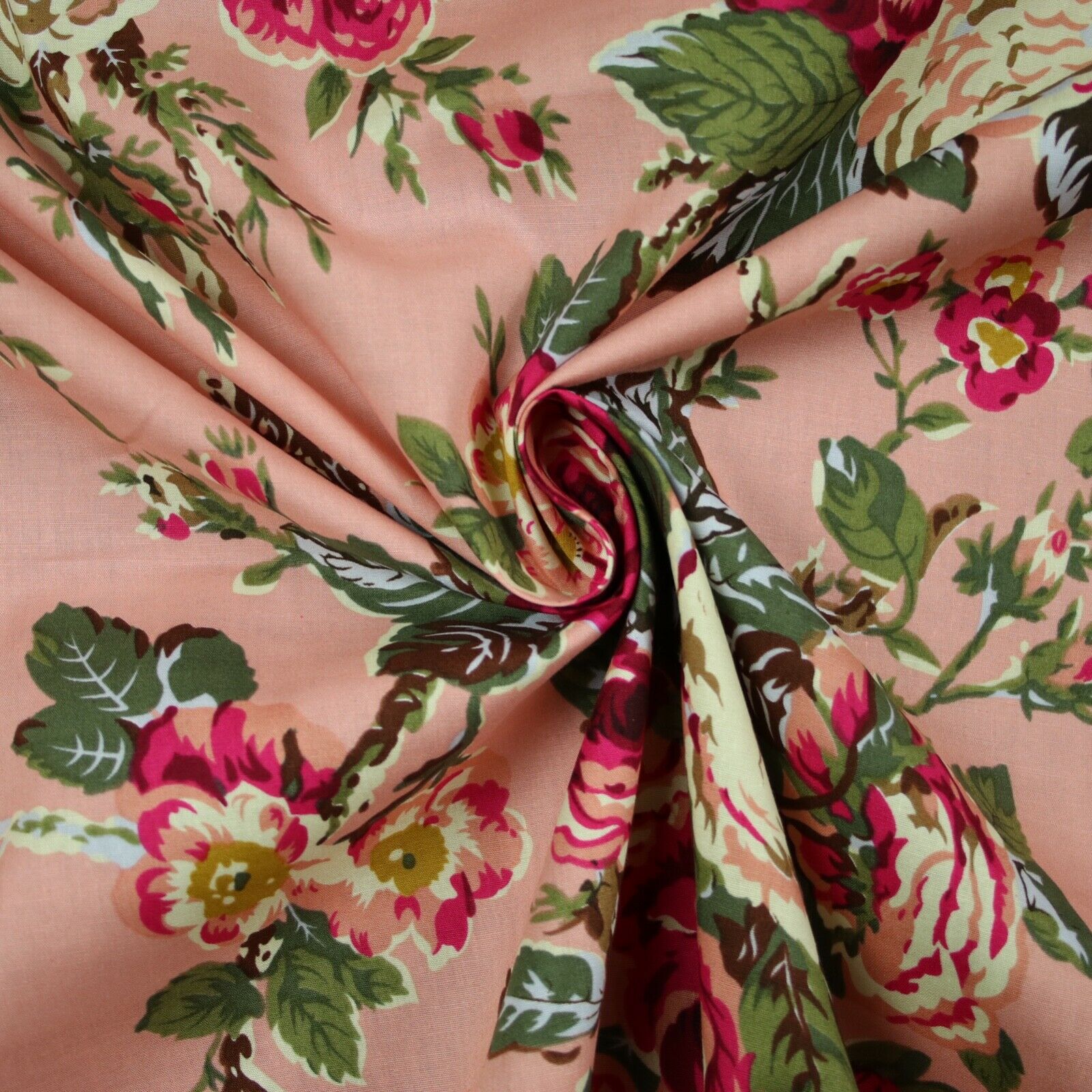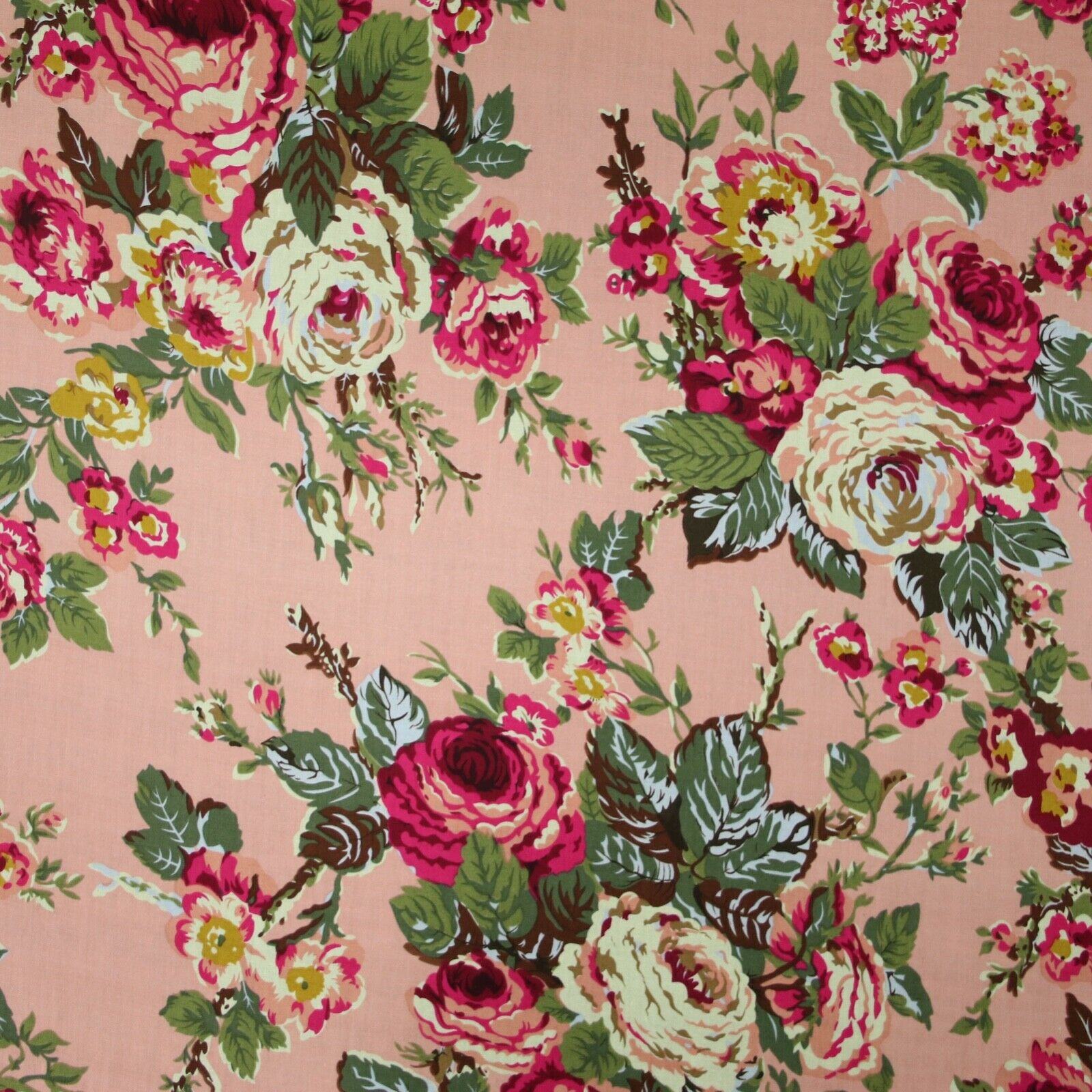 Navy Peach Floral Blooming Roses Printed 100% Cotton Poplin Dress Fabric 59"