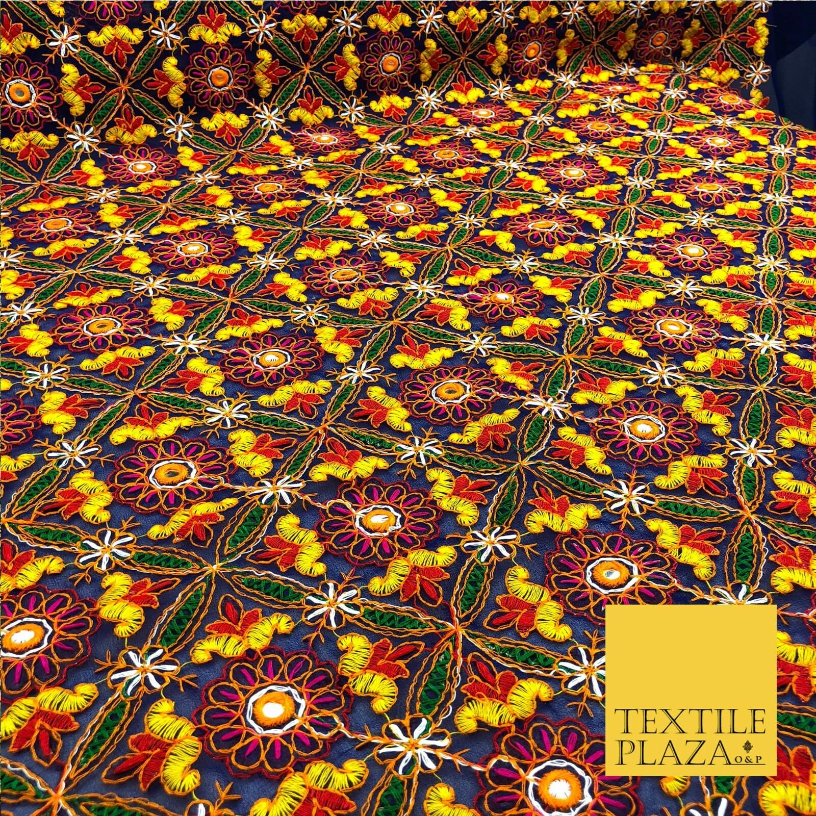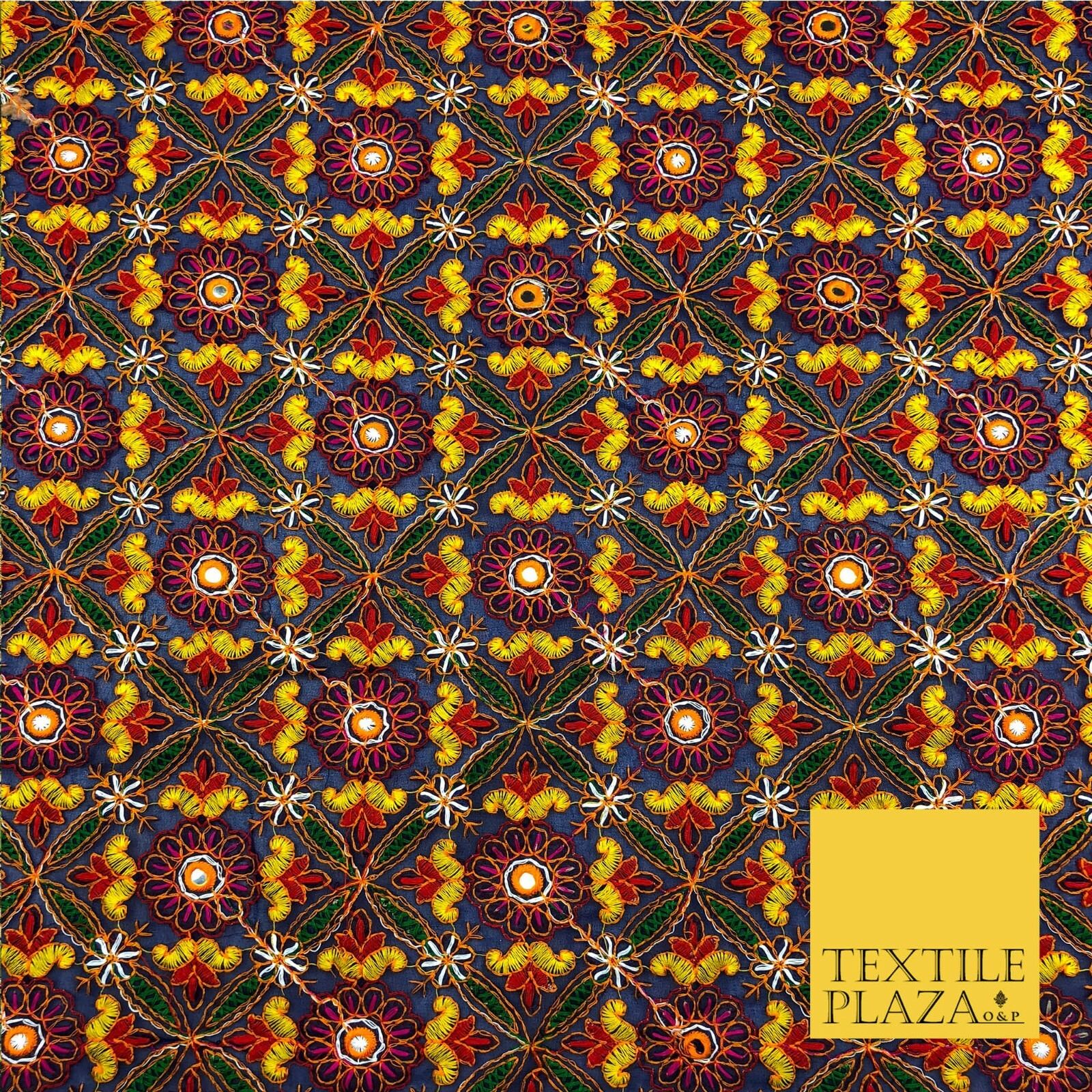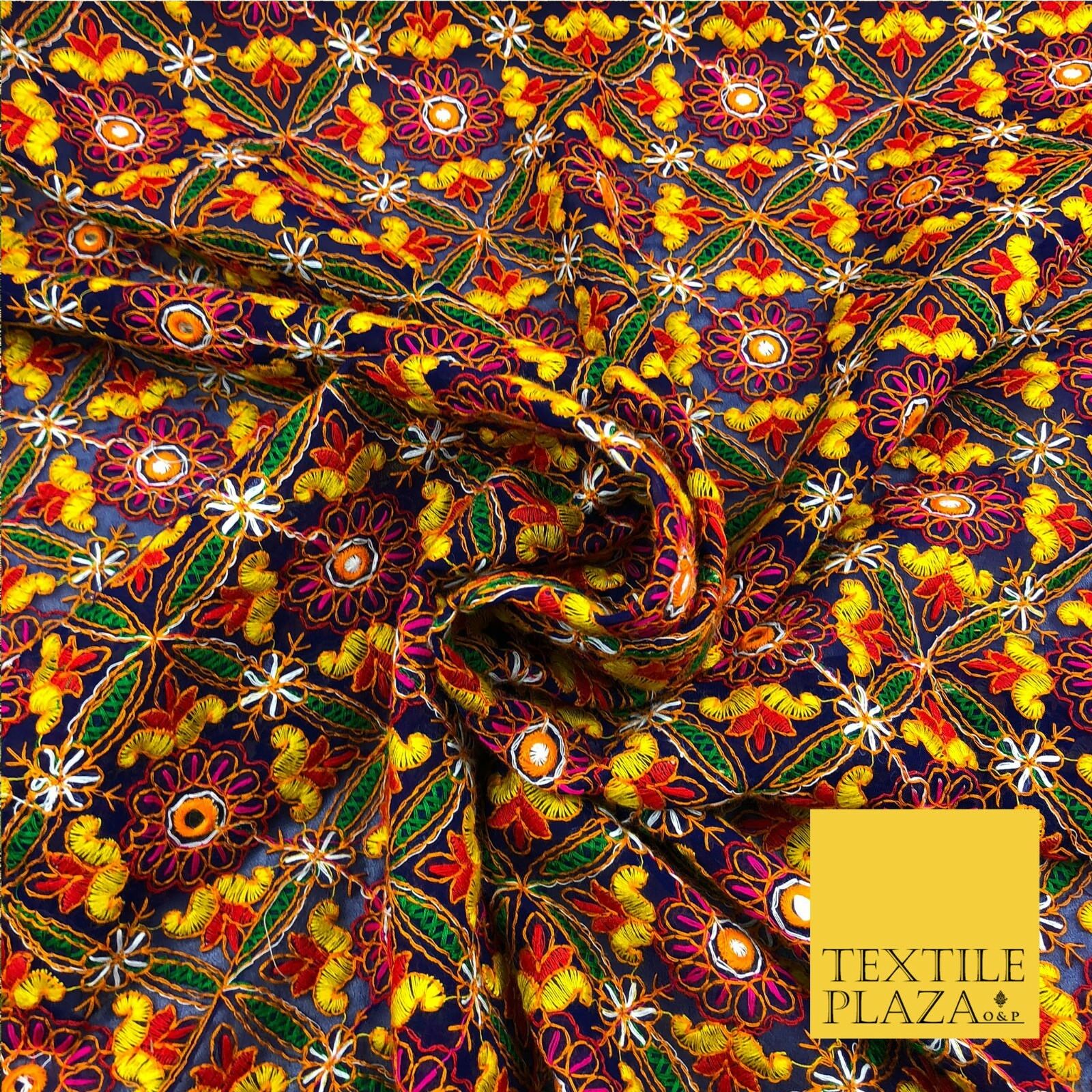 Navy Phulkari Georgette Fancy Colourful Threadwork Diamond Pattern Dress JE314