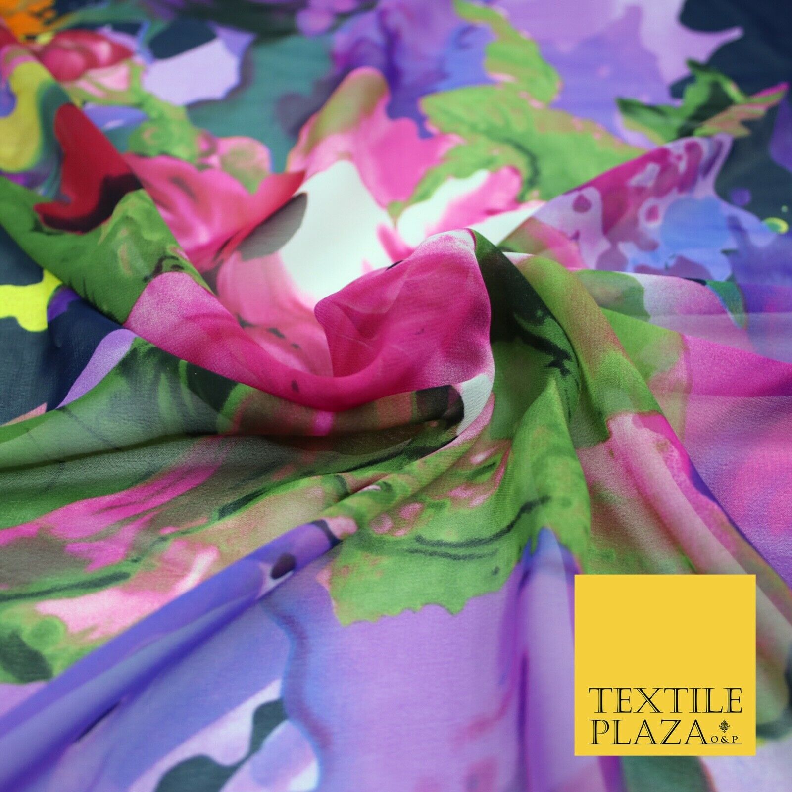 New High Quality Floral Abstract Flowers Printed Chiffon Georgette Dress Fabric
