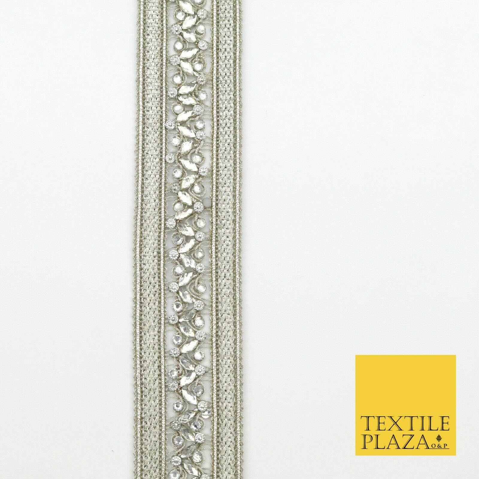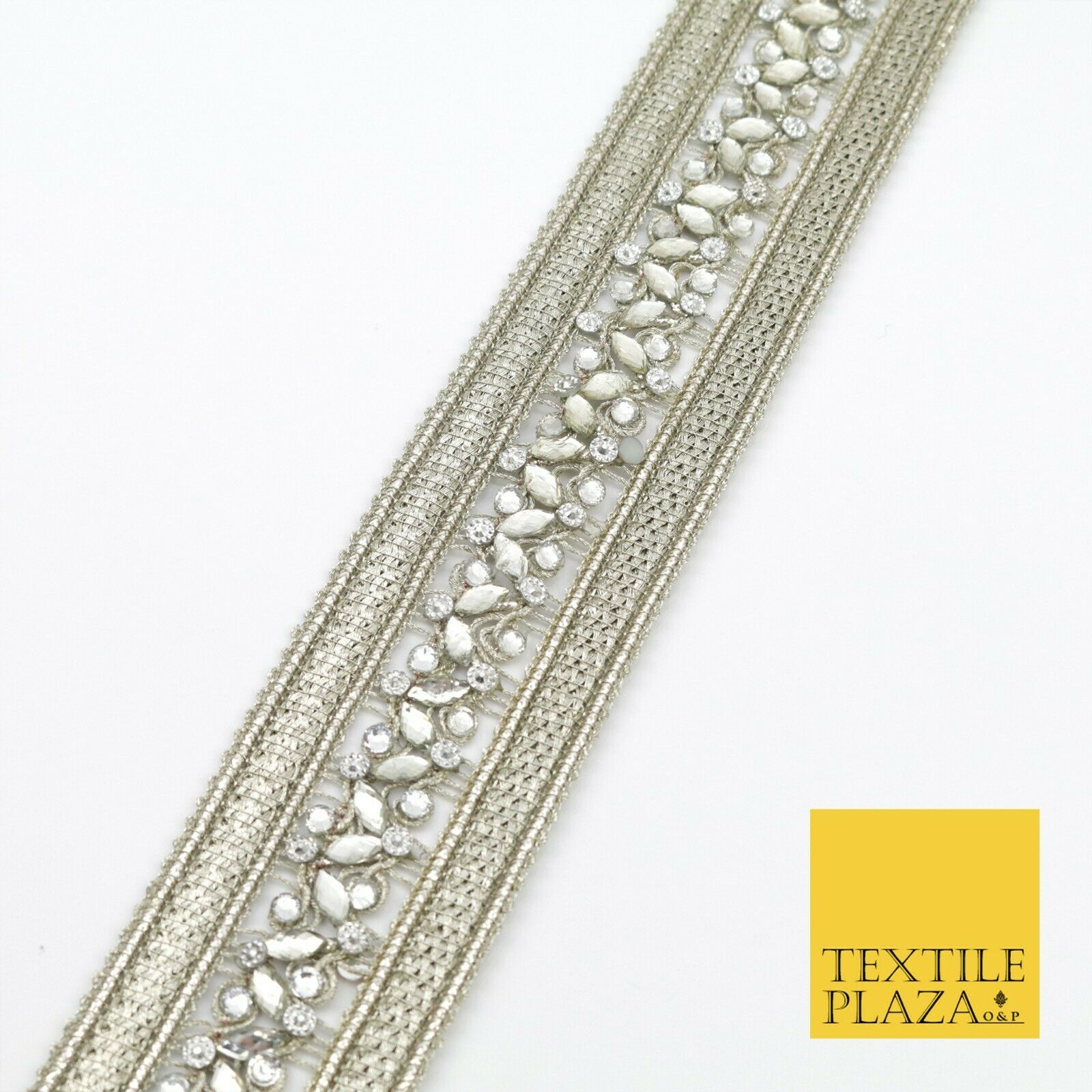 NICKEL Double Ribbon Trimming with Silver Stones Border Indian Ethnic X208