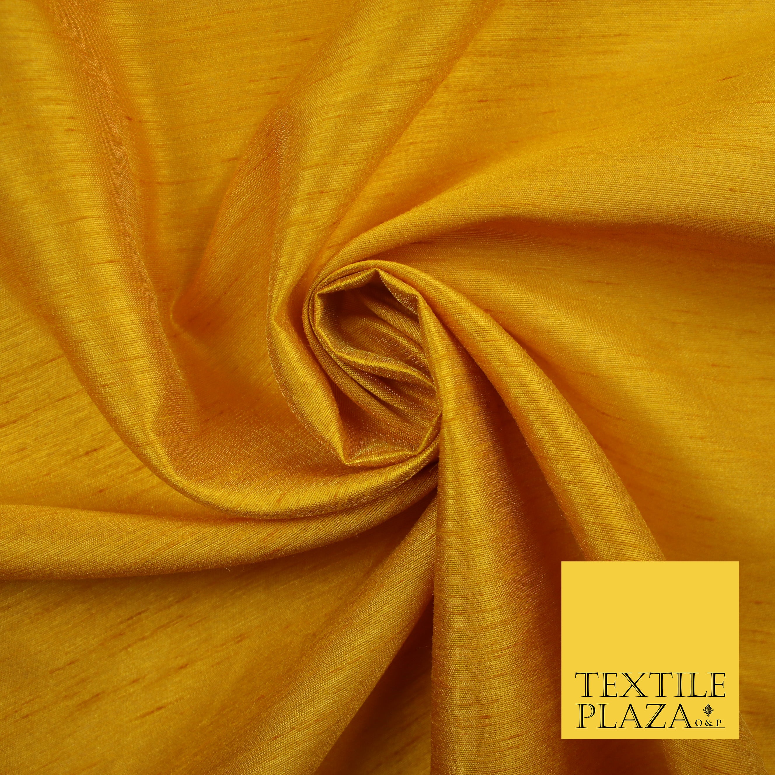 OCHRE YELLOW Plain Dyed Faux Dupion Raw Silk Polyester Dress Fabric Material 7963
