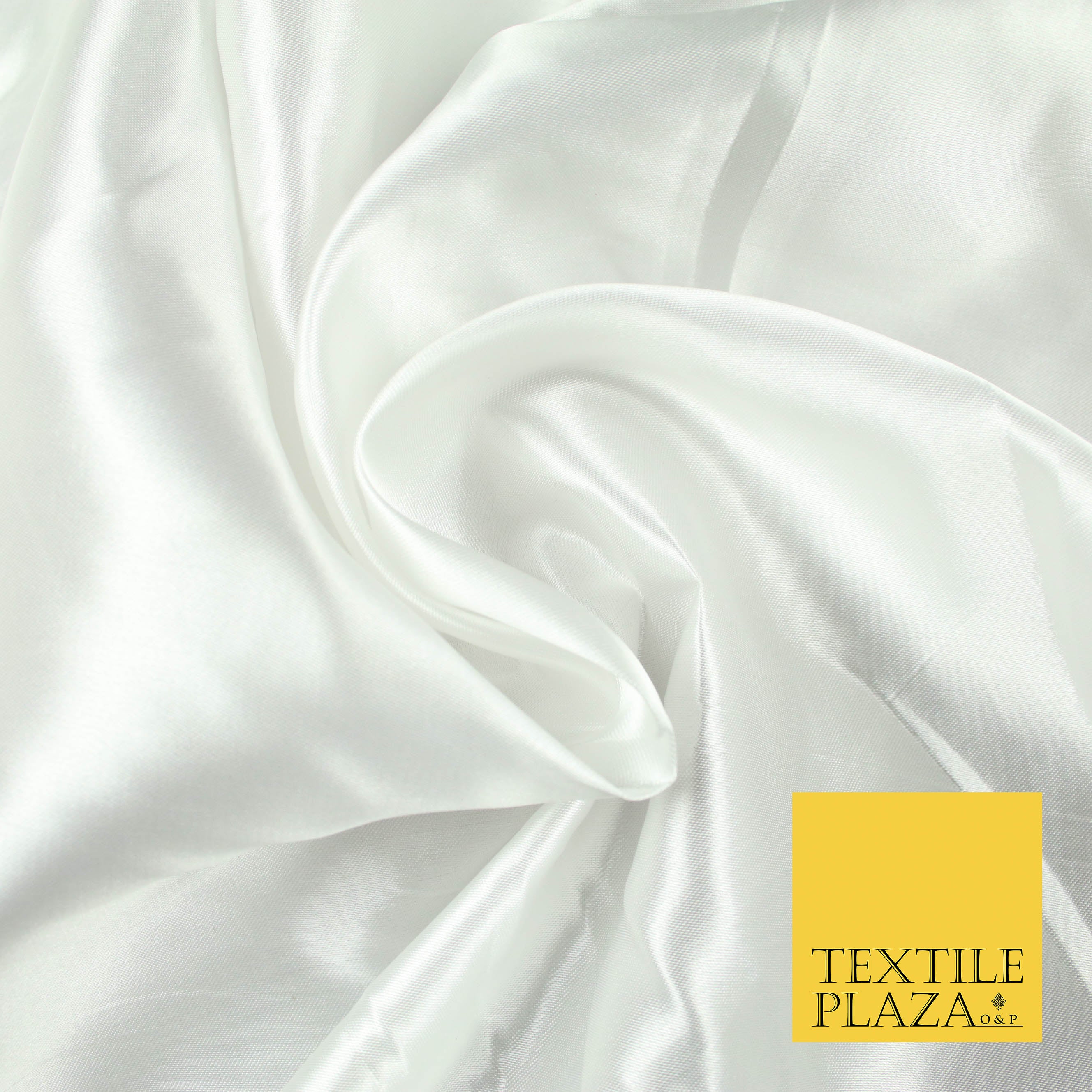 OFF WHITE Luxury Plain Smooth Shiny Lightweight Poly Satin Fabric Dress Lining Material 58" 5649