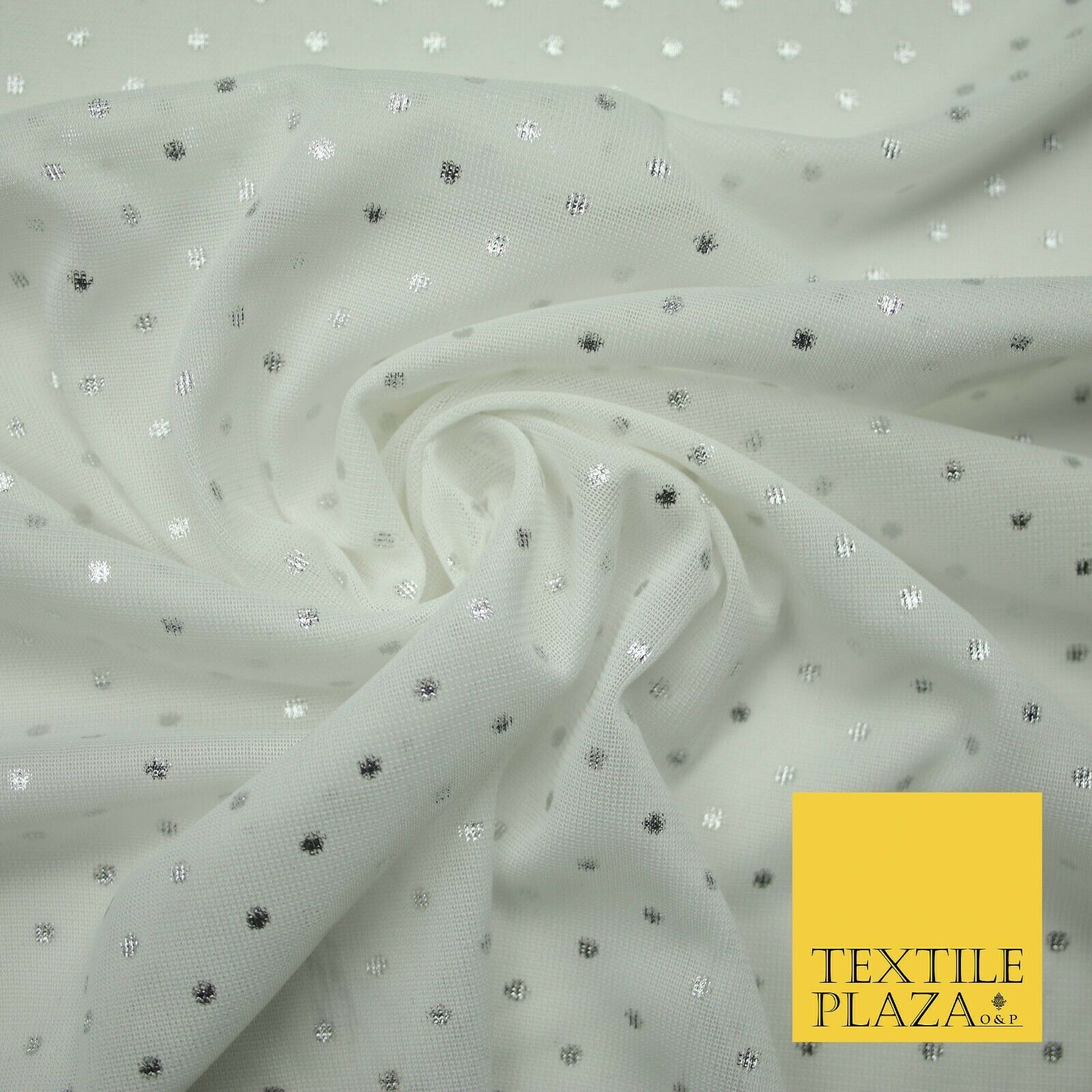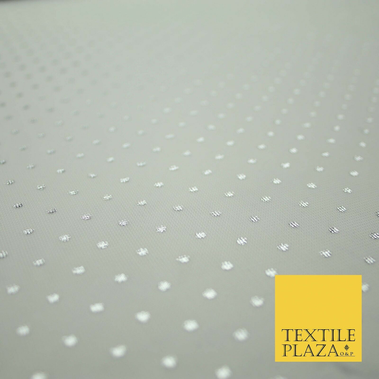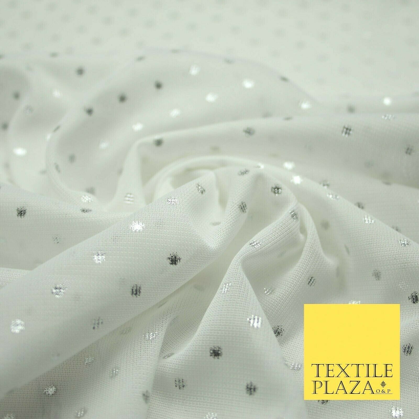 Off White Metallic Silver Spot Dot Mesh Jersey 2 Way Stretch Dress Fabric 4327