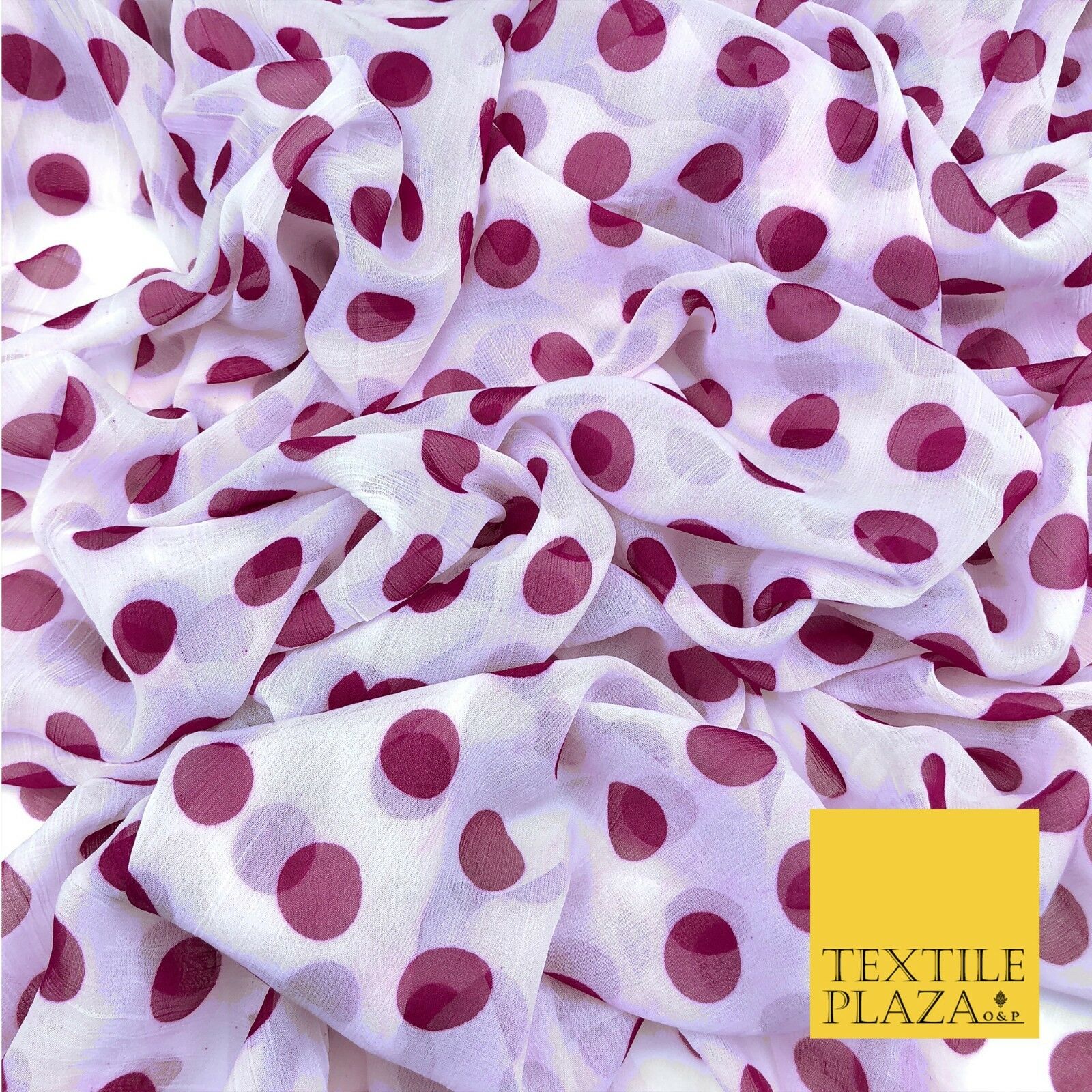 Off White with Mauve Purple Polka Dot Spotted Crinkle Chiffon Dress Craft QF816