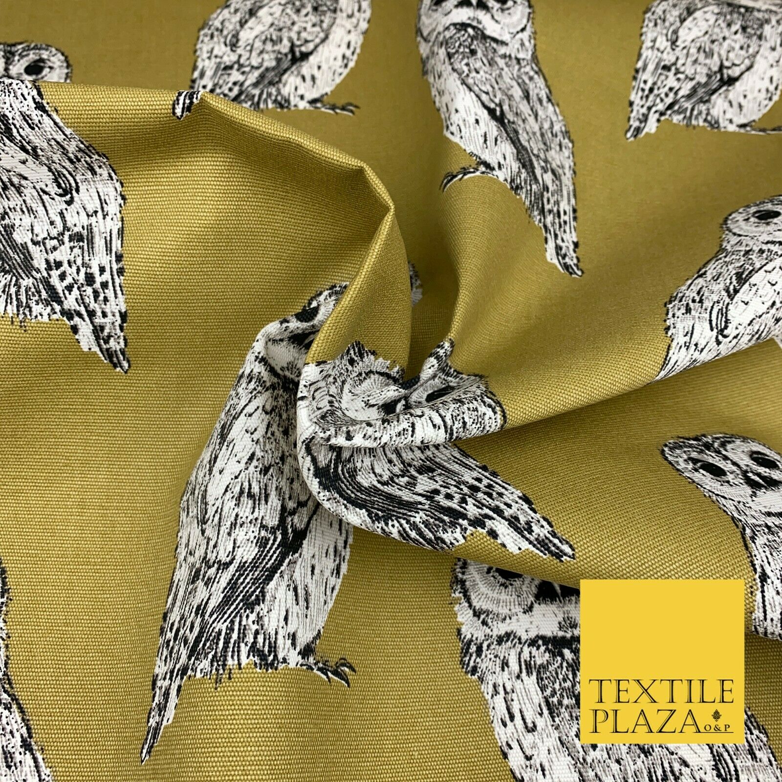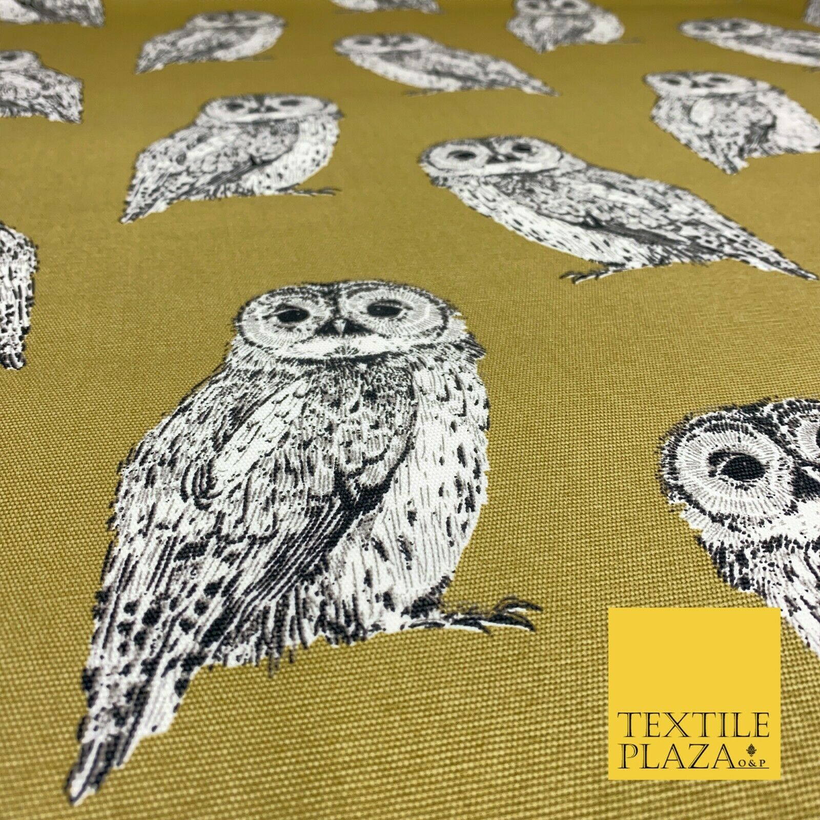 OLIVE Large Vintage Owls 100% COTTON CANVAS Printed Fabric Craft 58" 1710
