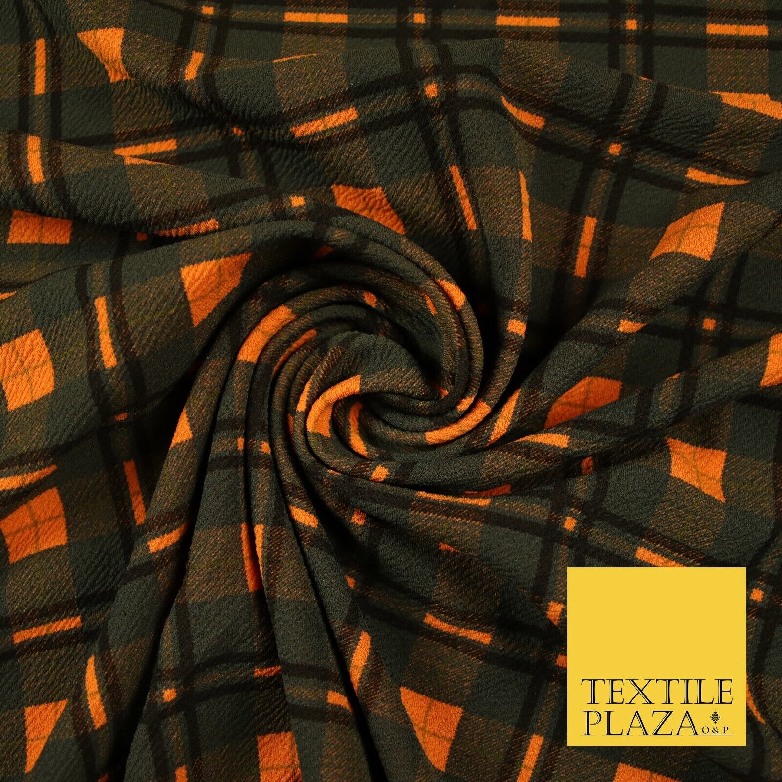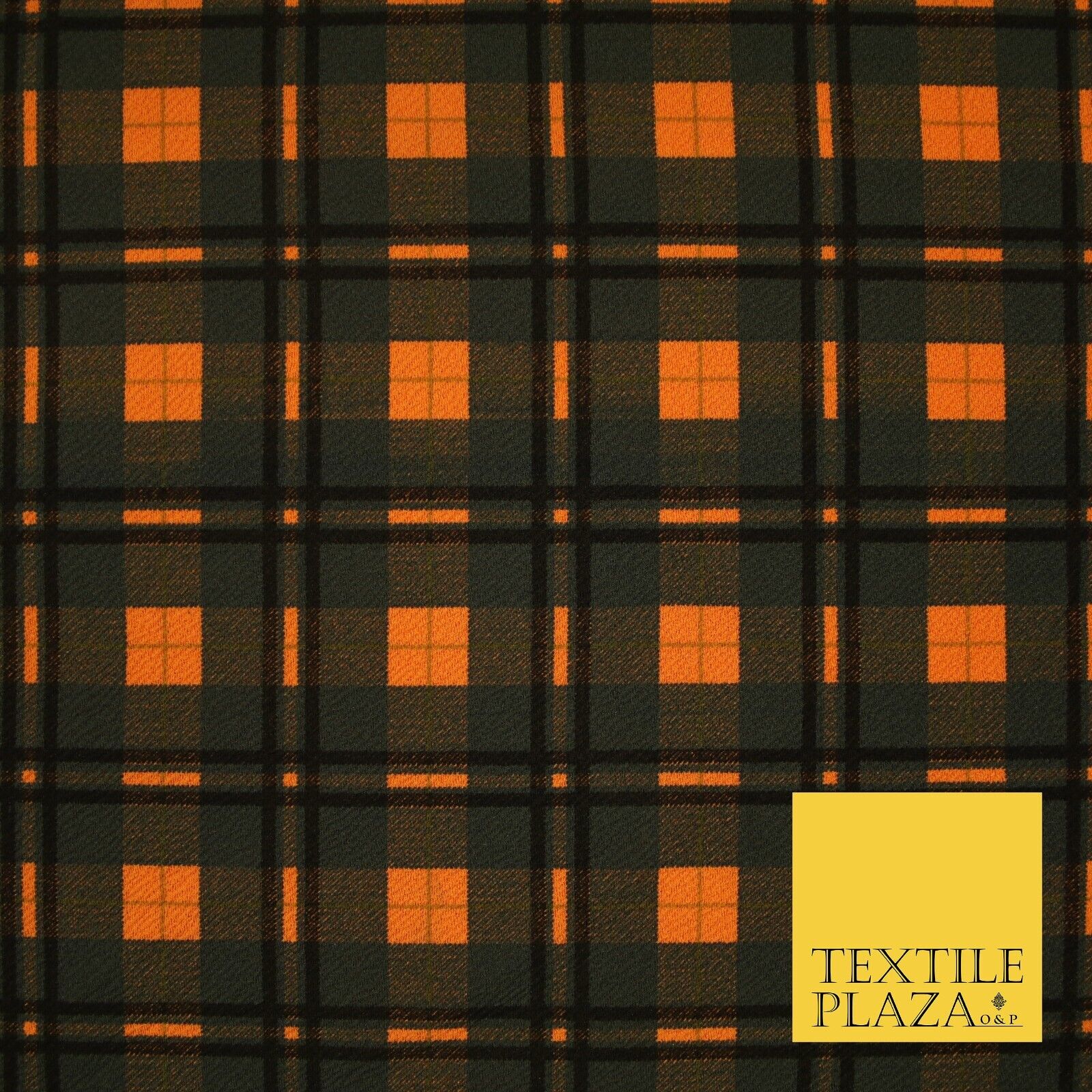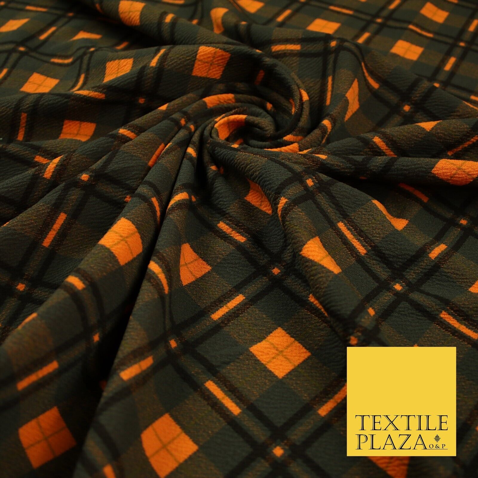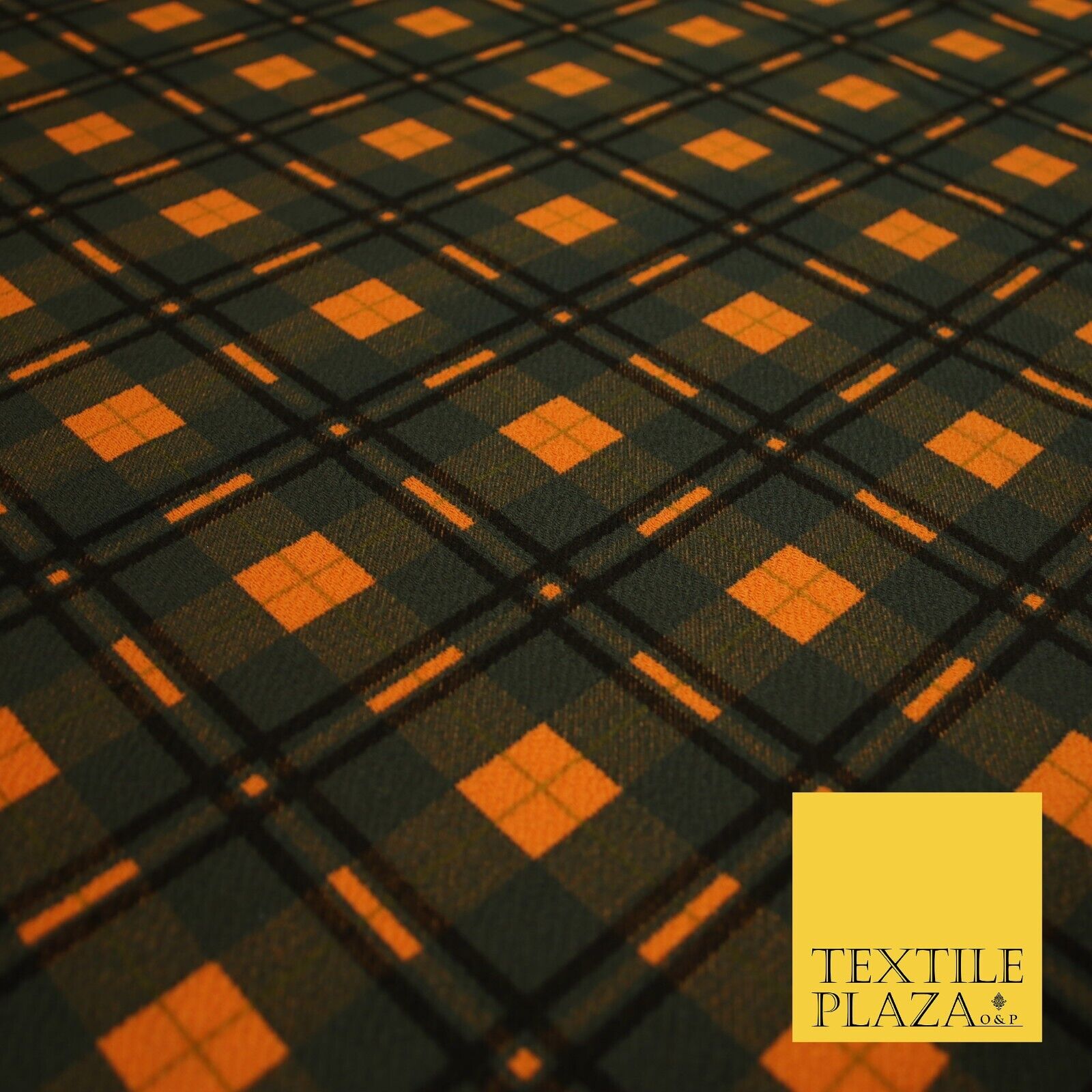 Orange Bottle Green Check Print Soft Touch Stretch Jersey Fabric 56" 6613