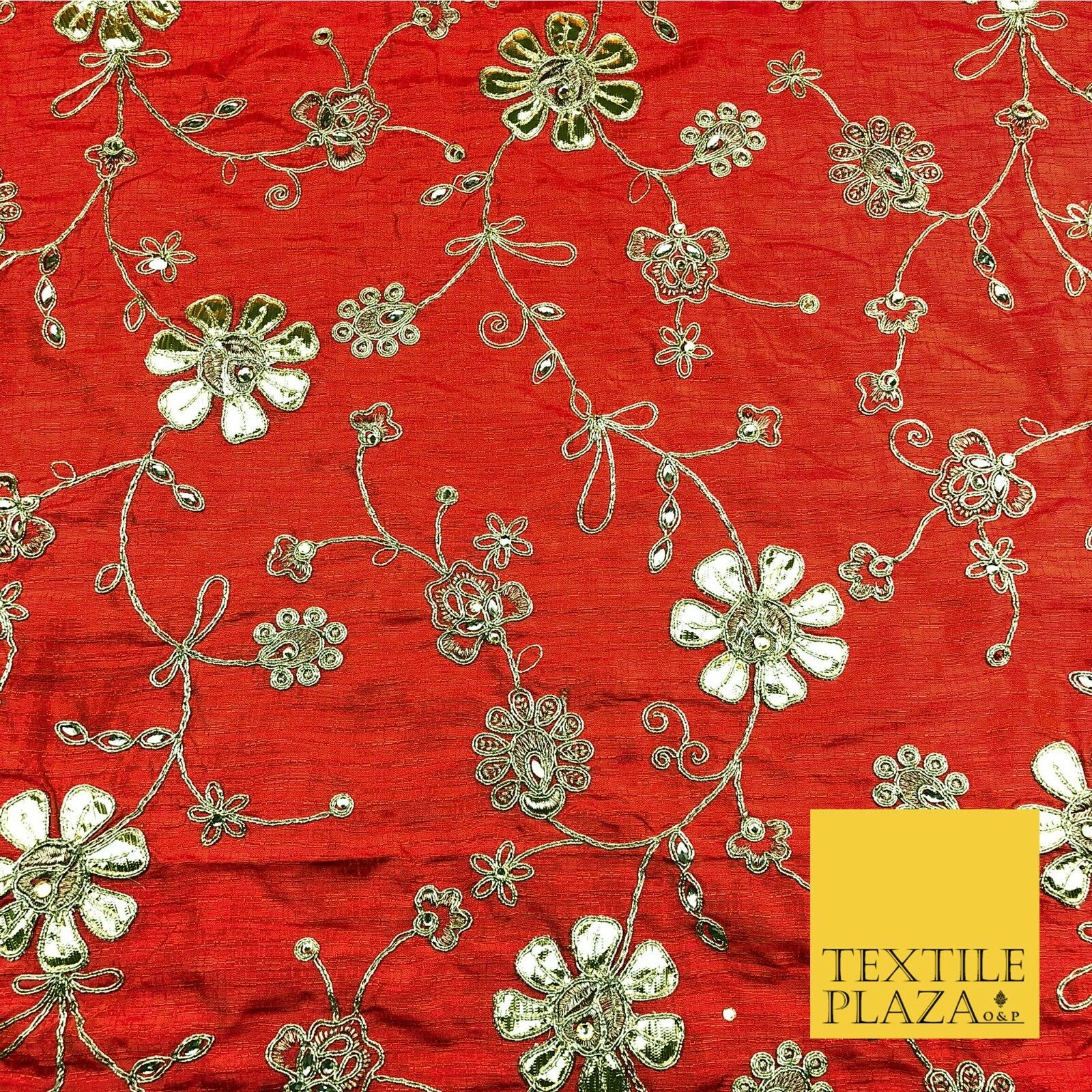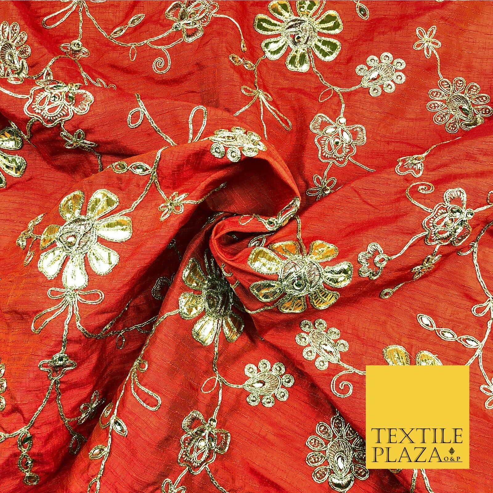 Orange Luxury Two Tone Faux Silk Gold Dori Embroidery Fabric 4 Colours JA292