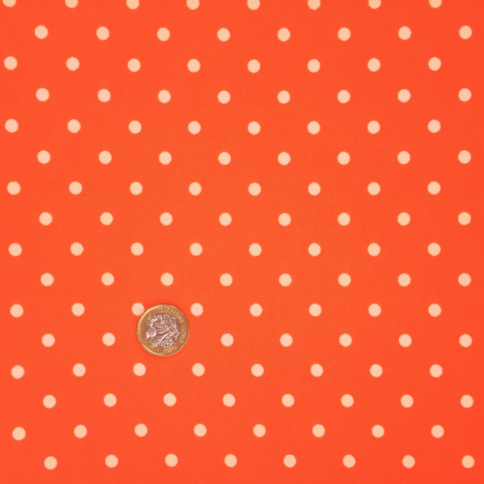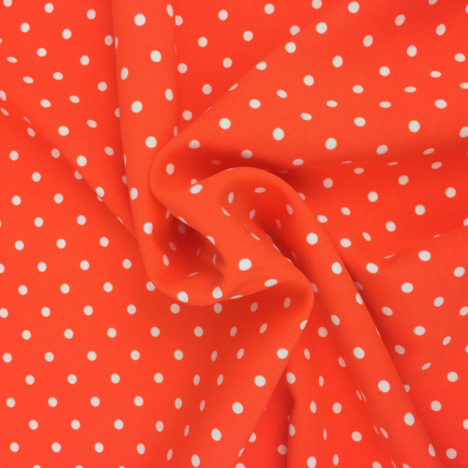 Orange with Small White Polka Dot Spotted Bi-Stretch Fabric Material - 58" RC81