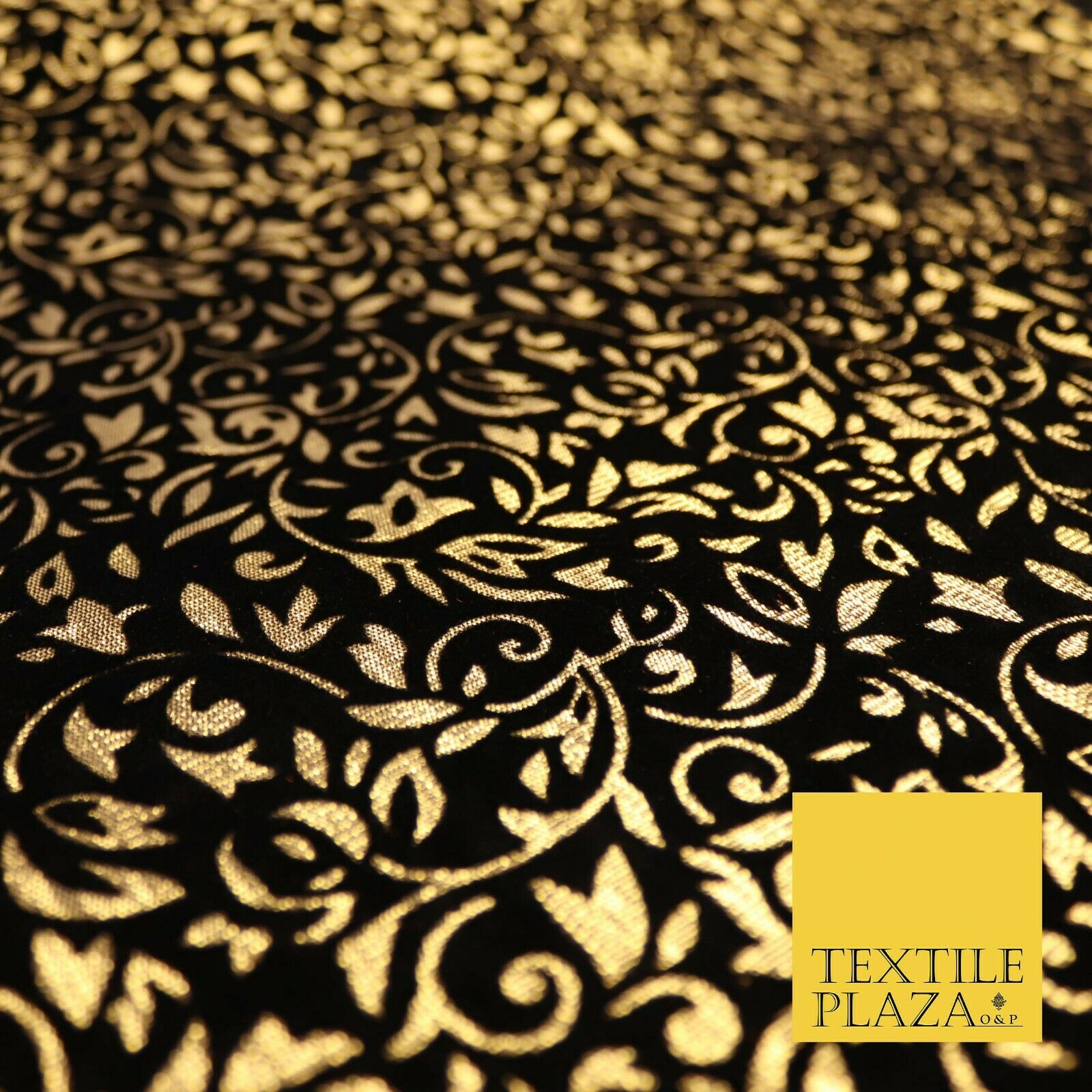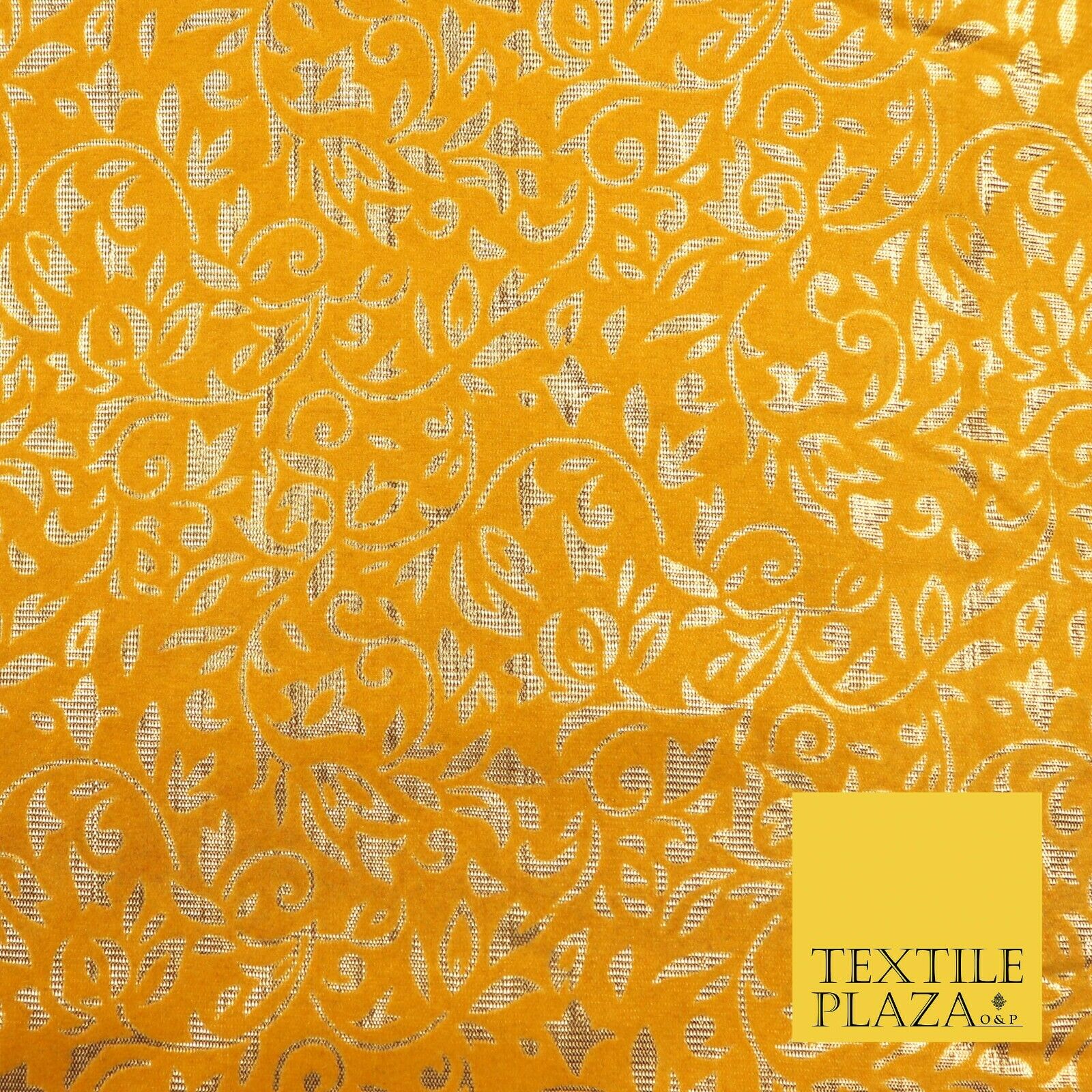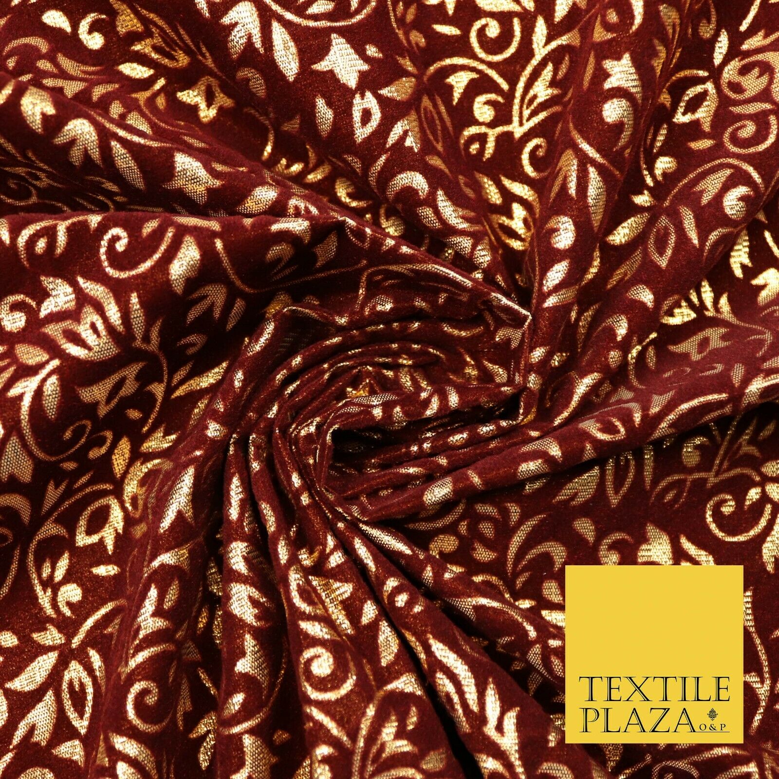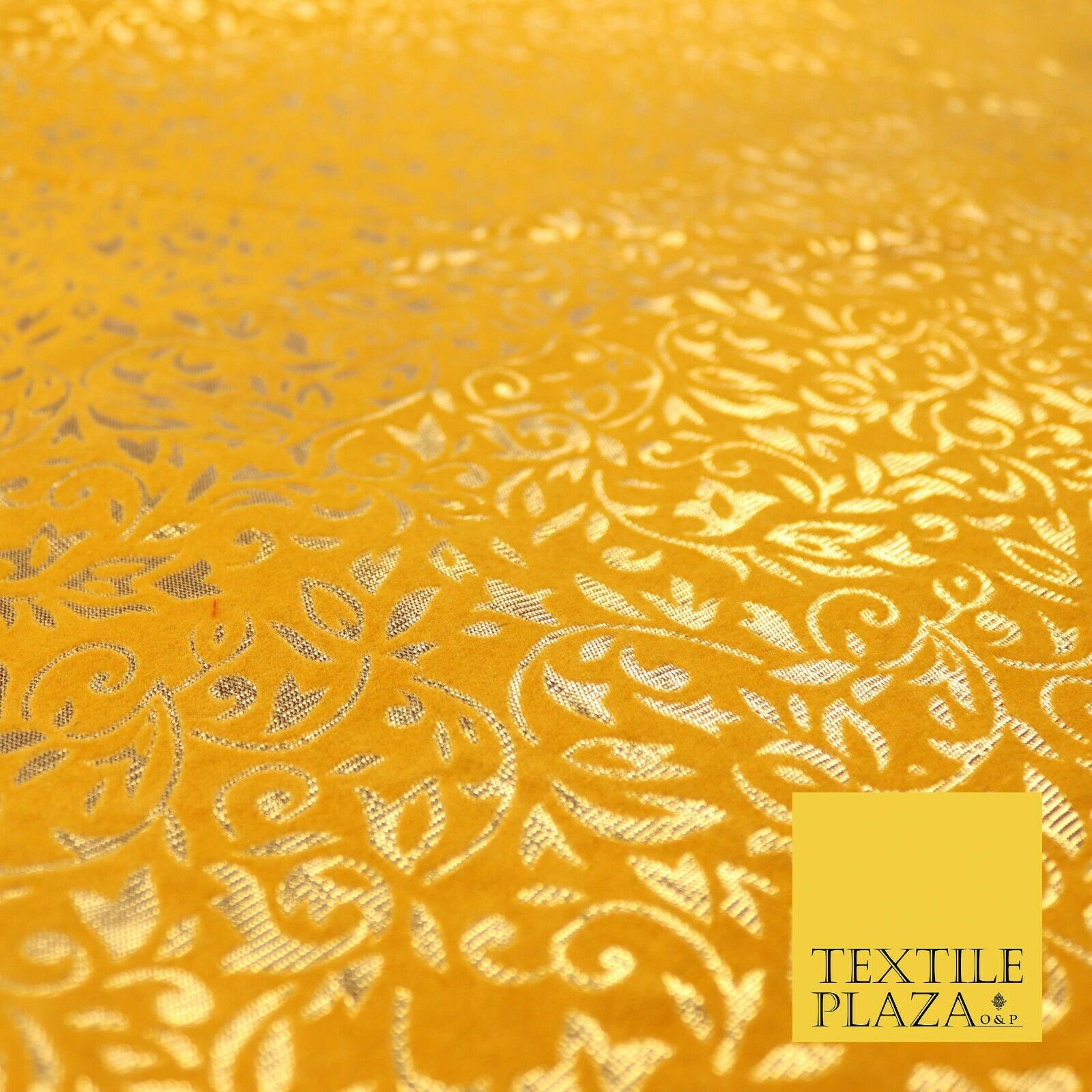 Ornate Floral Flocked Burnout Metallic Shiny Gold Lame Fabric 8 COLOURS 44" Wide