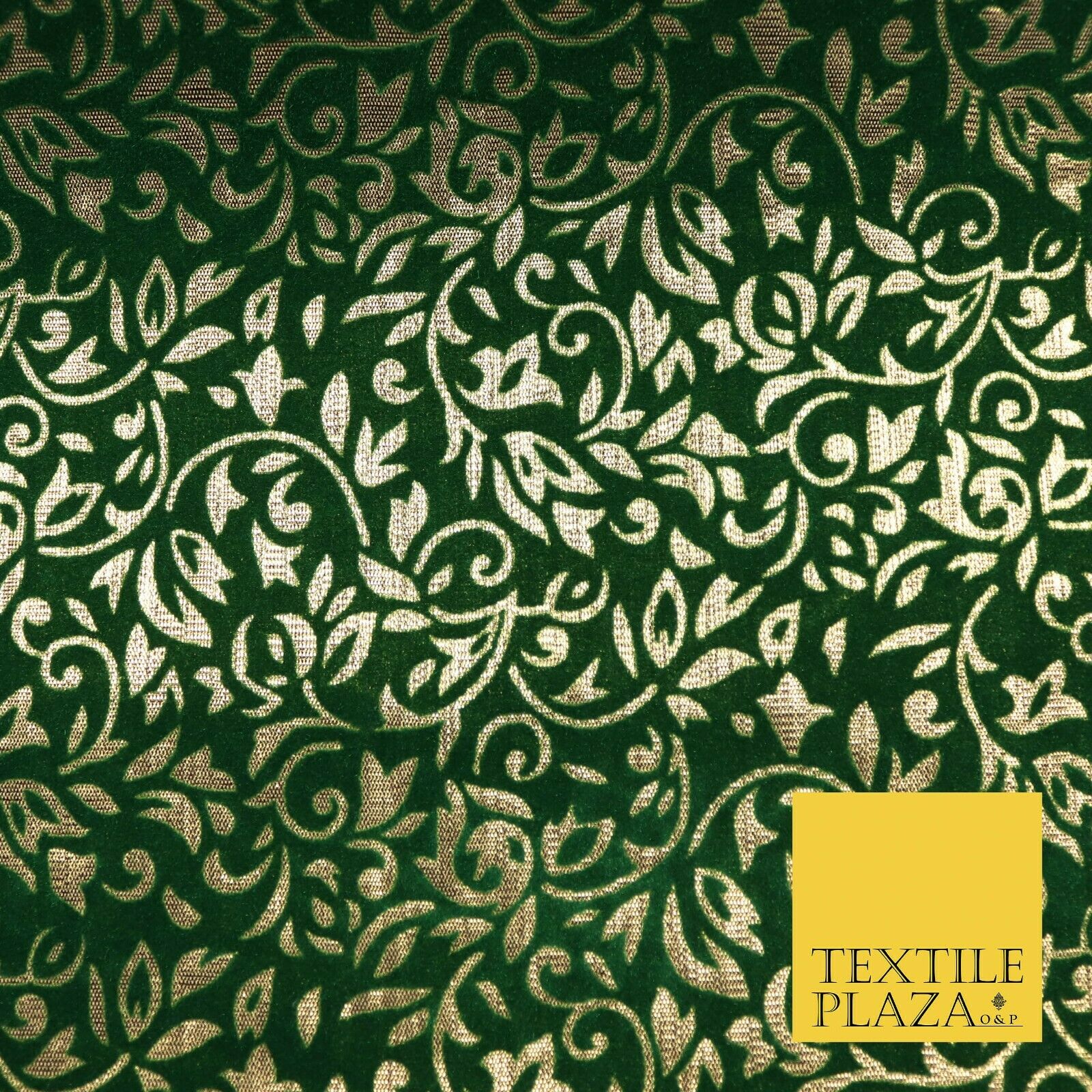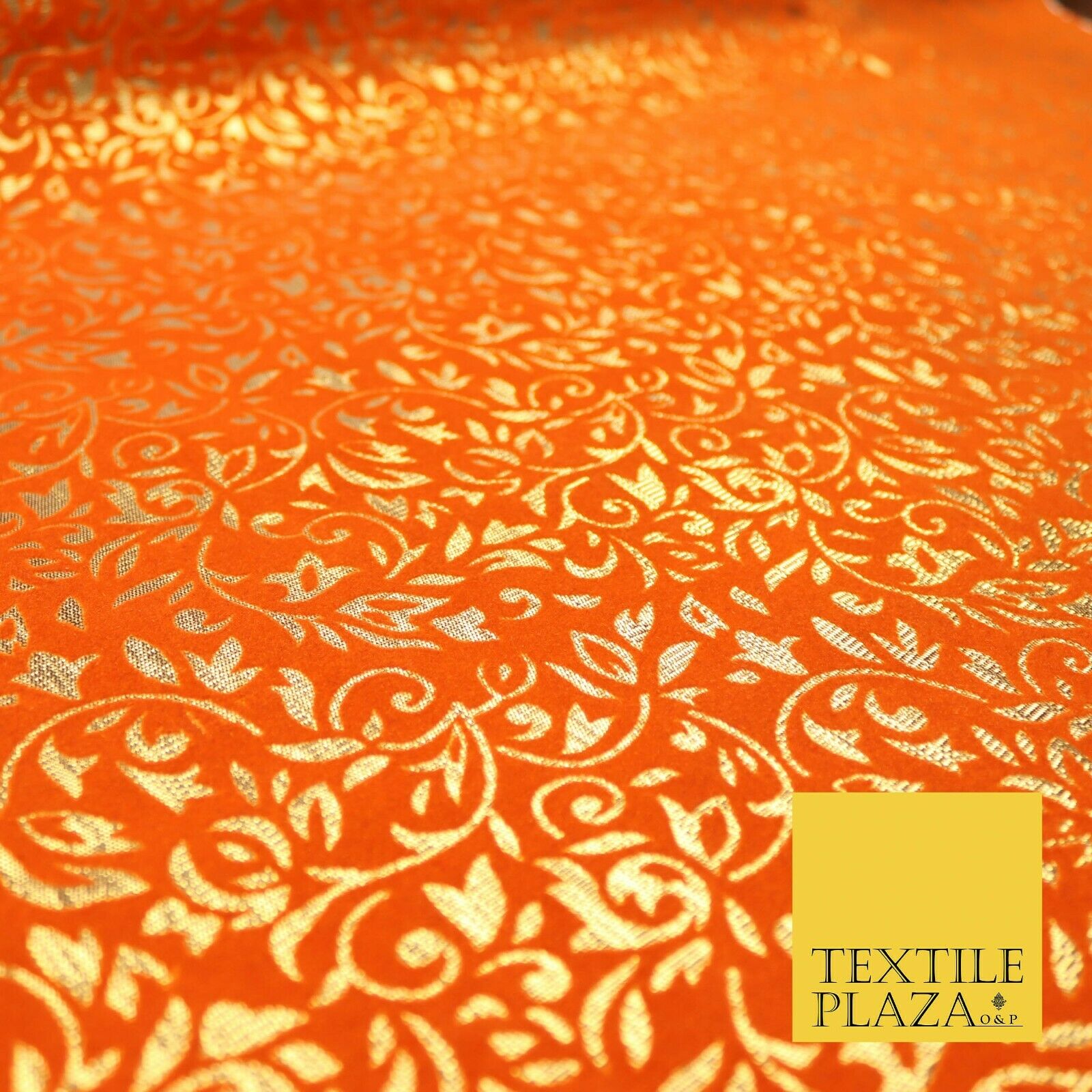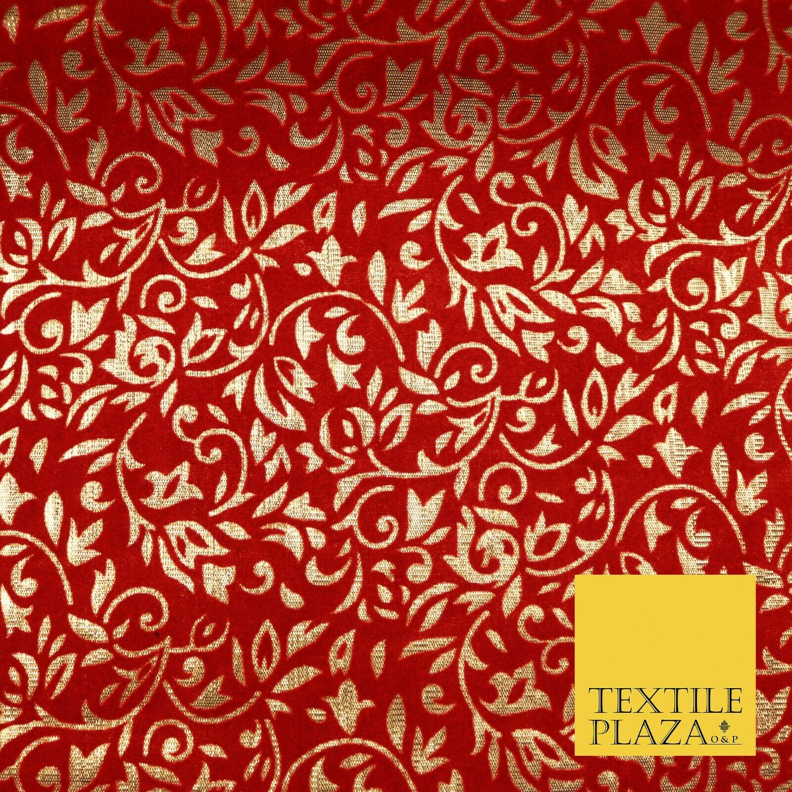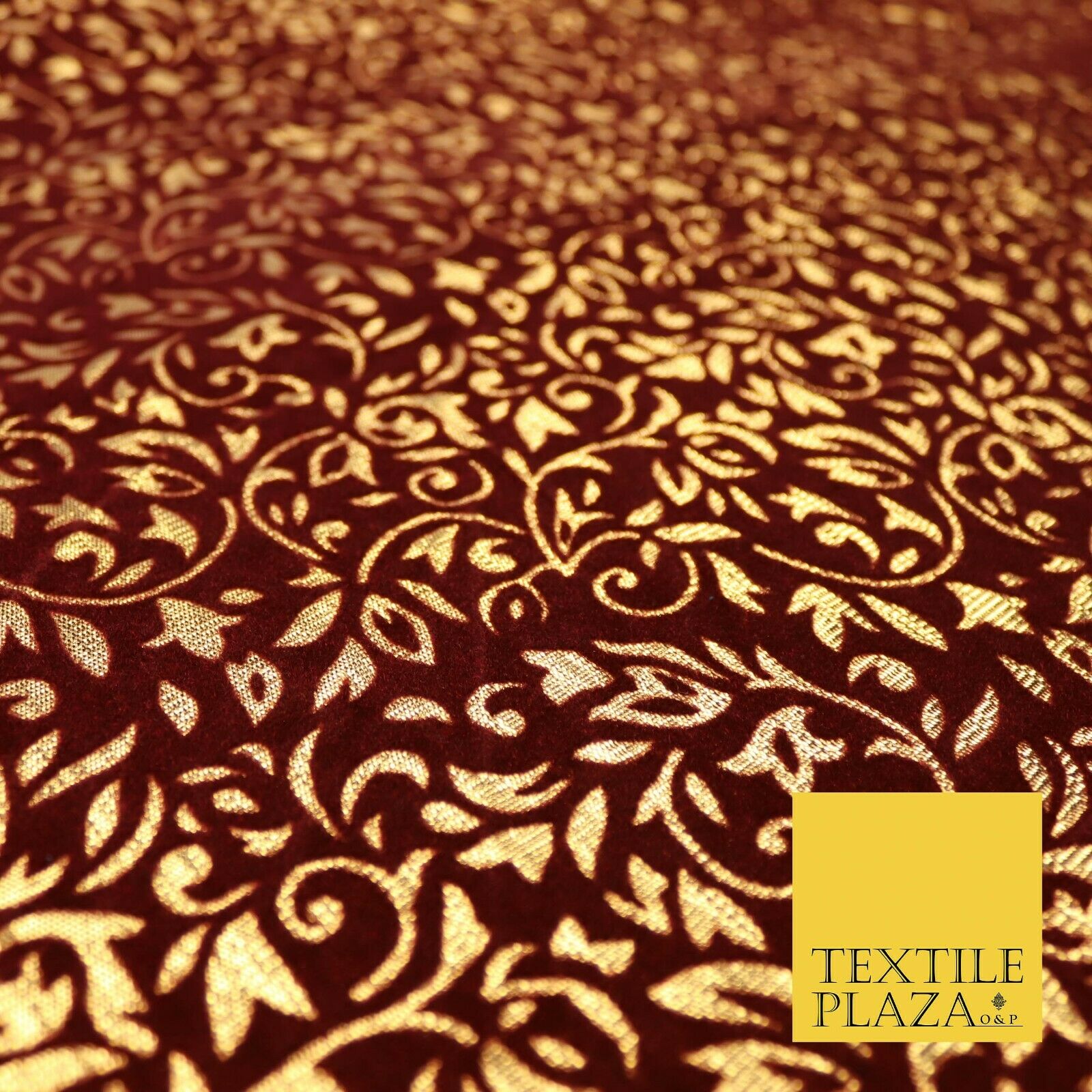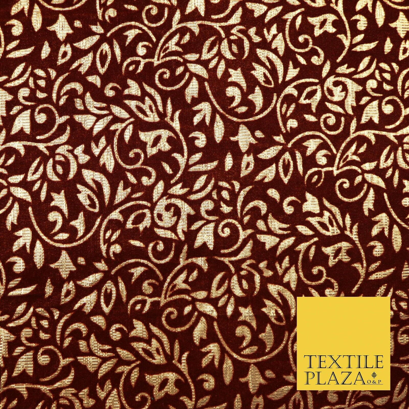 Ornate Floral Flocked Burnout Metallic Shiny Gold Lame Fabric 8 COLOURS 44" Wide