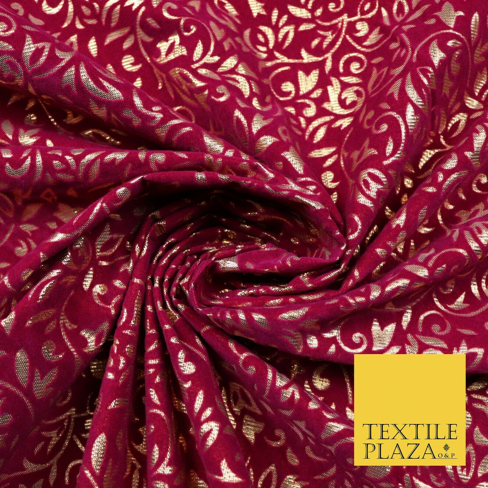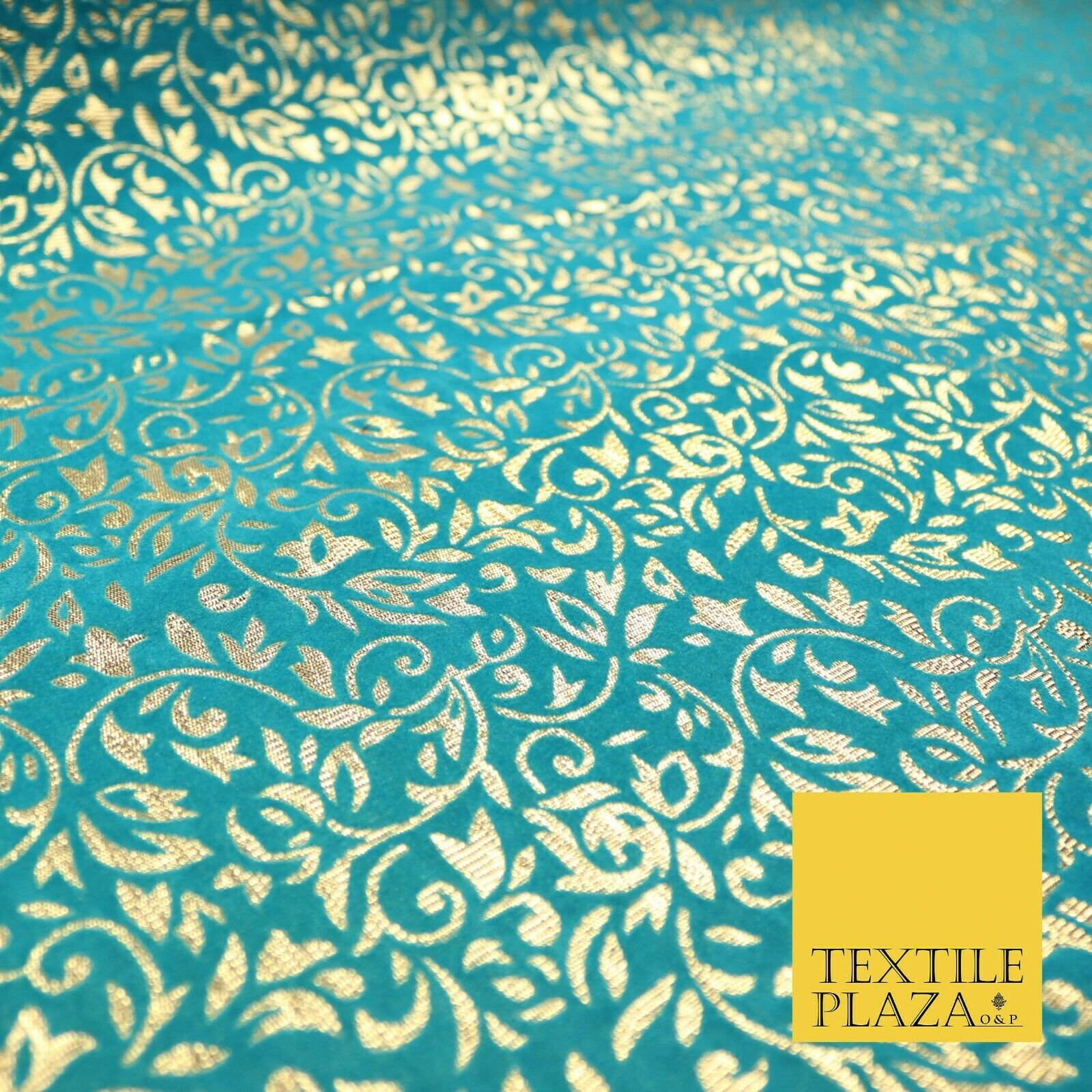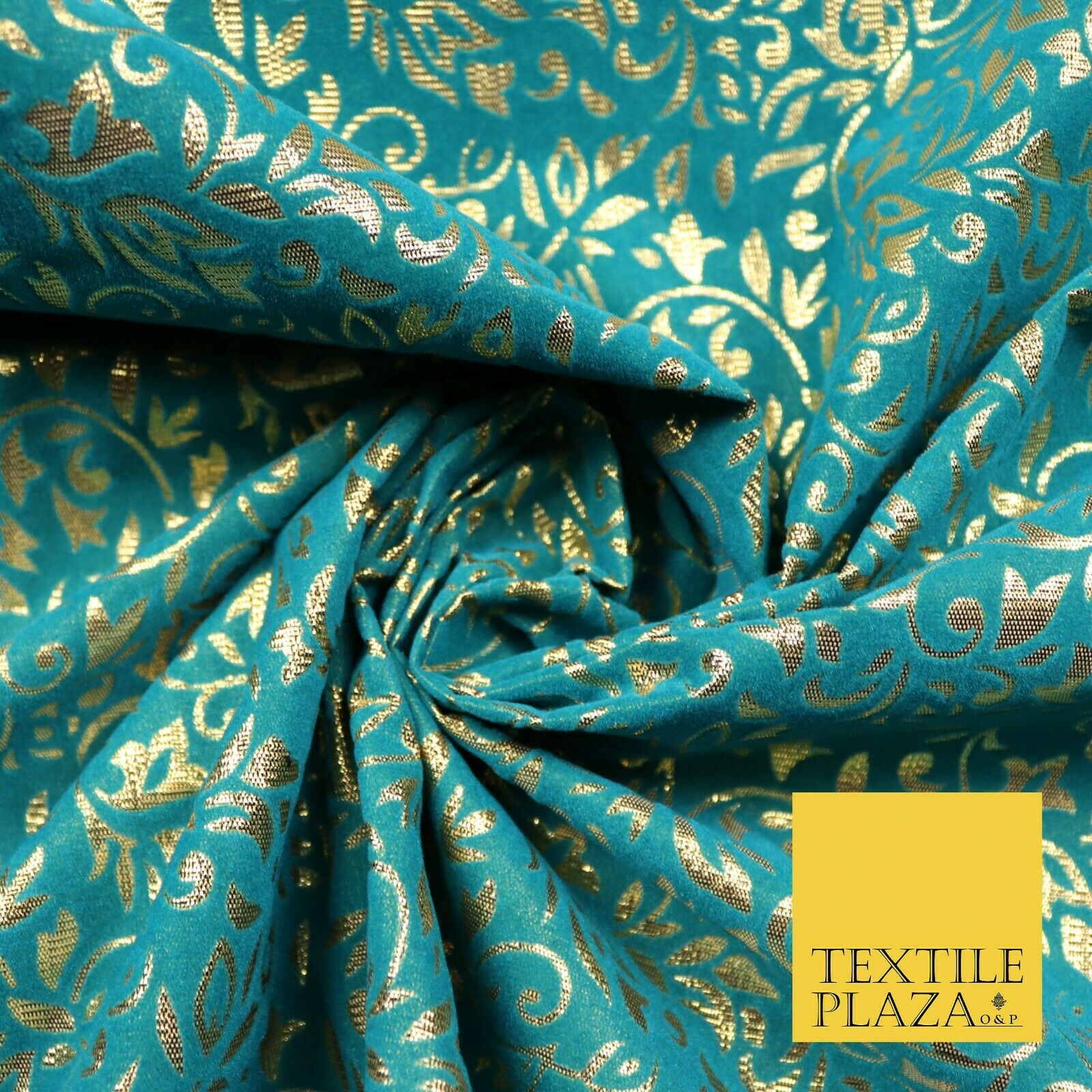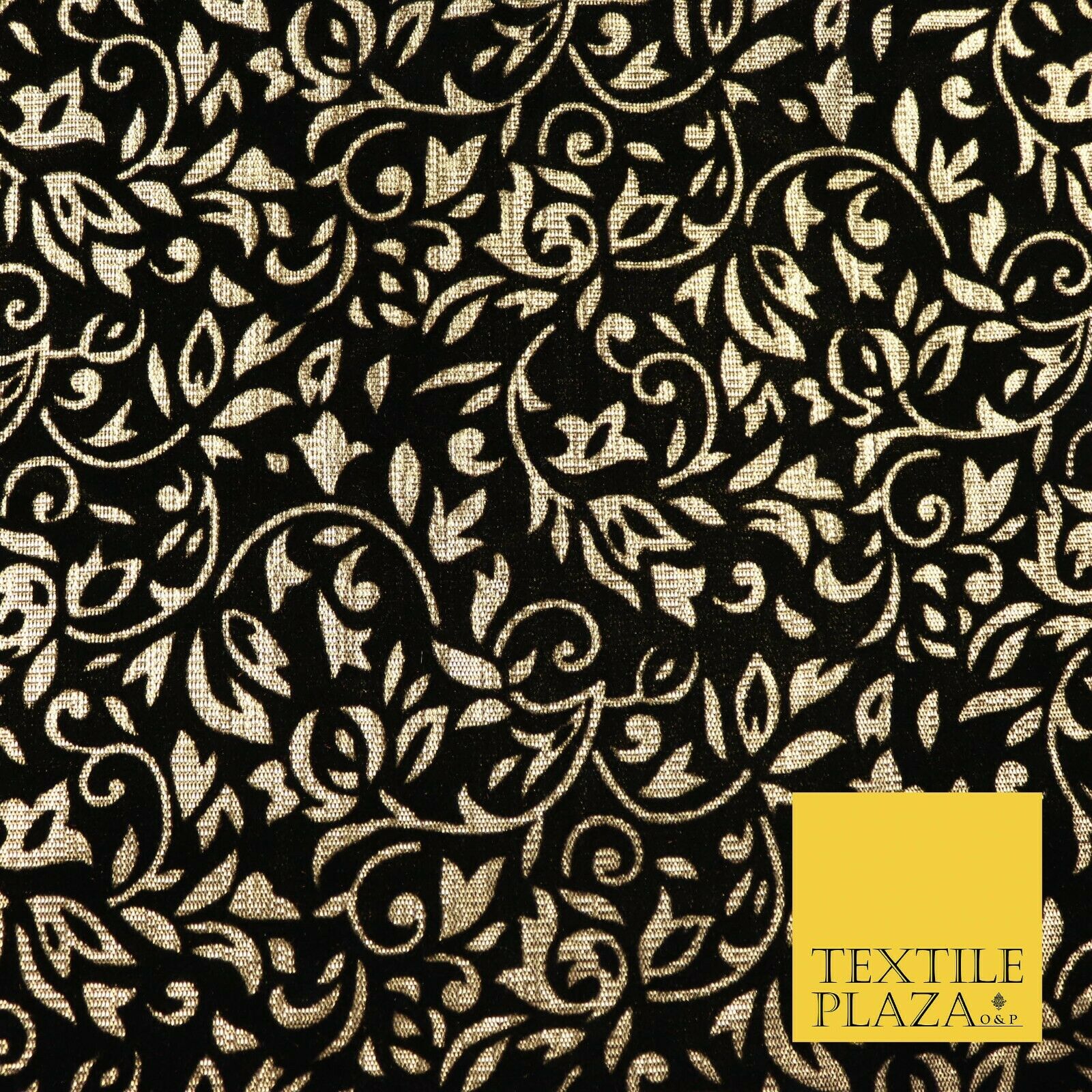 Ornate Floral Flocked Burnout Metallic Shiny Gold Lame Fabric 8 COLOURS 44" Wide