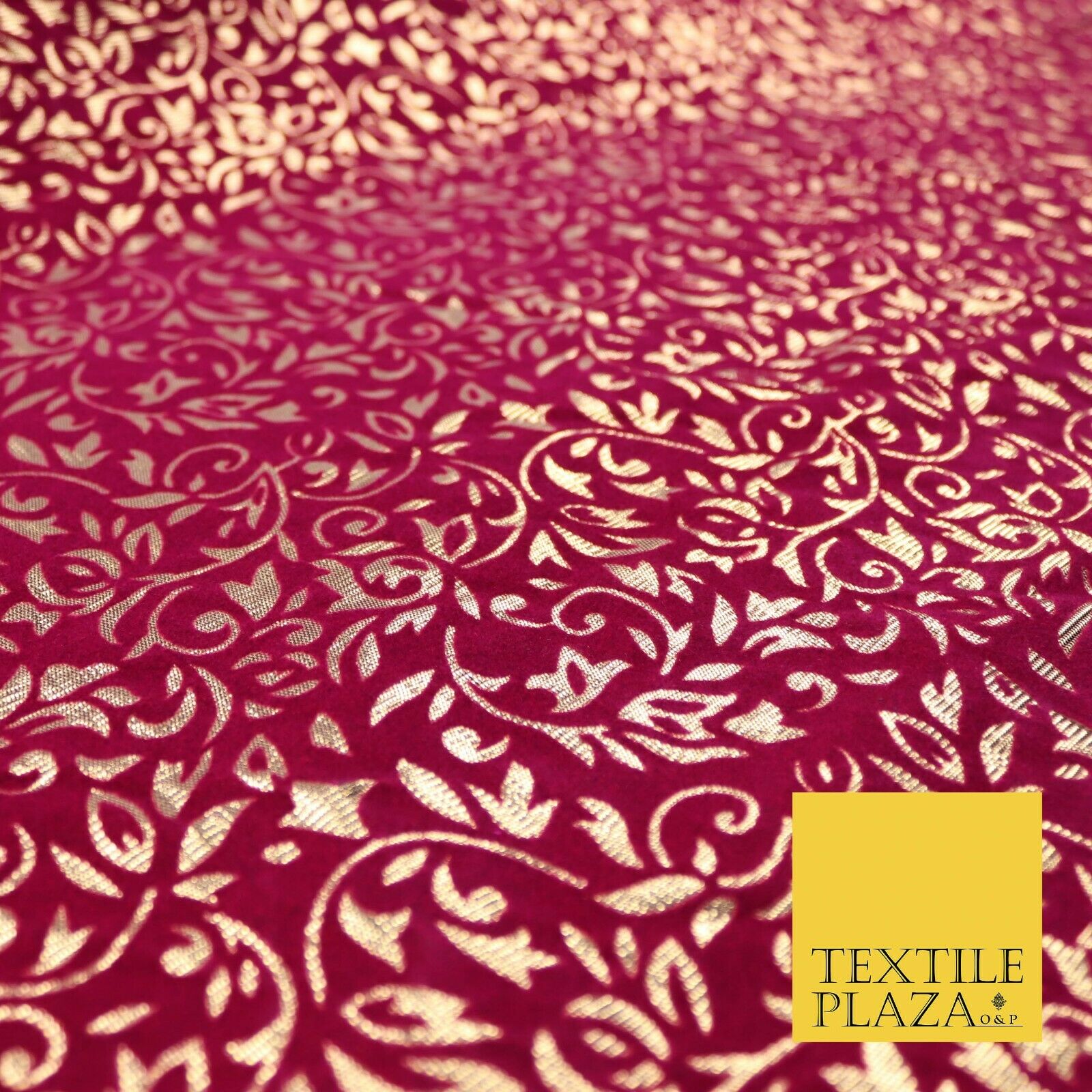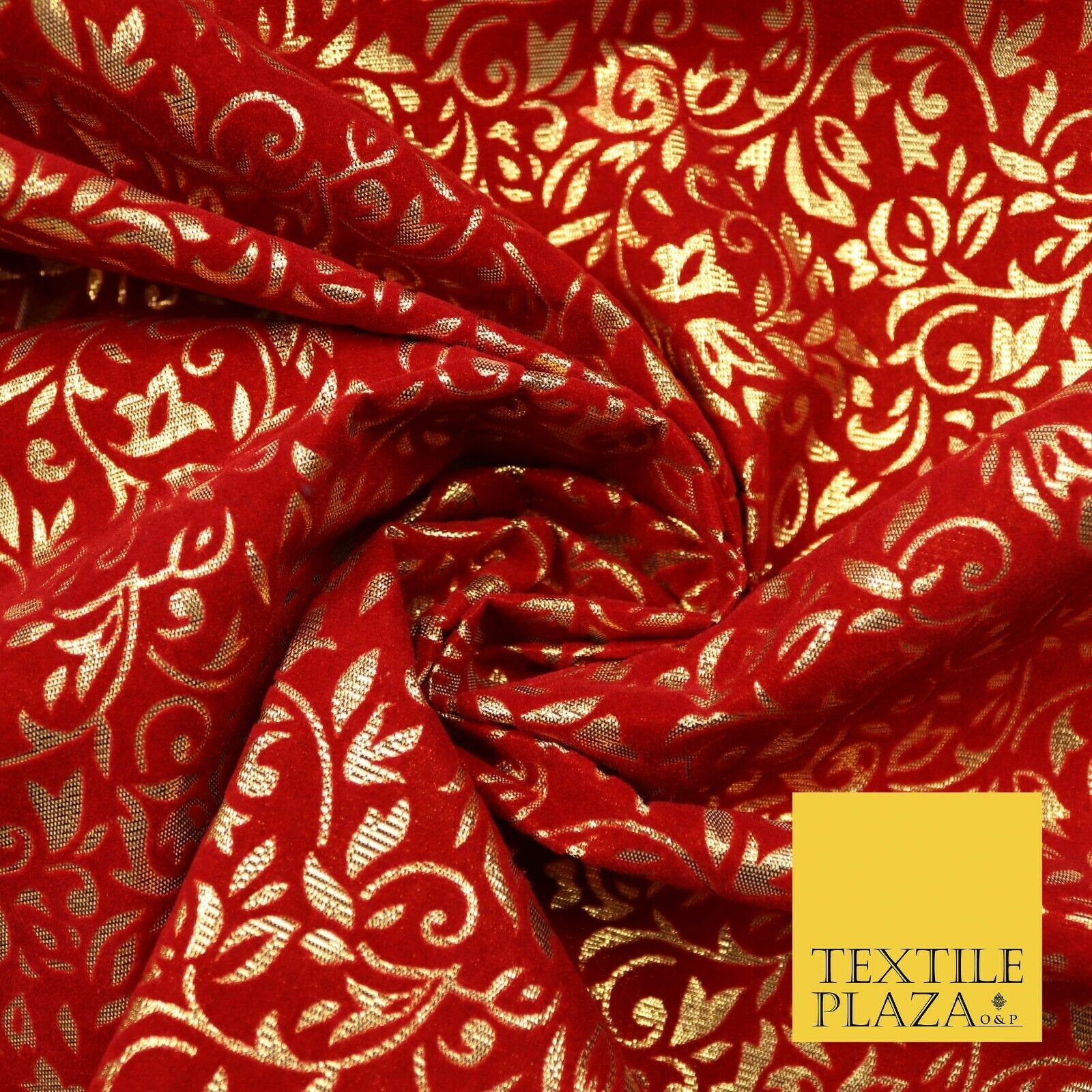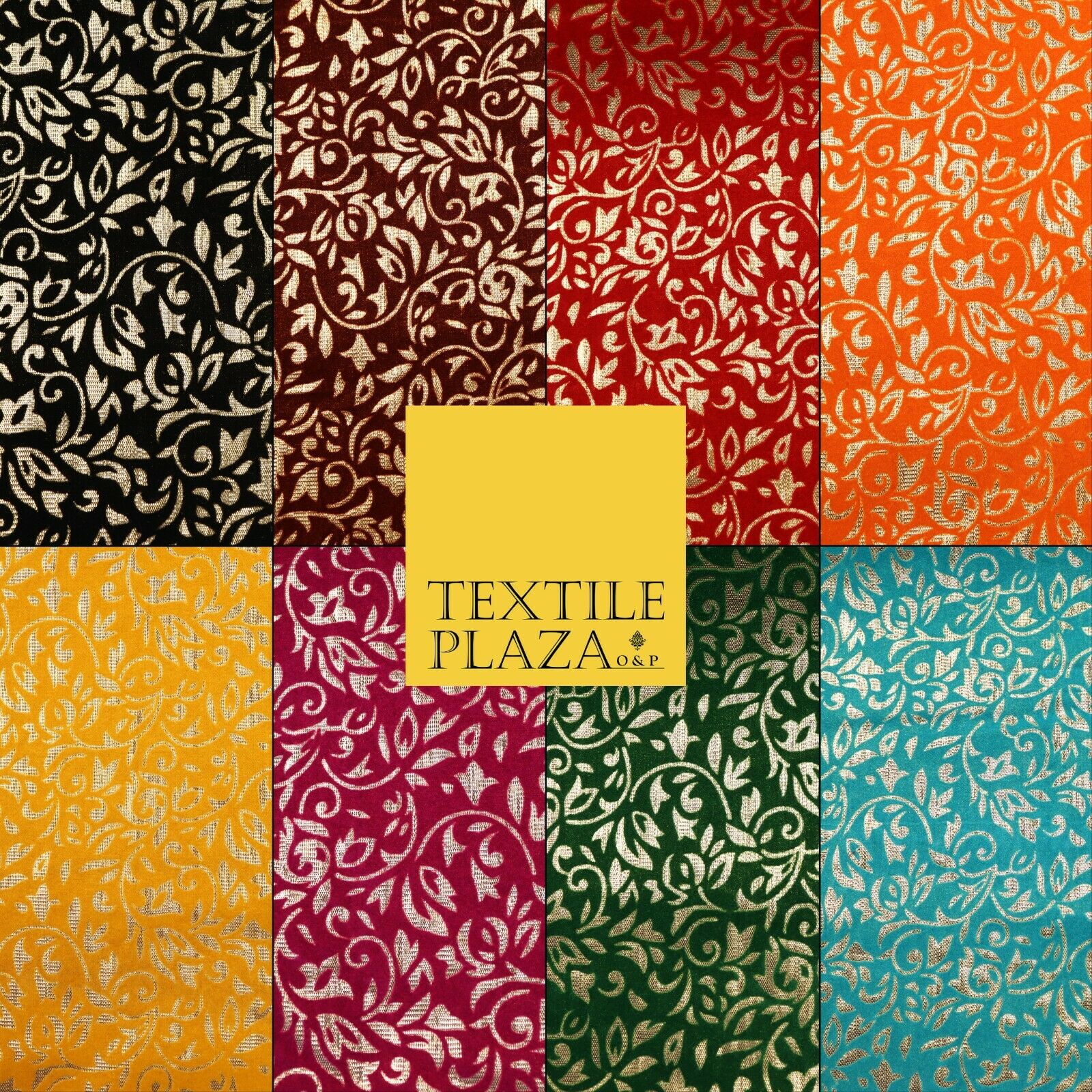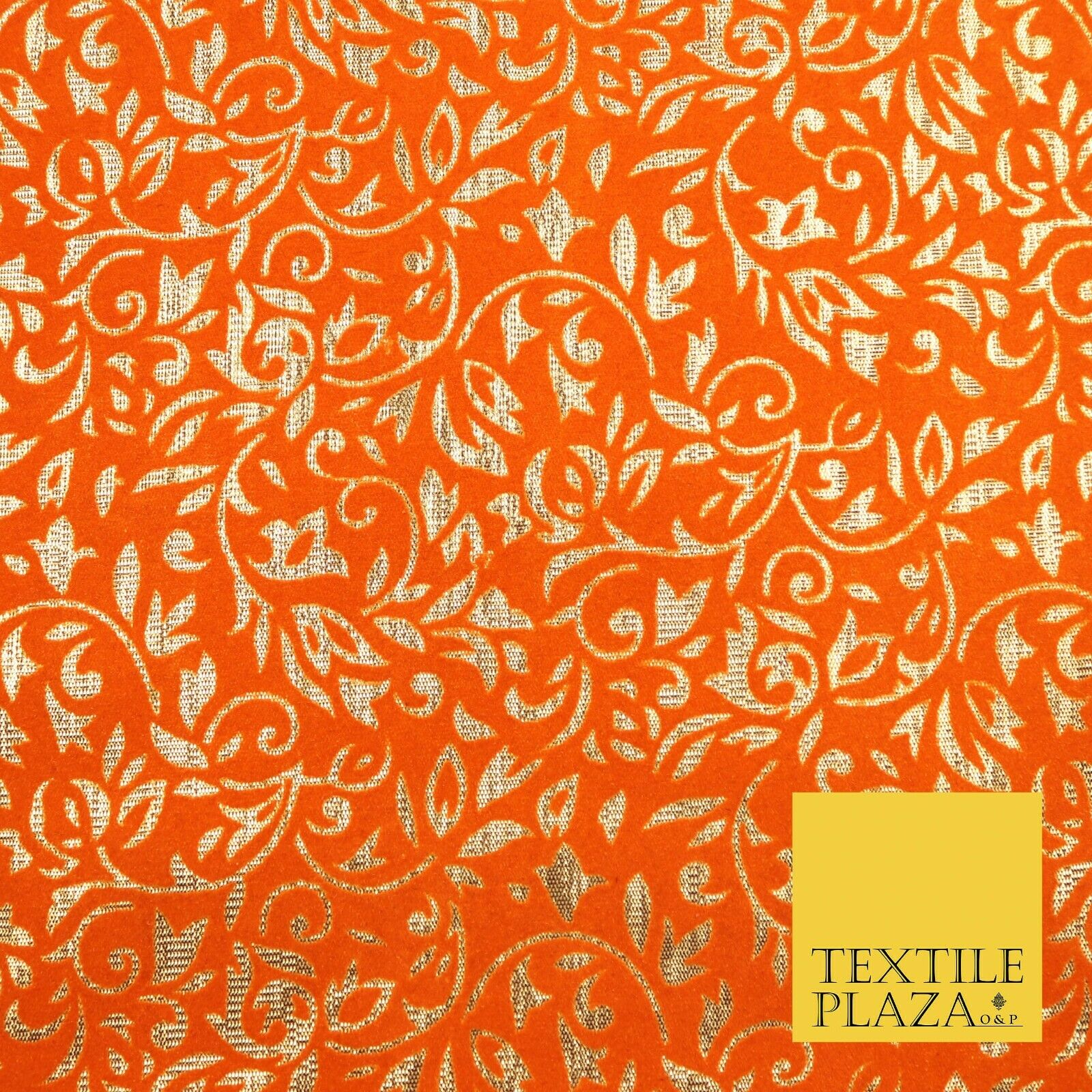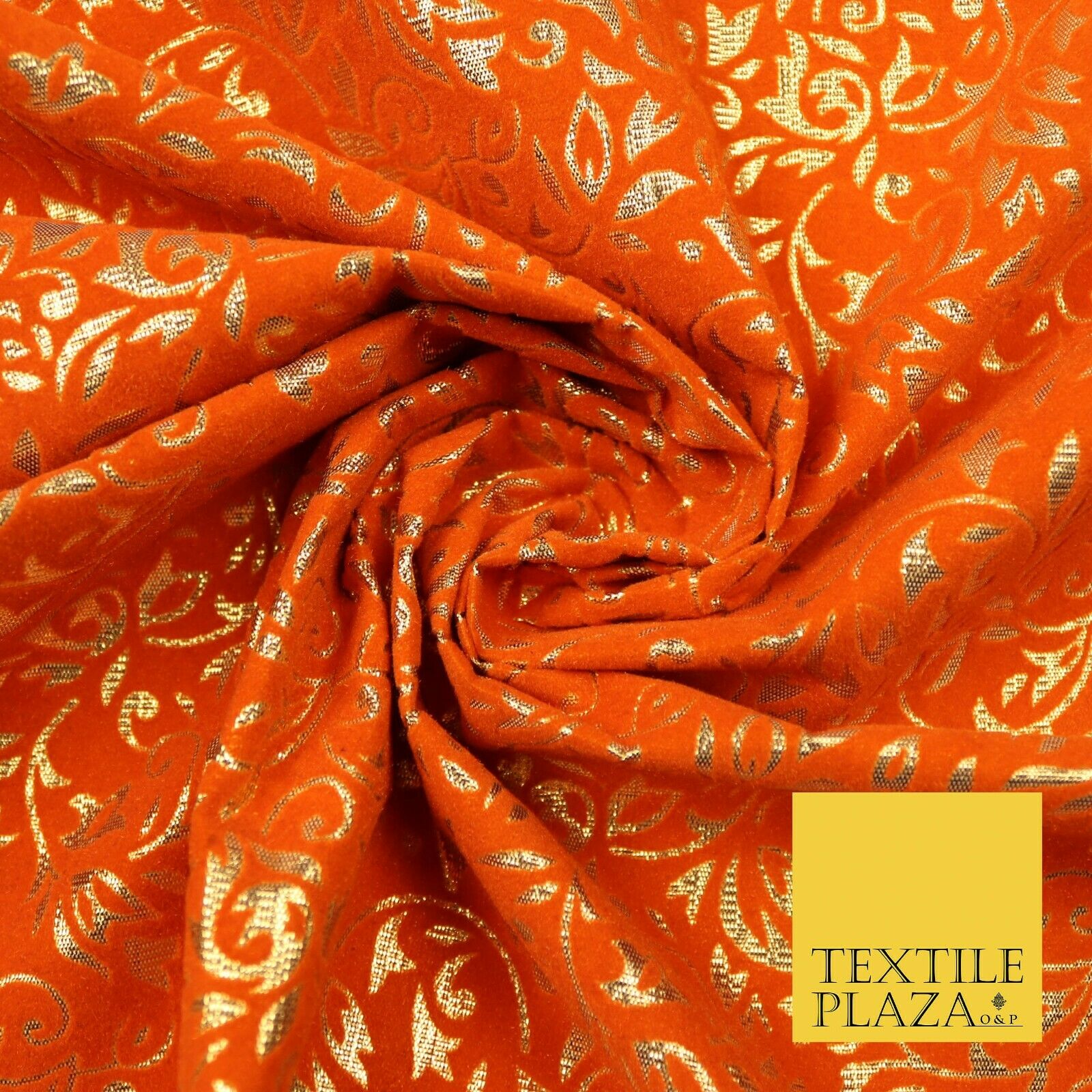 Ornate Floral Flocked Burnout Metallic Shiny Gold Lame Fabric 8 COLOURS 44" Wide