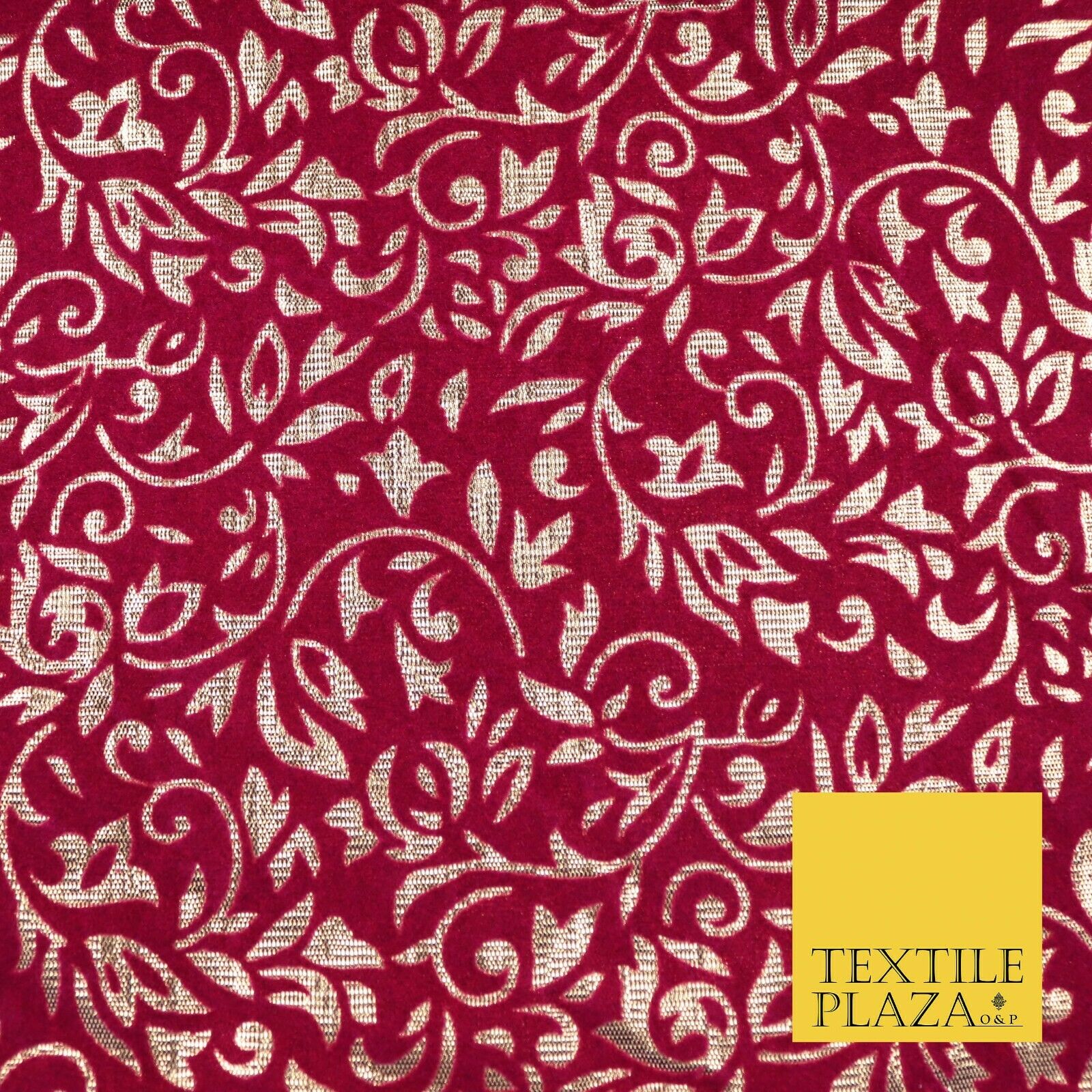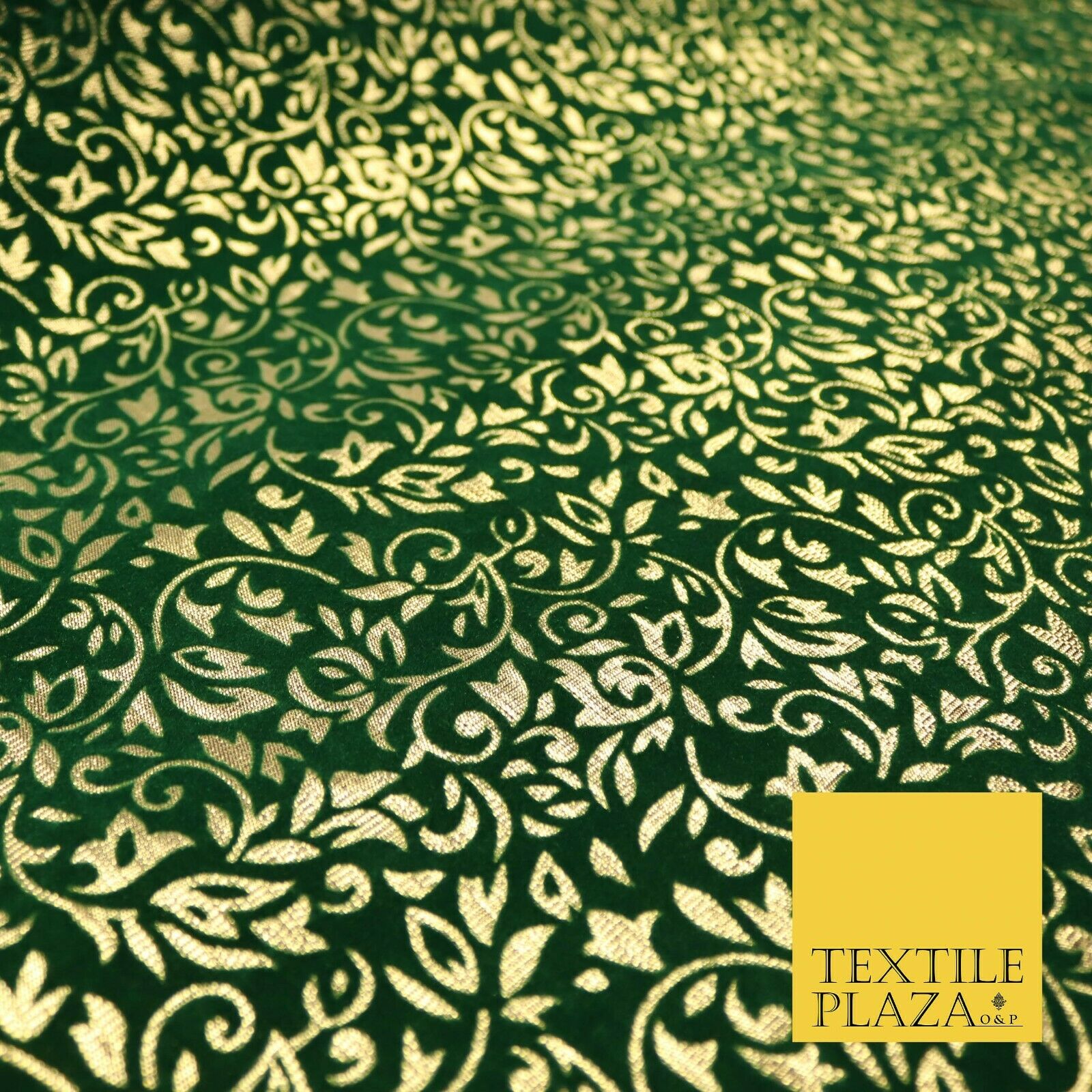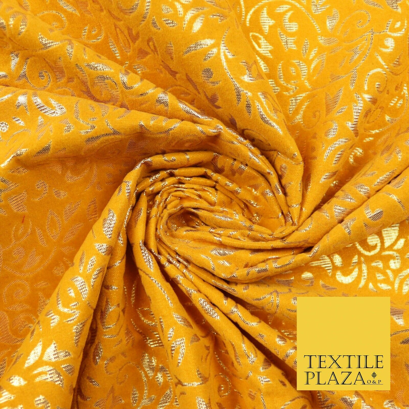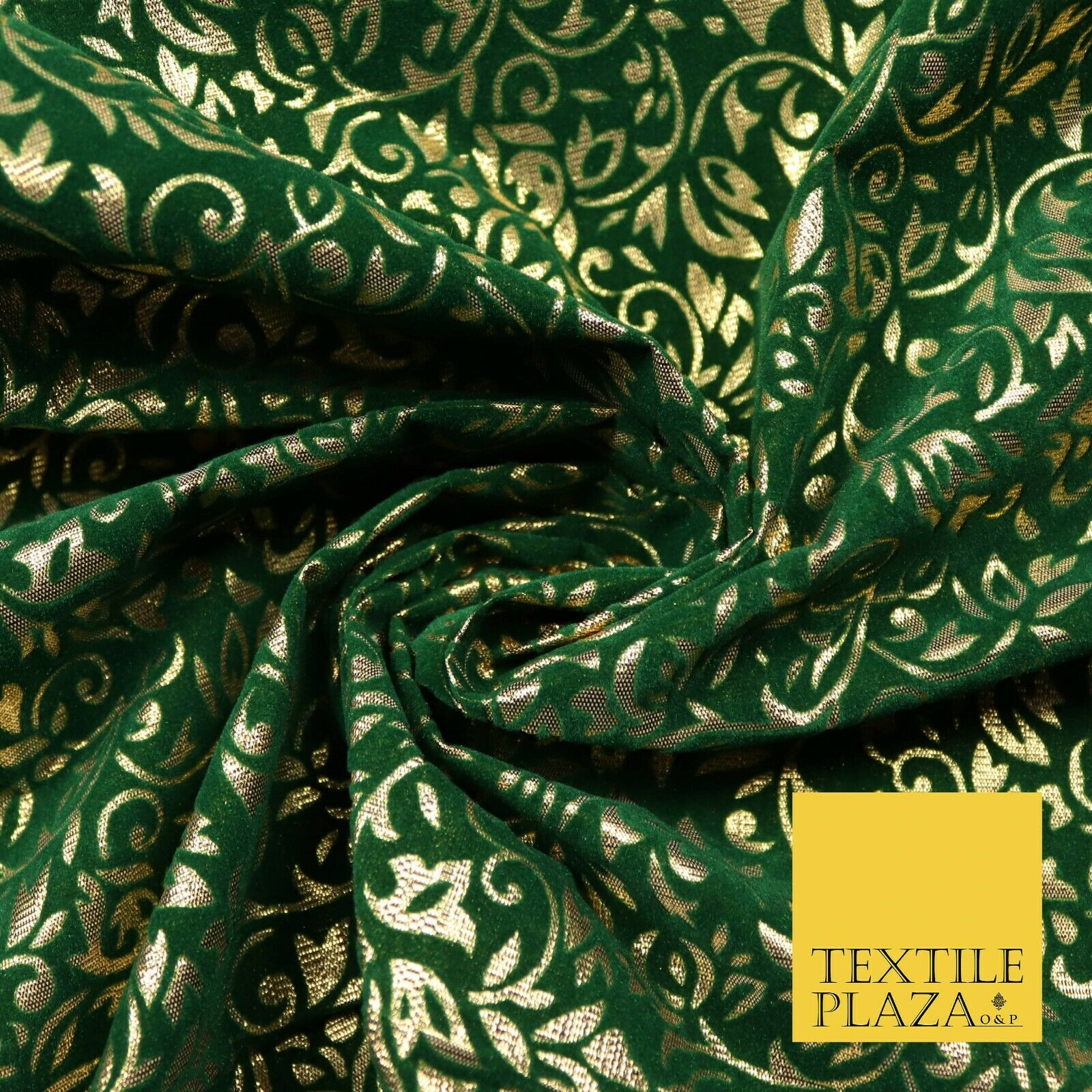 Ornate Floral Flocked Burnout Metallic Shiny Gold Lame Fabric 8 COLOURS 44" Wide