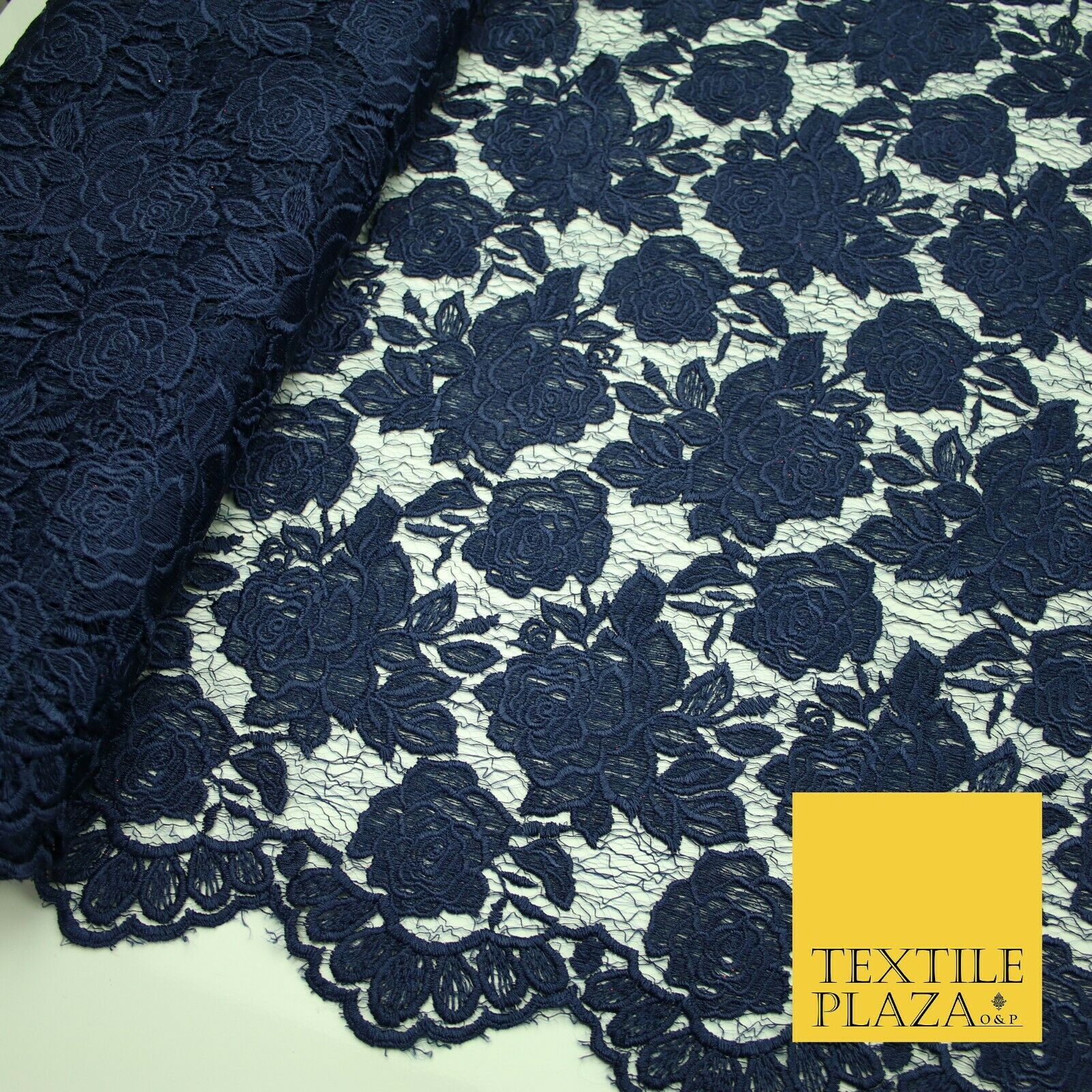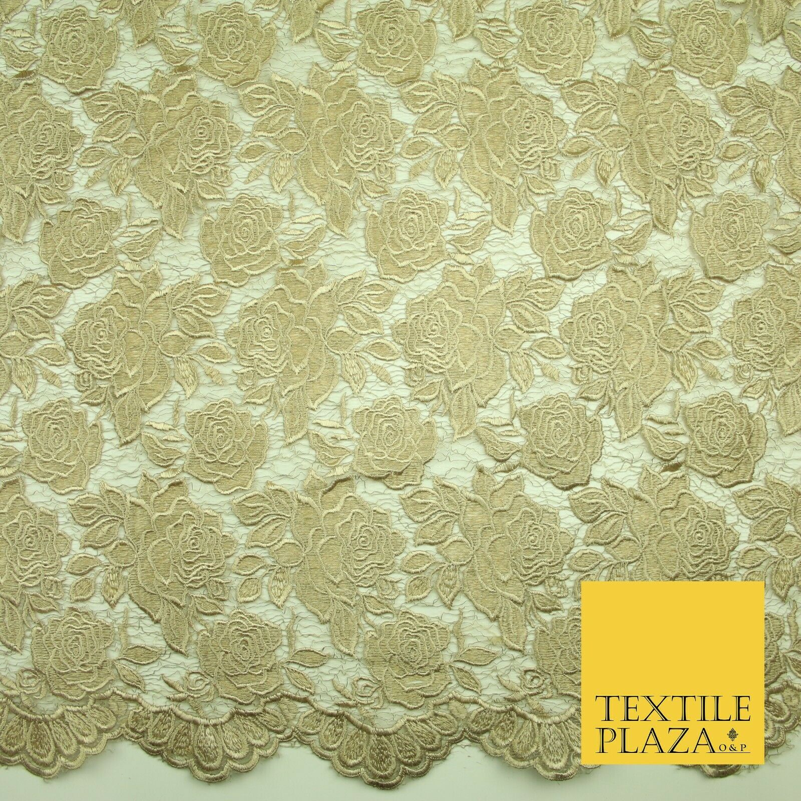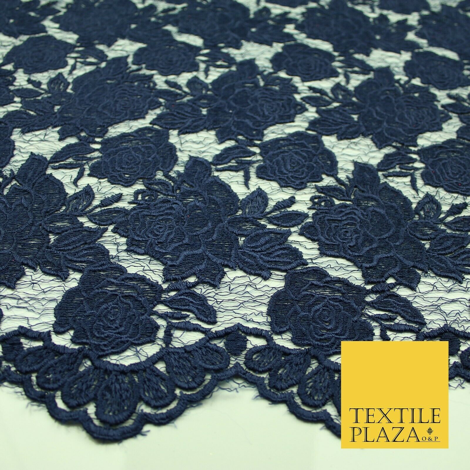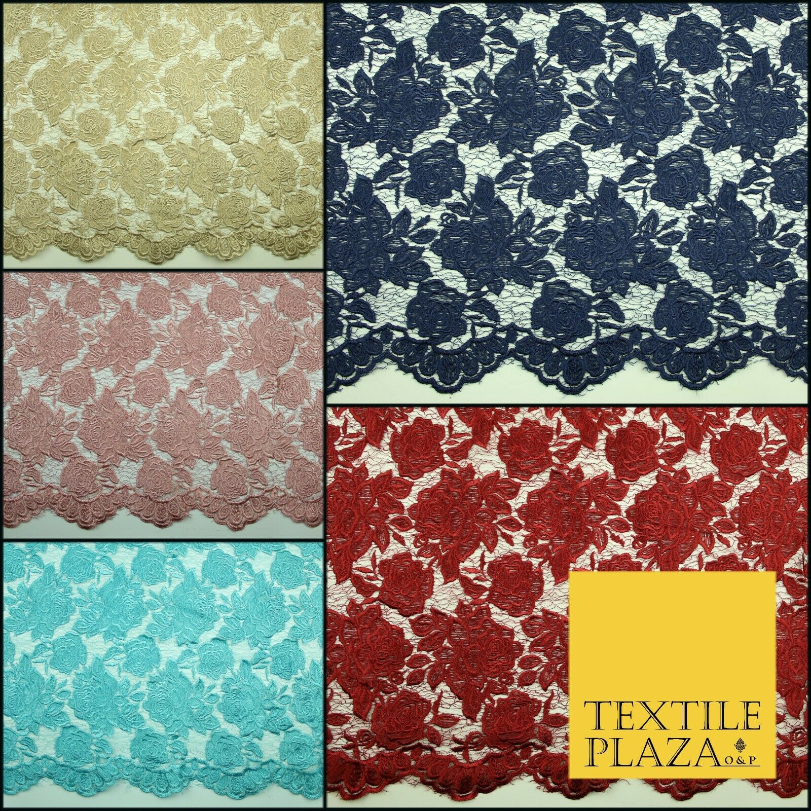 Ornate Floral Rose Scalloped Embroidered Webbed Net Lace Dress Fabric Wedding