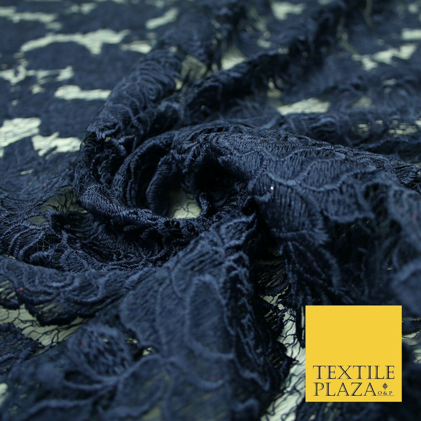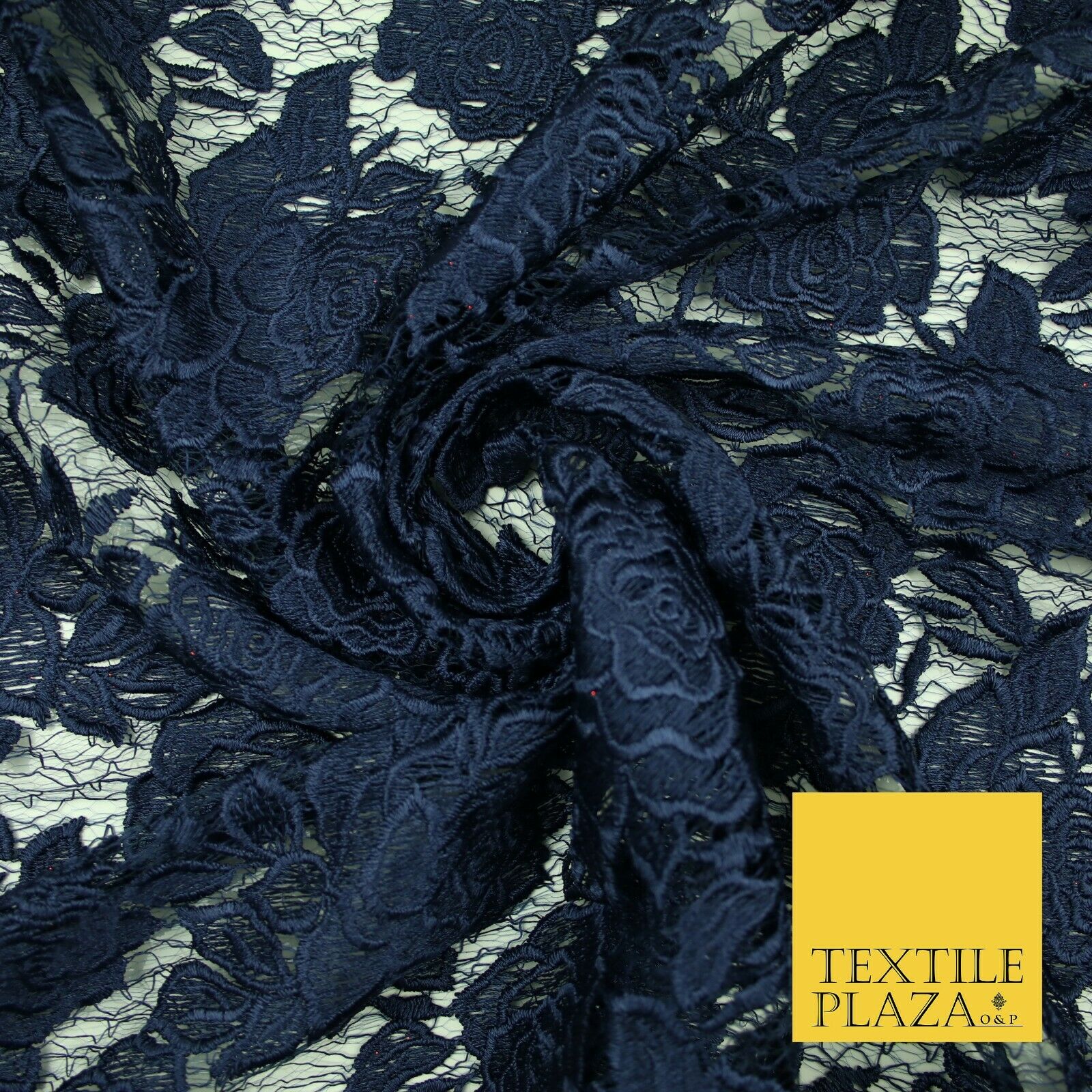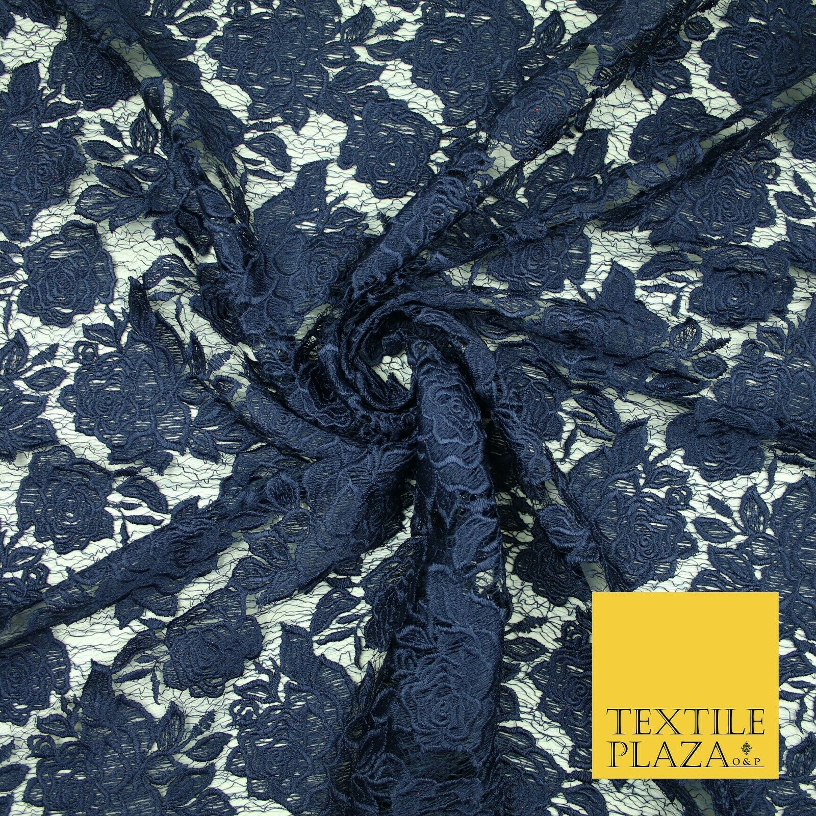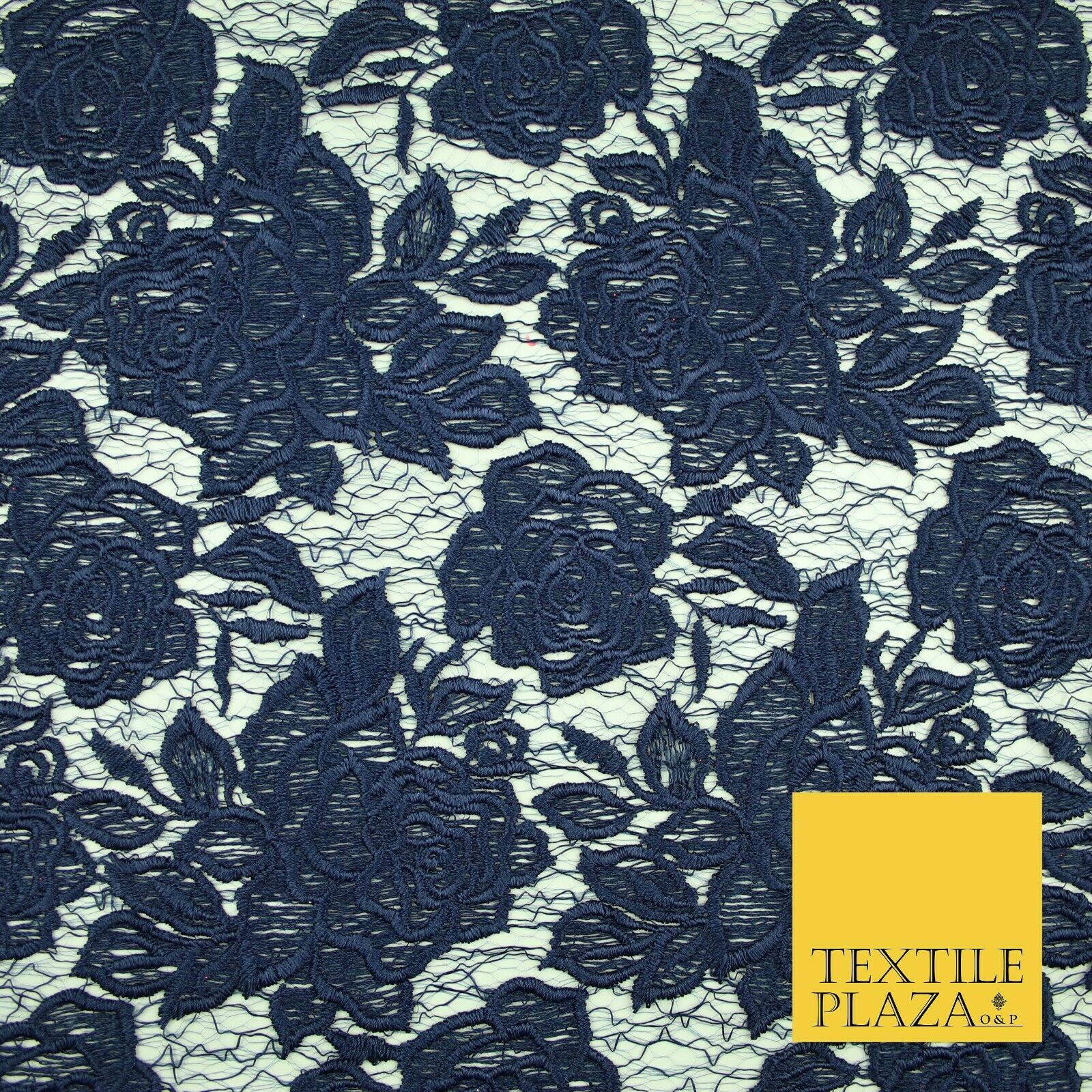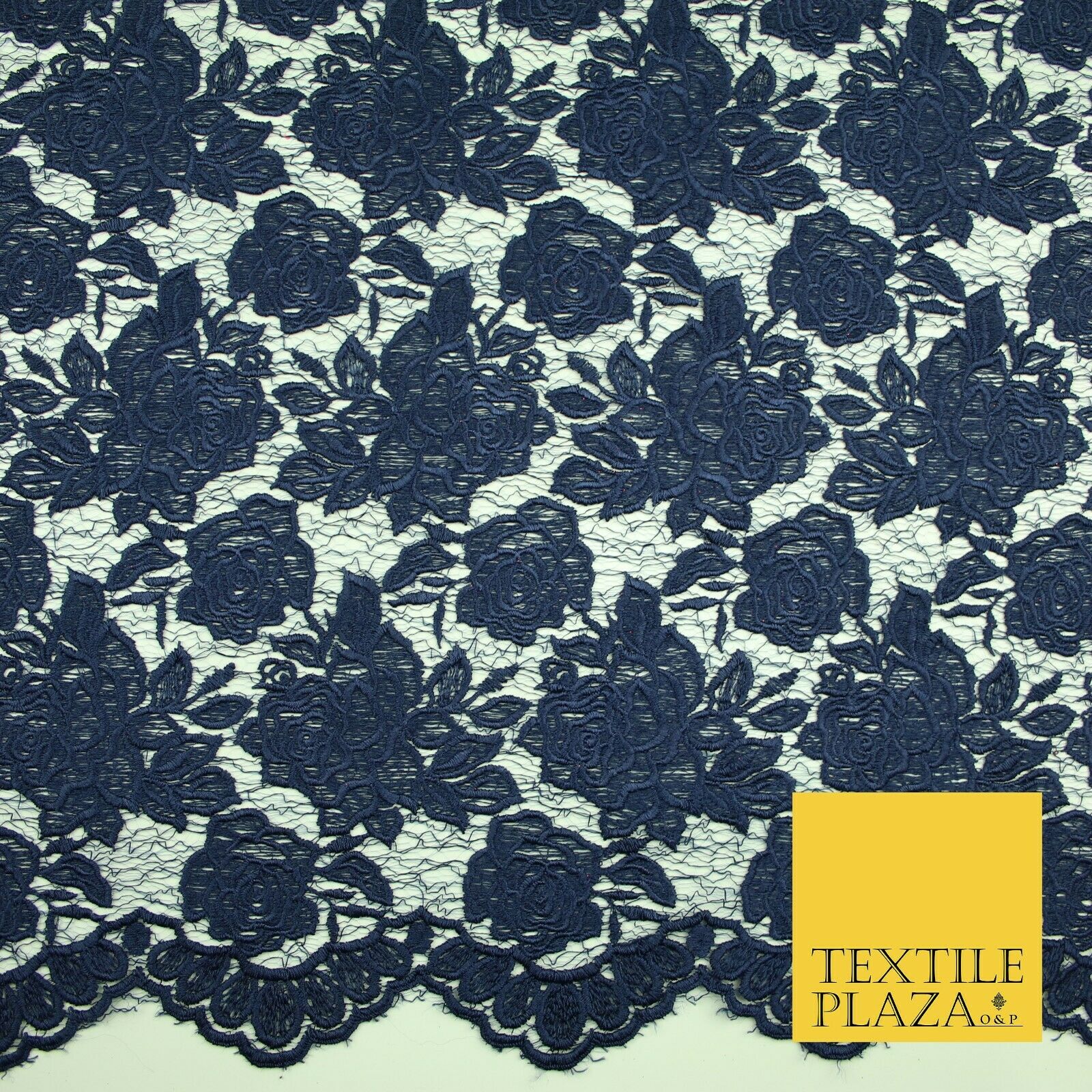 Ornate Floral Rose Scalloped Embroidered Webbed Net Lace Dress Fabric Wedding