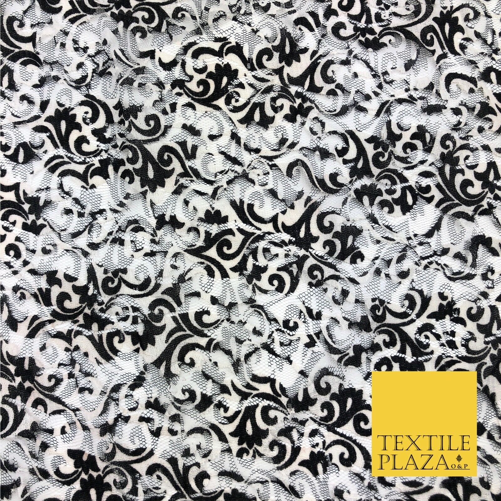 Ornate Swirl Black White Ivory Net Lace Fabric Trendy Dress Fashion 45" GE809