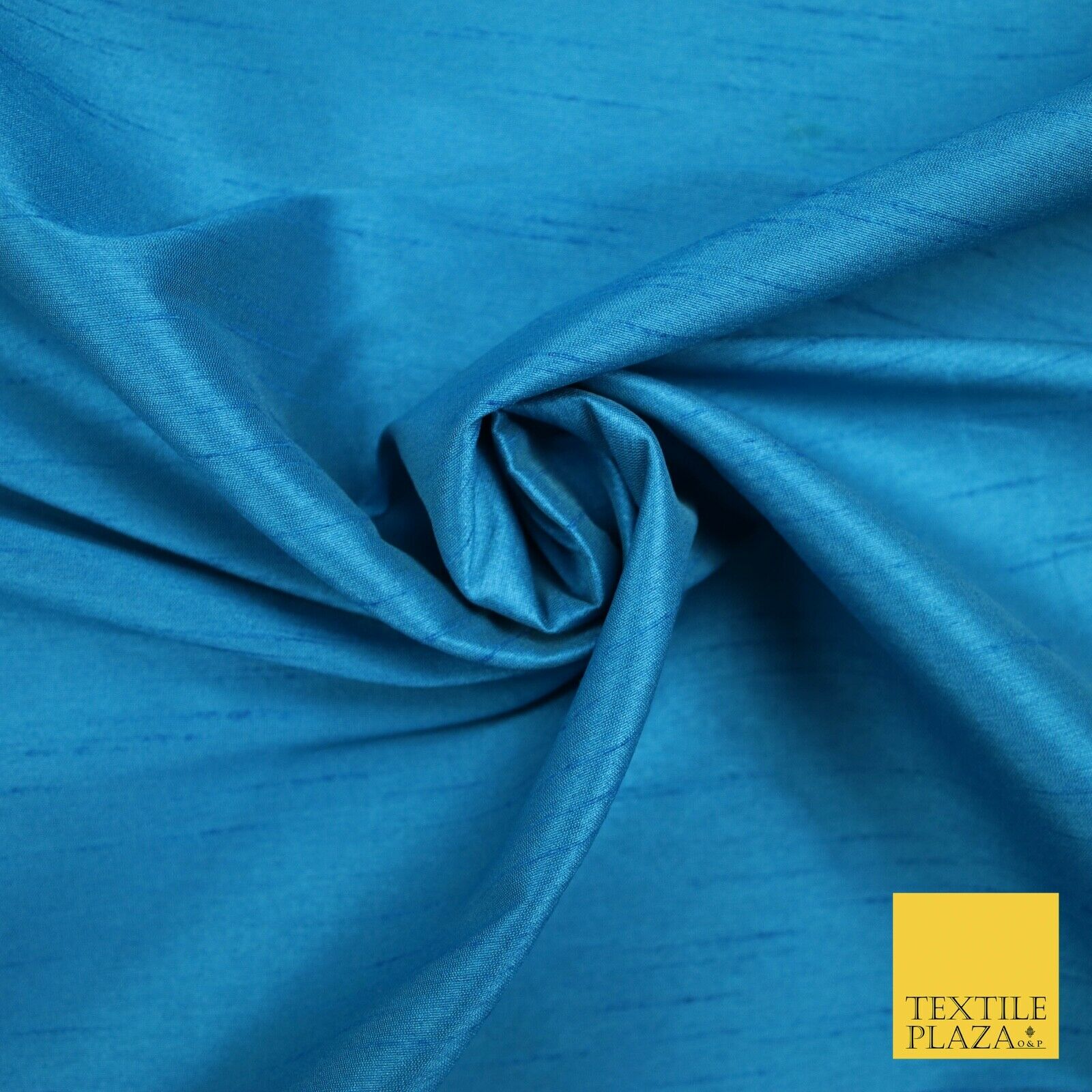 OVER 10 COLOURS Plain Dyed Faux Dupion Raw Silk 100% Polyester Dress Fabric 56"