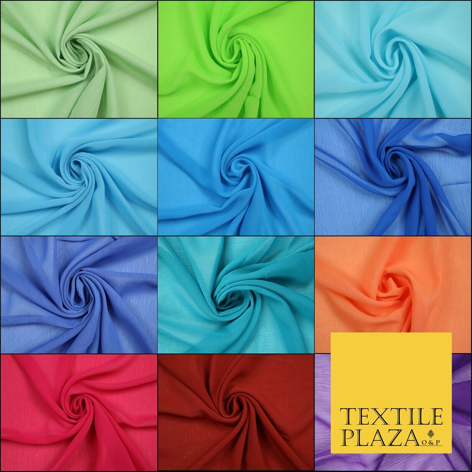 OVER 25 COLOURS - Premium Plain Dyed Crinkle Chiffon Yoryu 75D Dress Fabric 58″