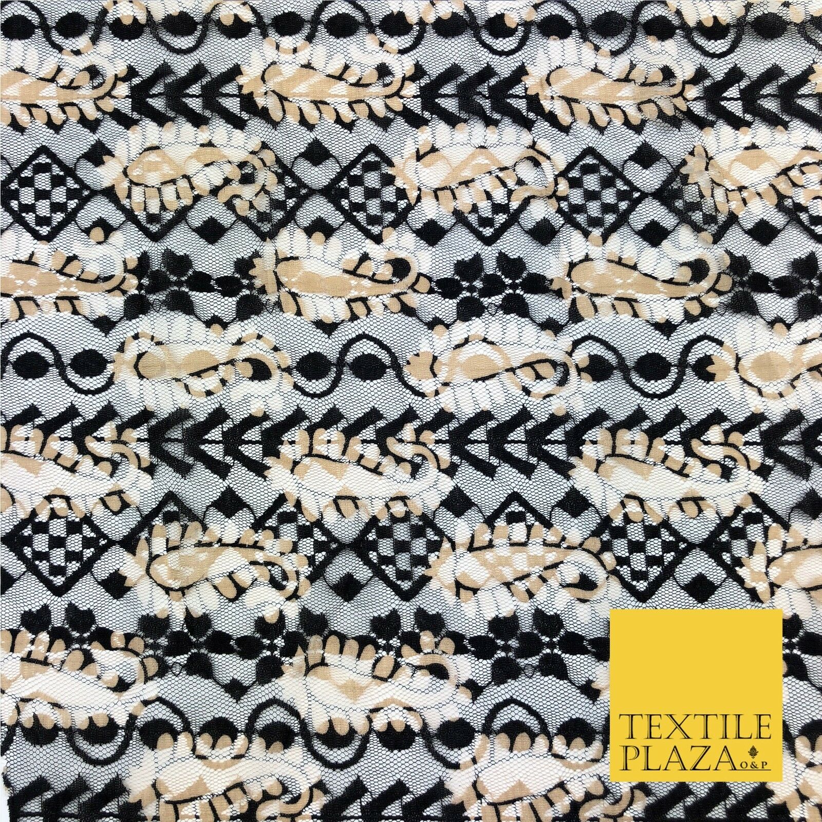 Paisley Geometric Black & Gold Net Lace Fabric Trendy Dress Fashion 45" GE833