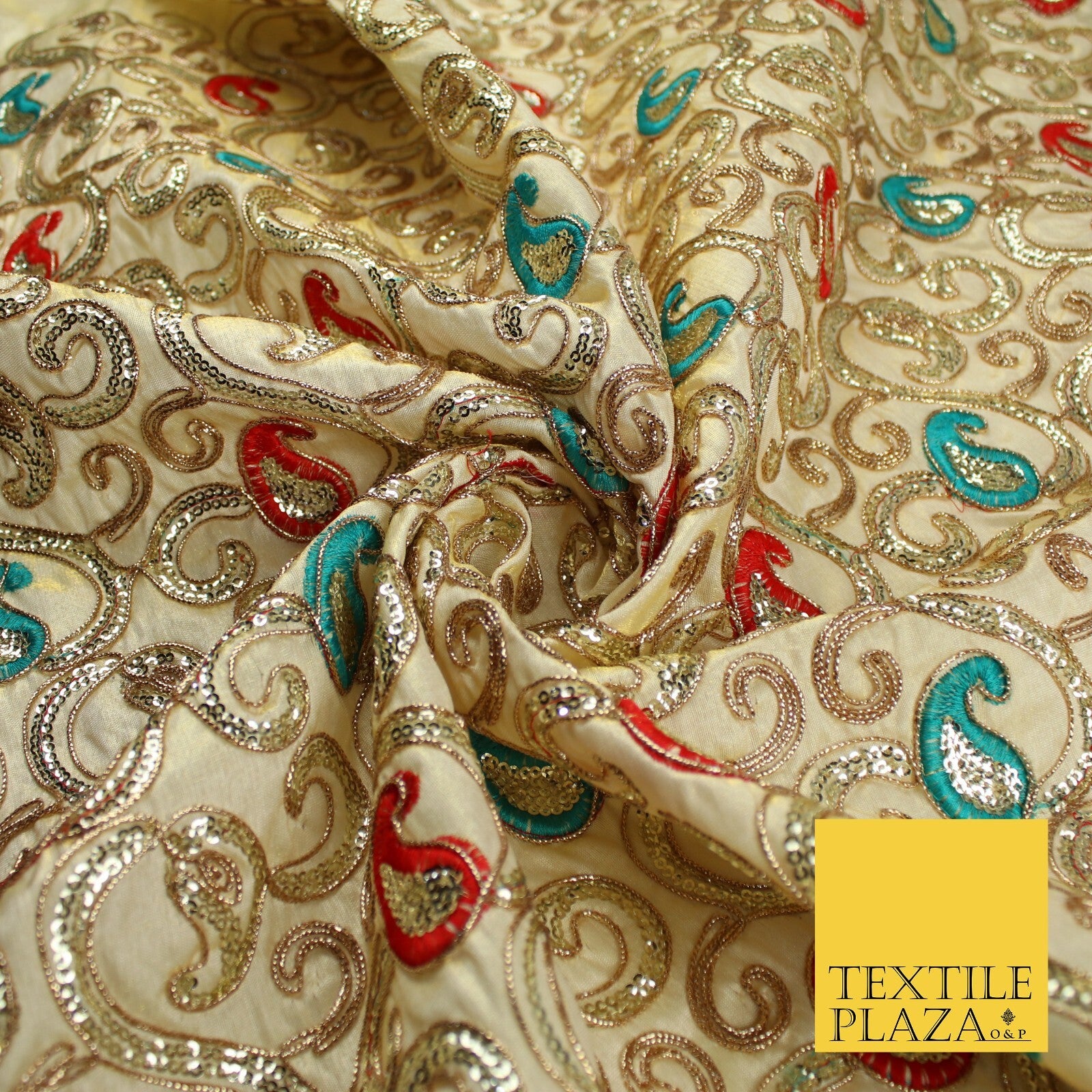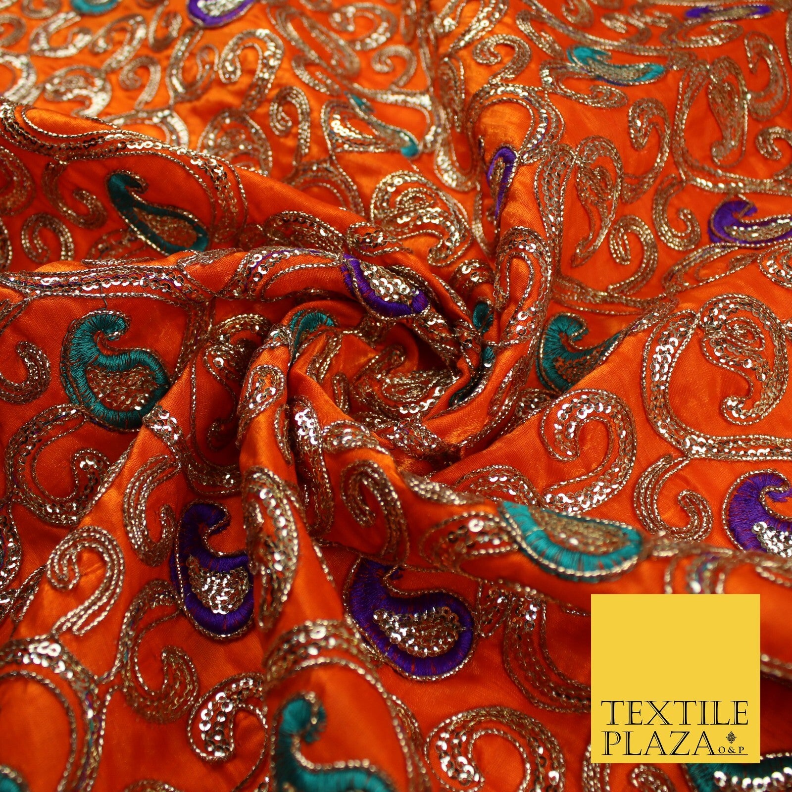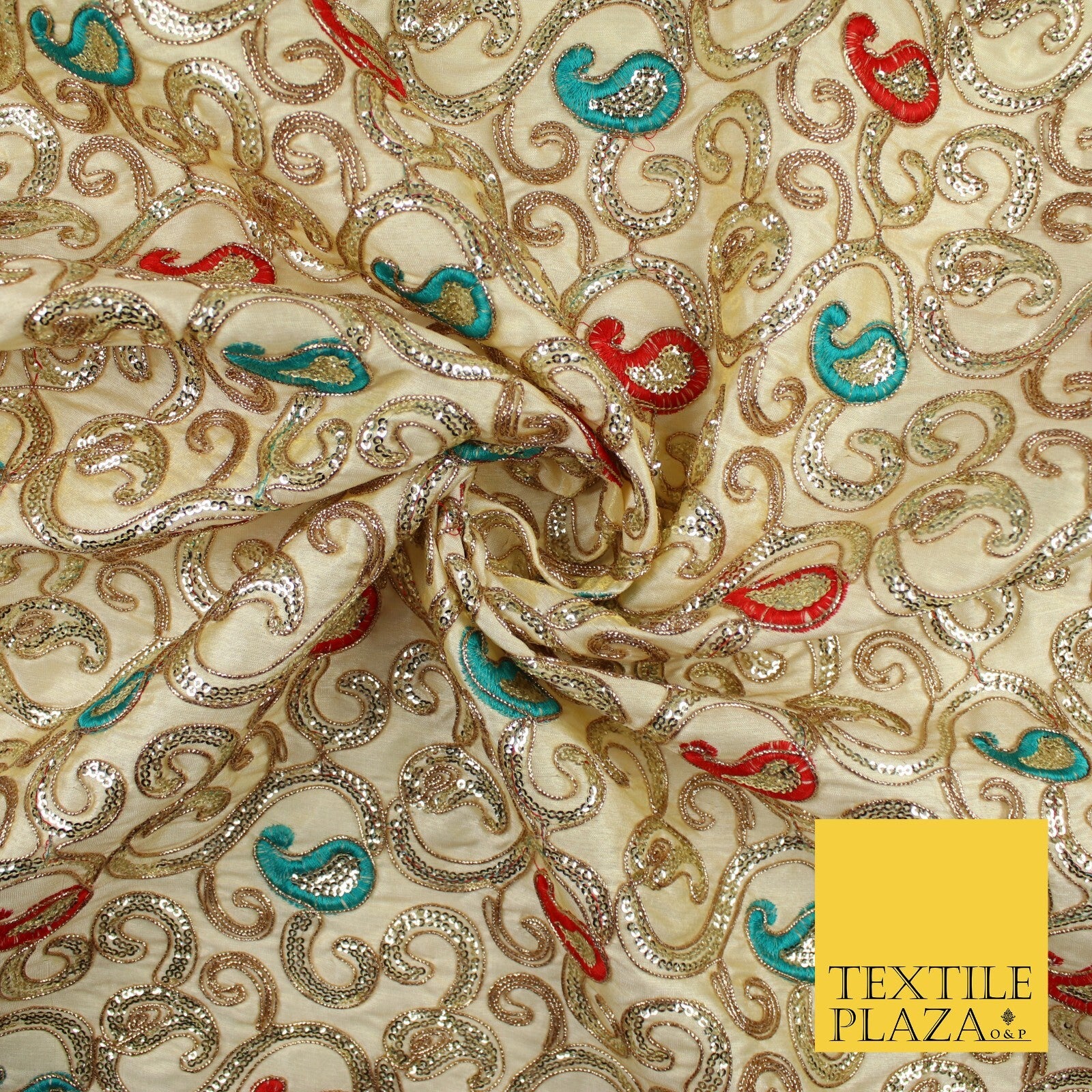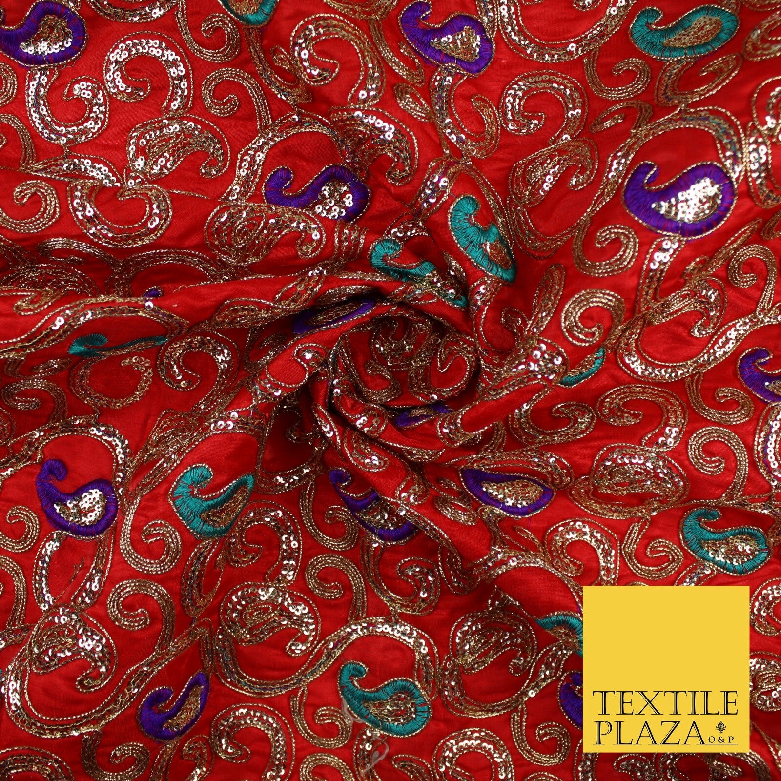 Paisley Swirl Design Embroidered Faux Taffeta Silk Dress Fabric Upholstery 42"