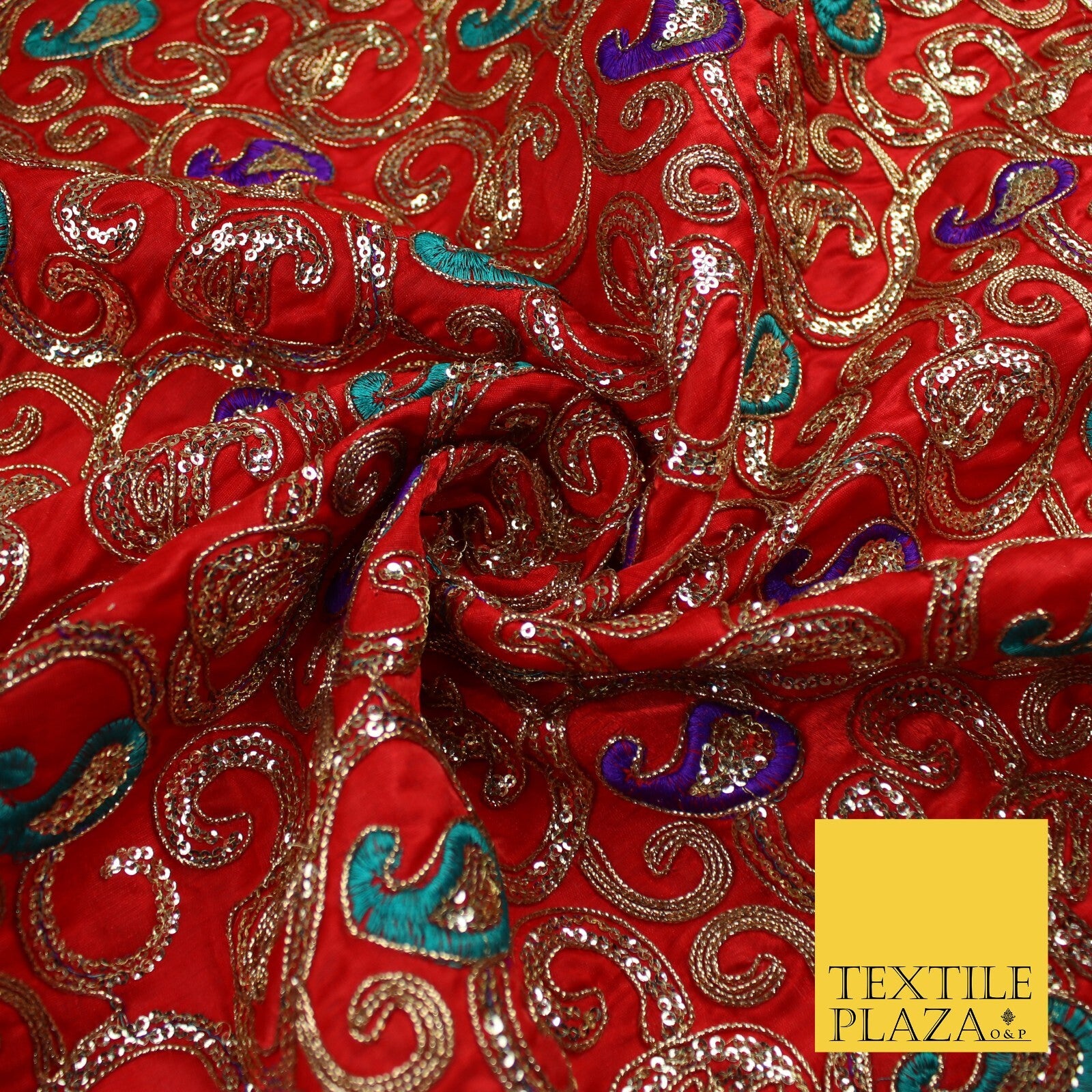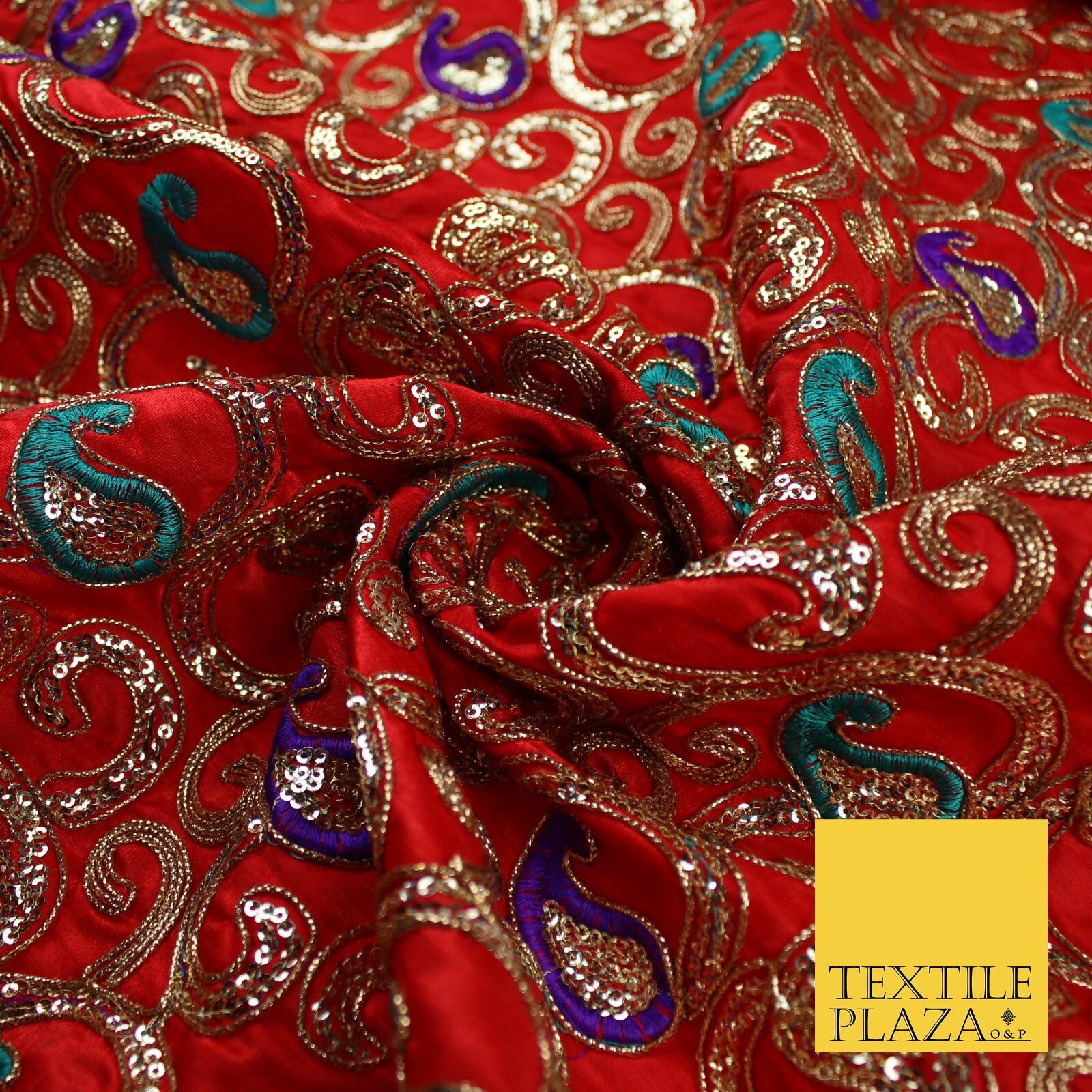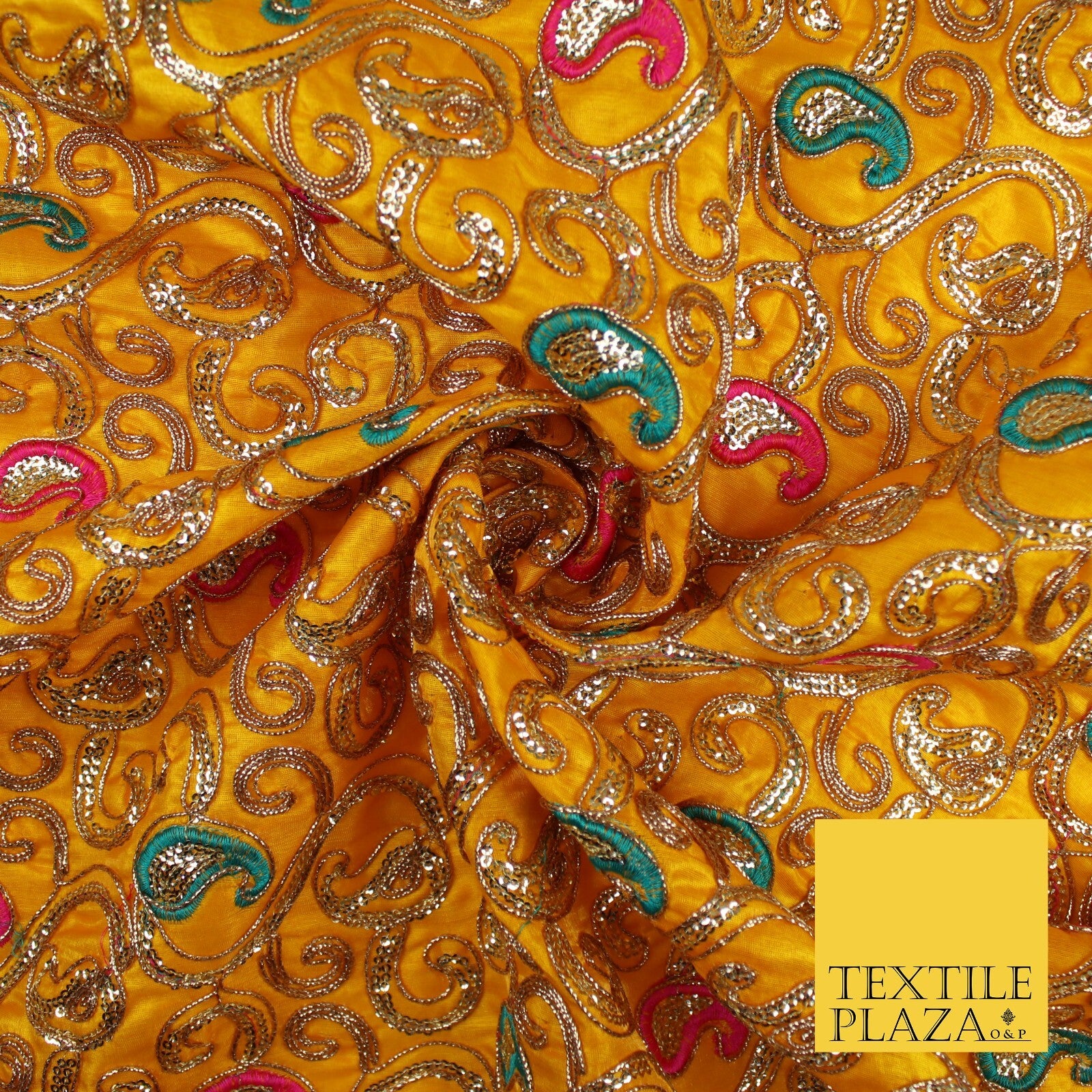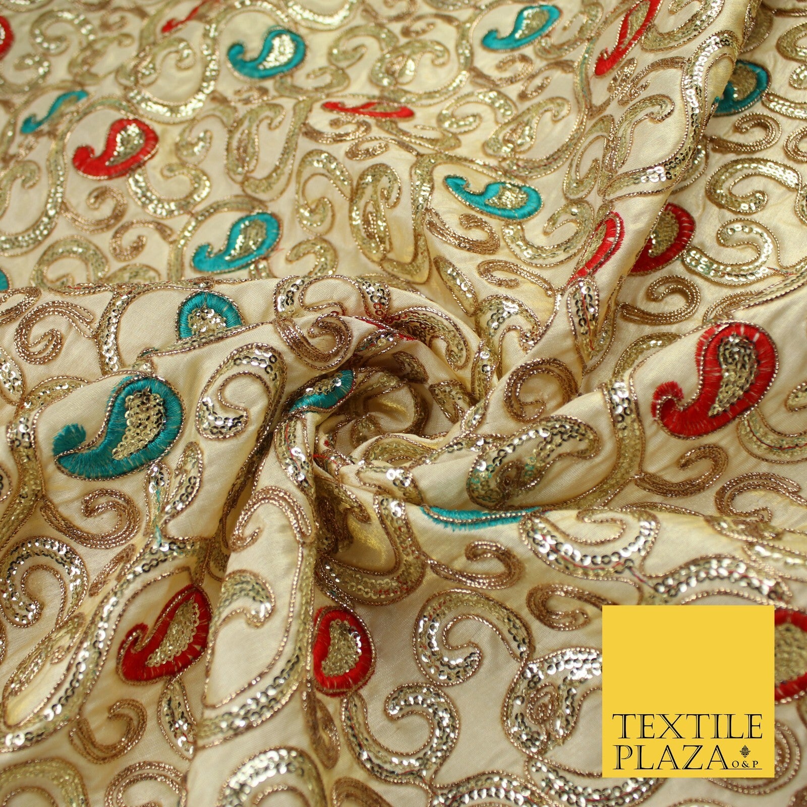 Paisley Swirl Design Embroidered Faux Taffeta Silk Dress Fabric Upholstery 42"
