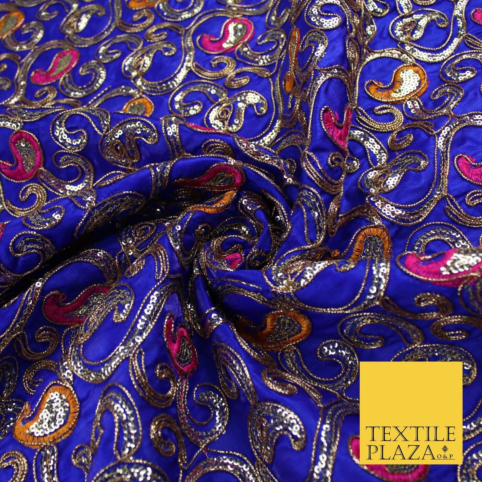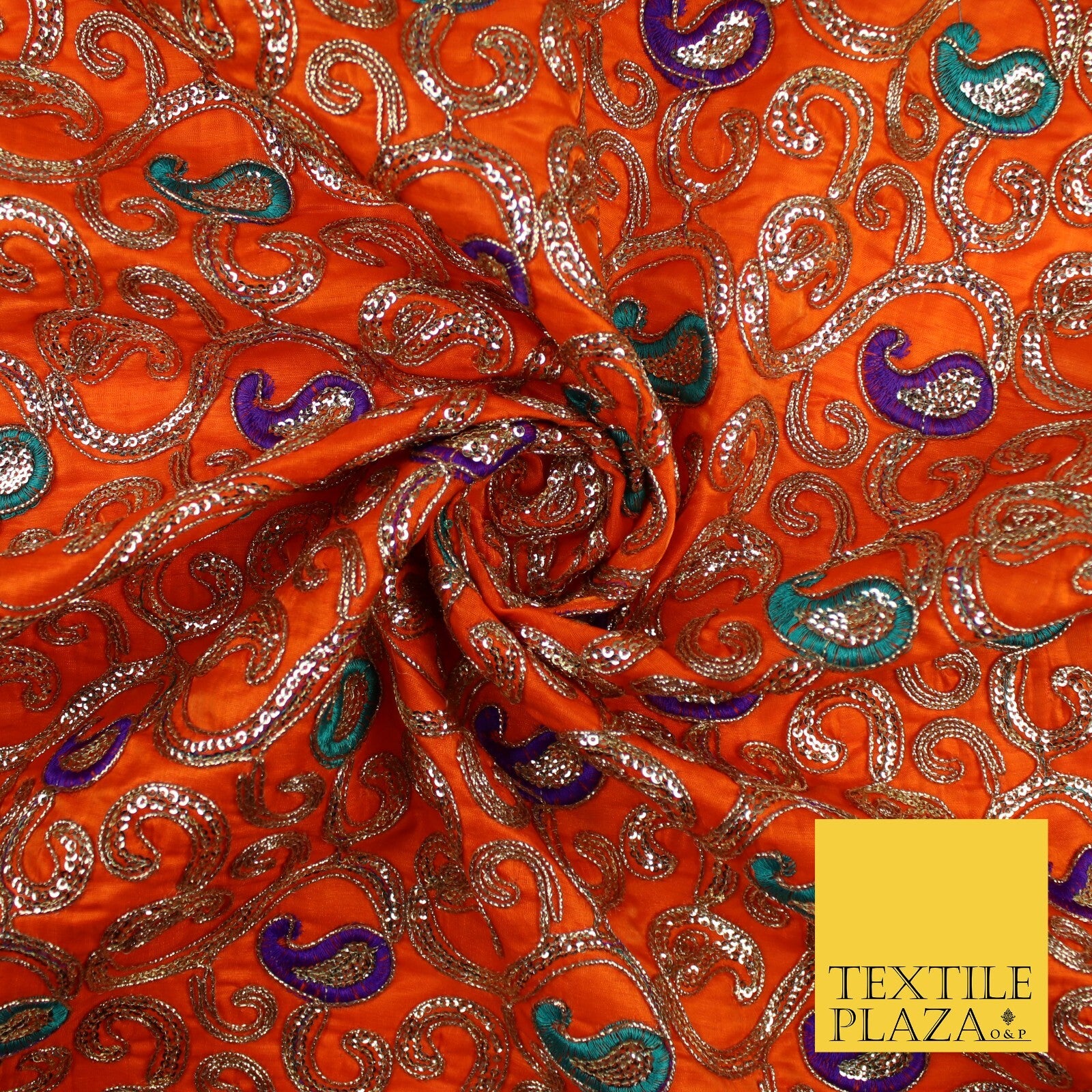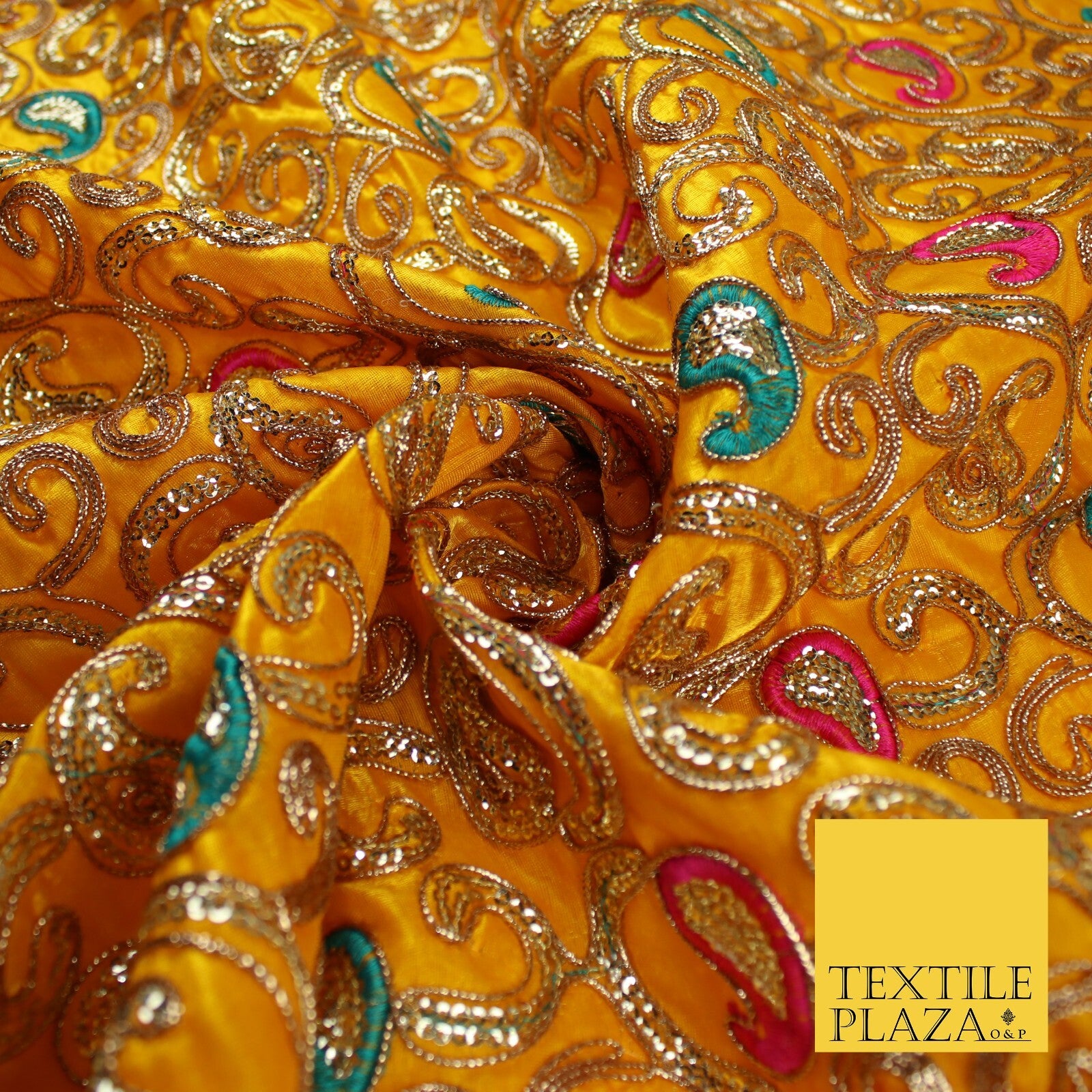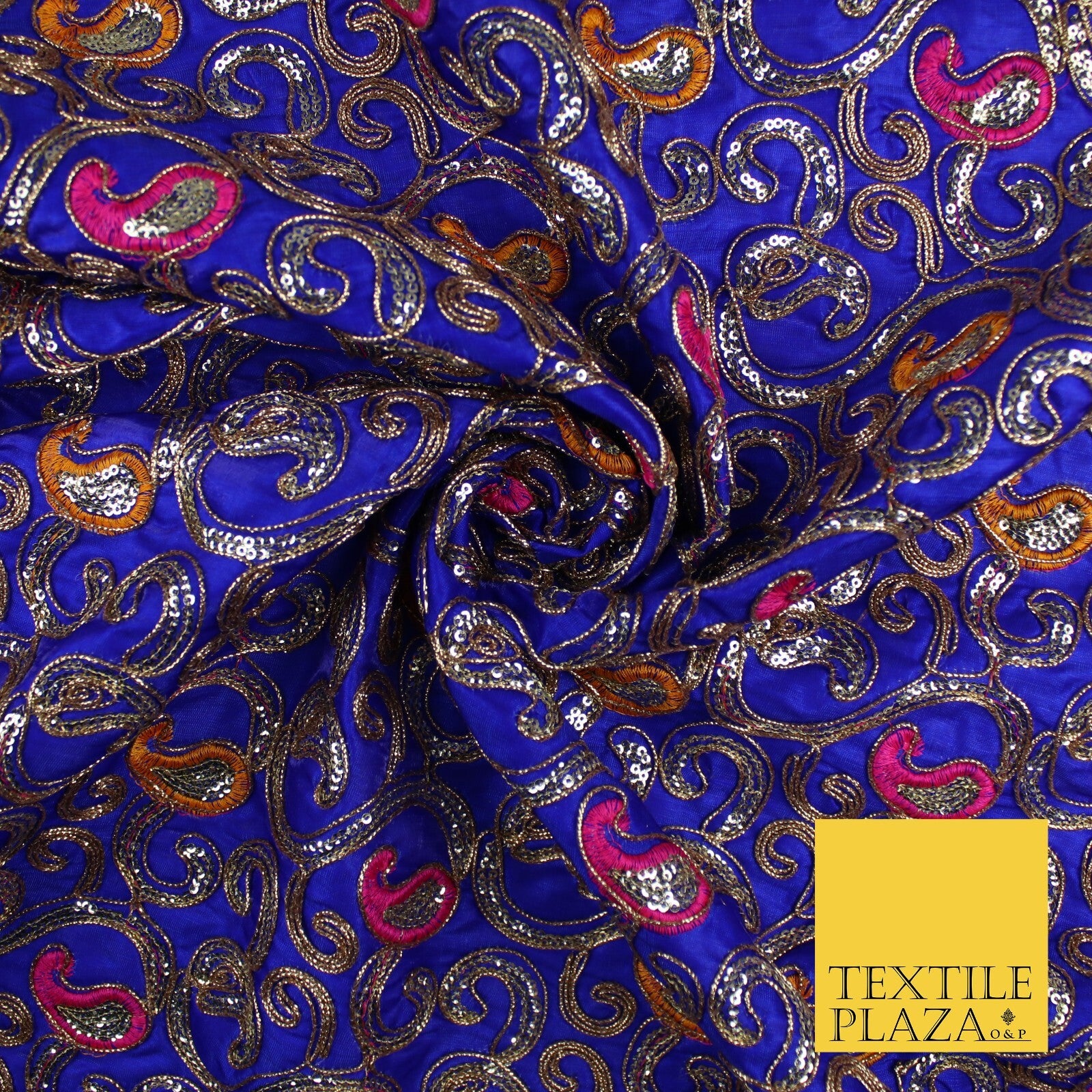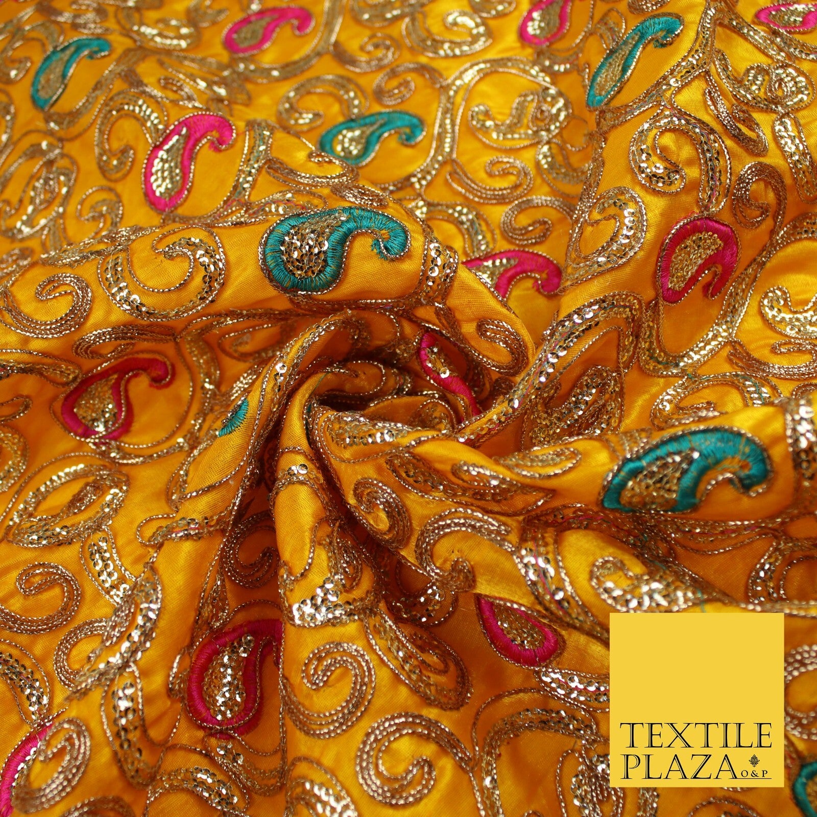 Paisley Swirl Design Embroidered Faux Taffeta Silk Dress Fabric Upholstery 42"