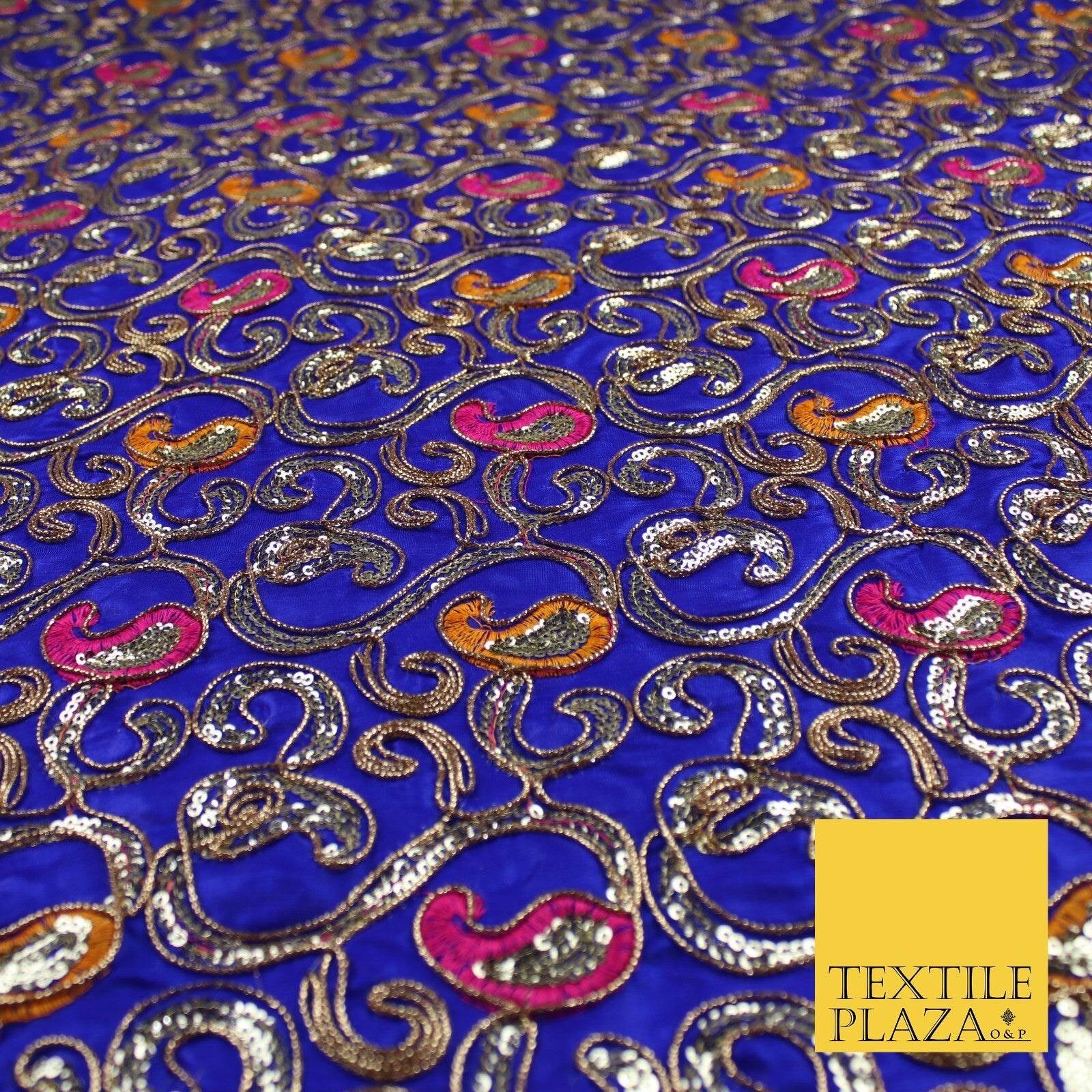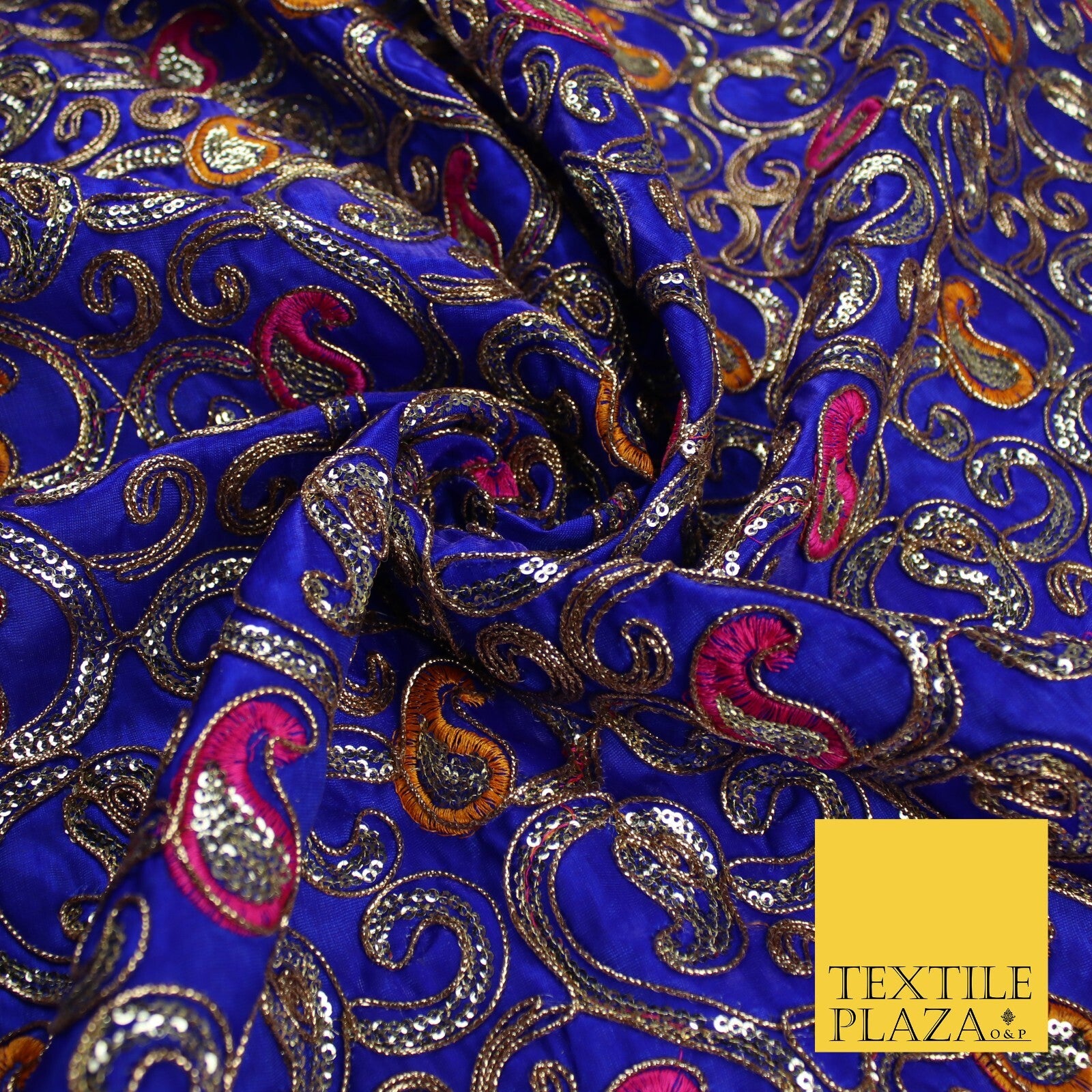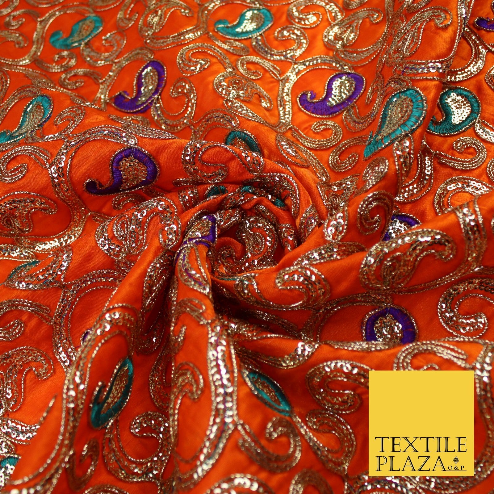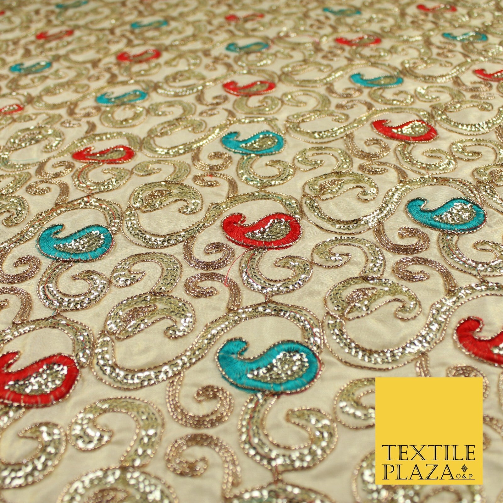 Paisley Swirl Design Embroidered Faux Taffeta Silk Dress Fabric Upholstery 42"