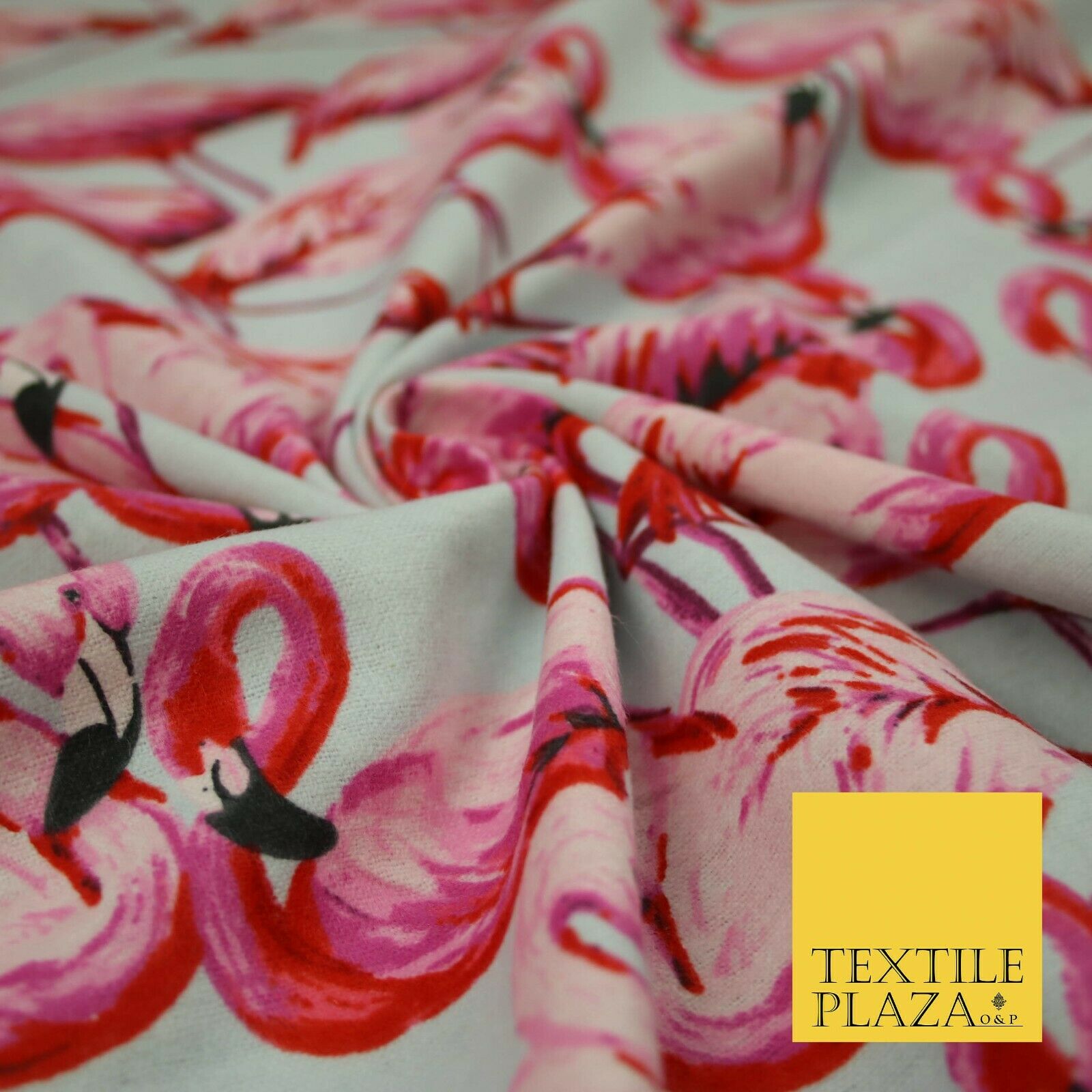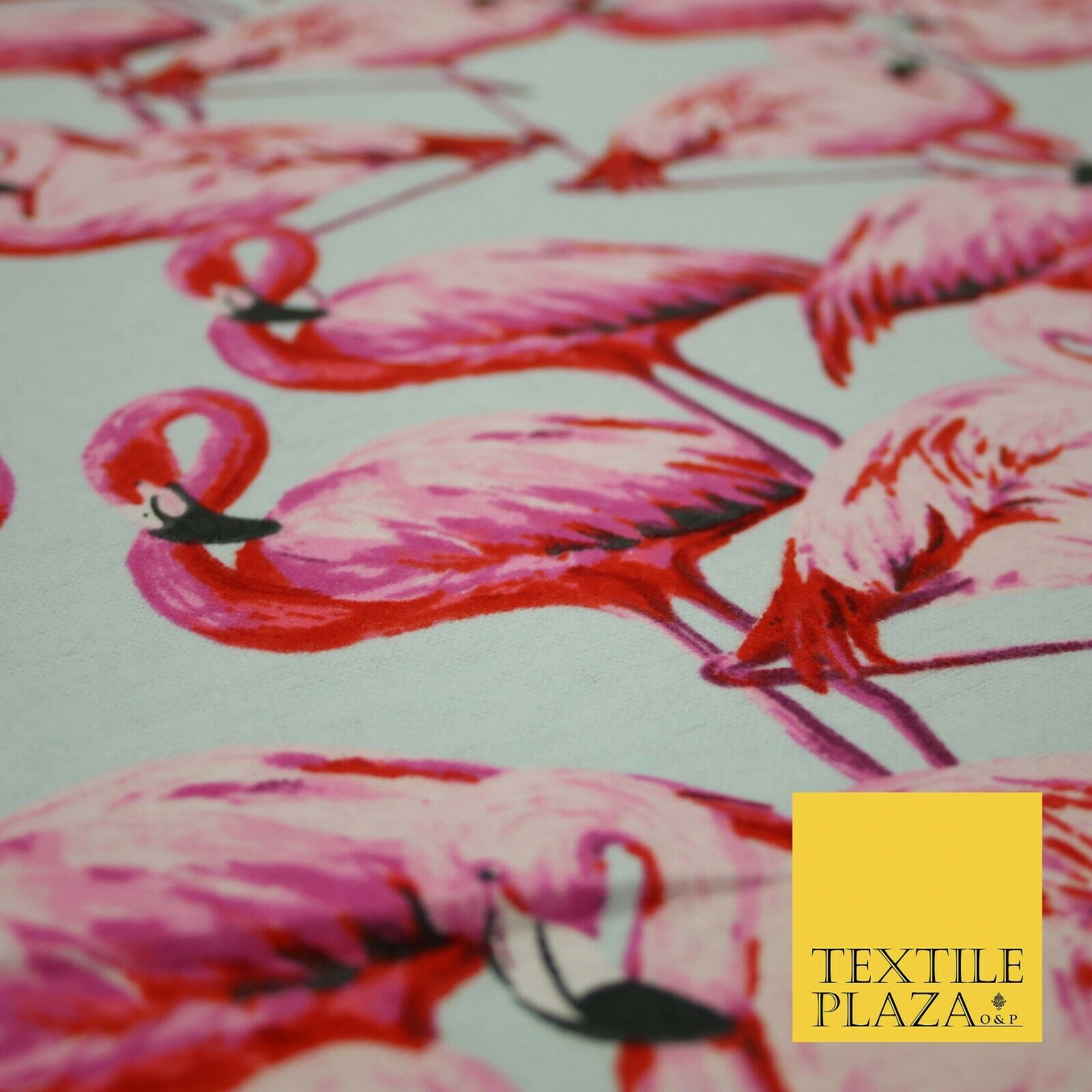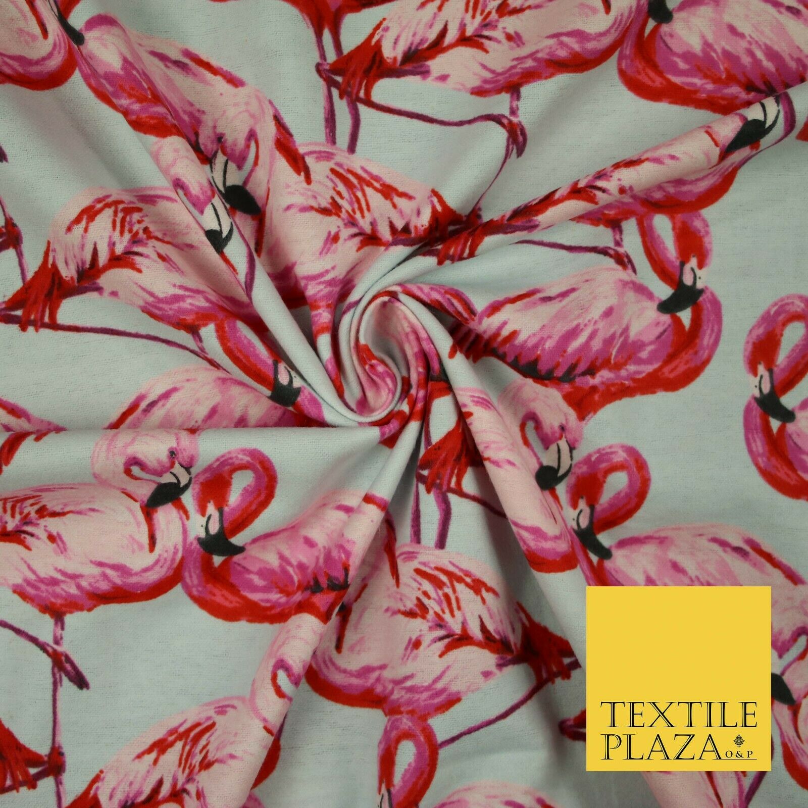 Pale Aqua Blue Large Flamingos Brushed Cotton Winceyette Fabric Flannel 5530