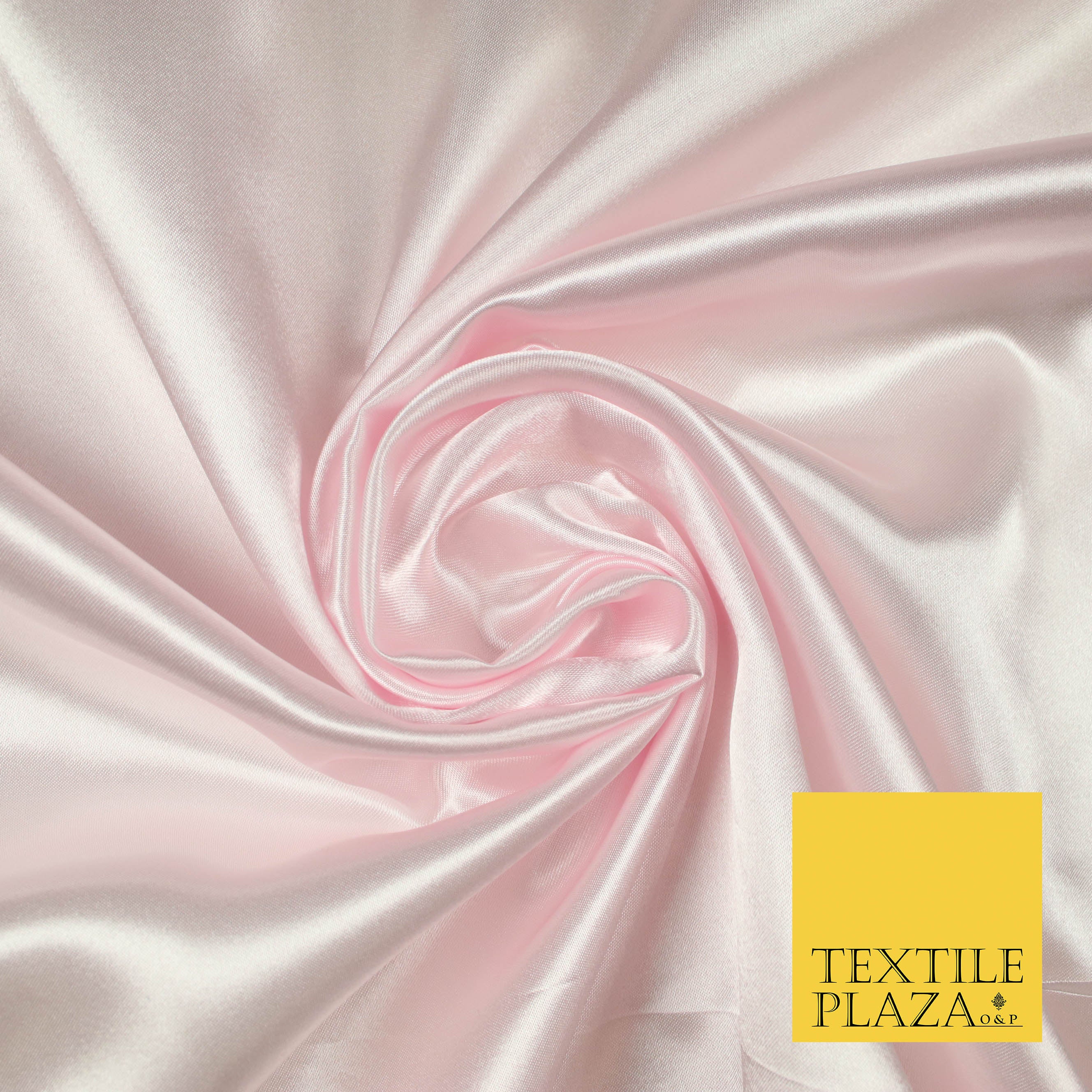 PALE BABY PINK Luxury Plain Smooth Shiny Lightweight Poly Satin Fabric Dress Lining Material 58" 5698
