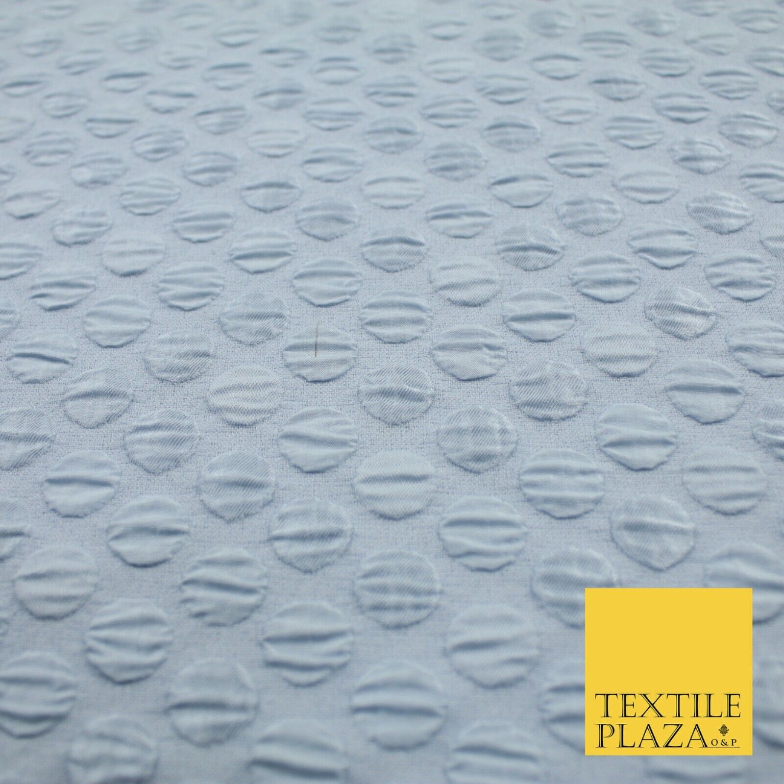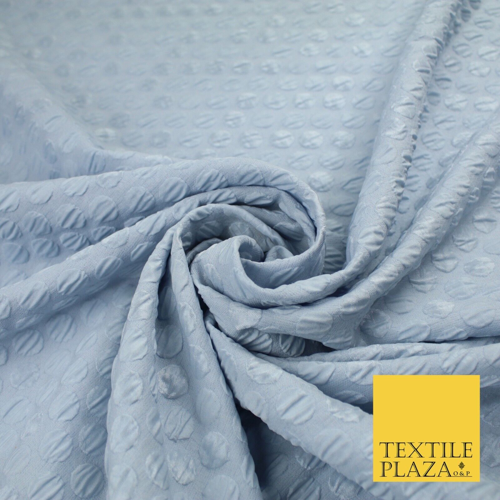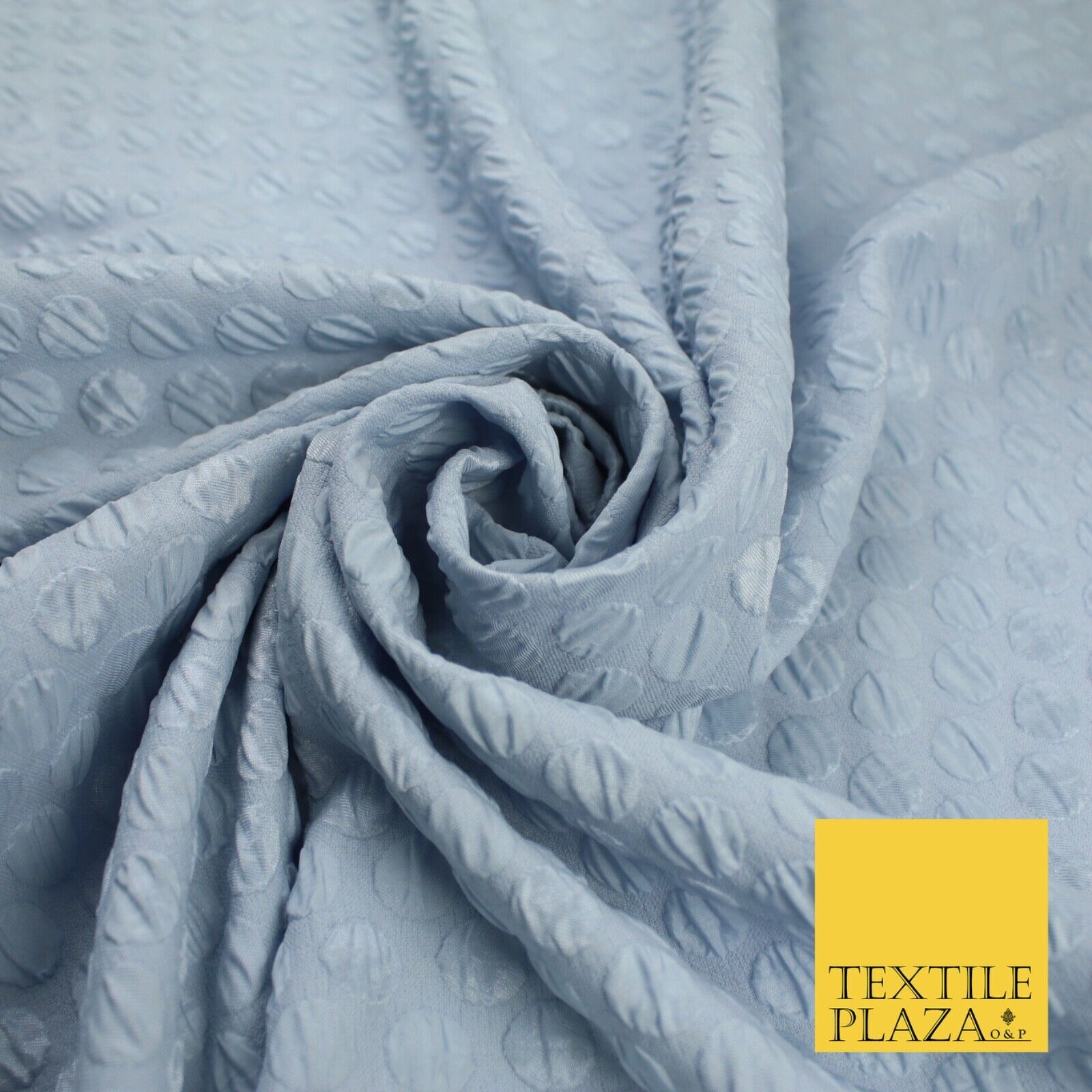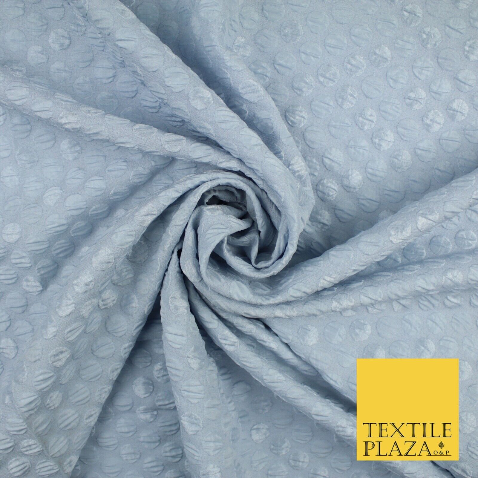 Pale Blue Polka Dot Dots Dimple Bubble Textured Brocade Dress Fabric 9923