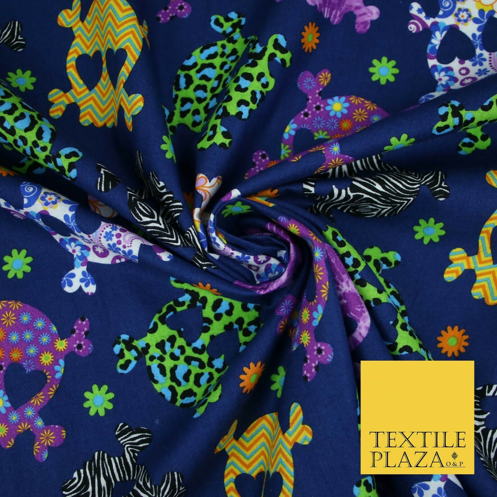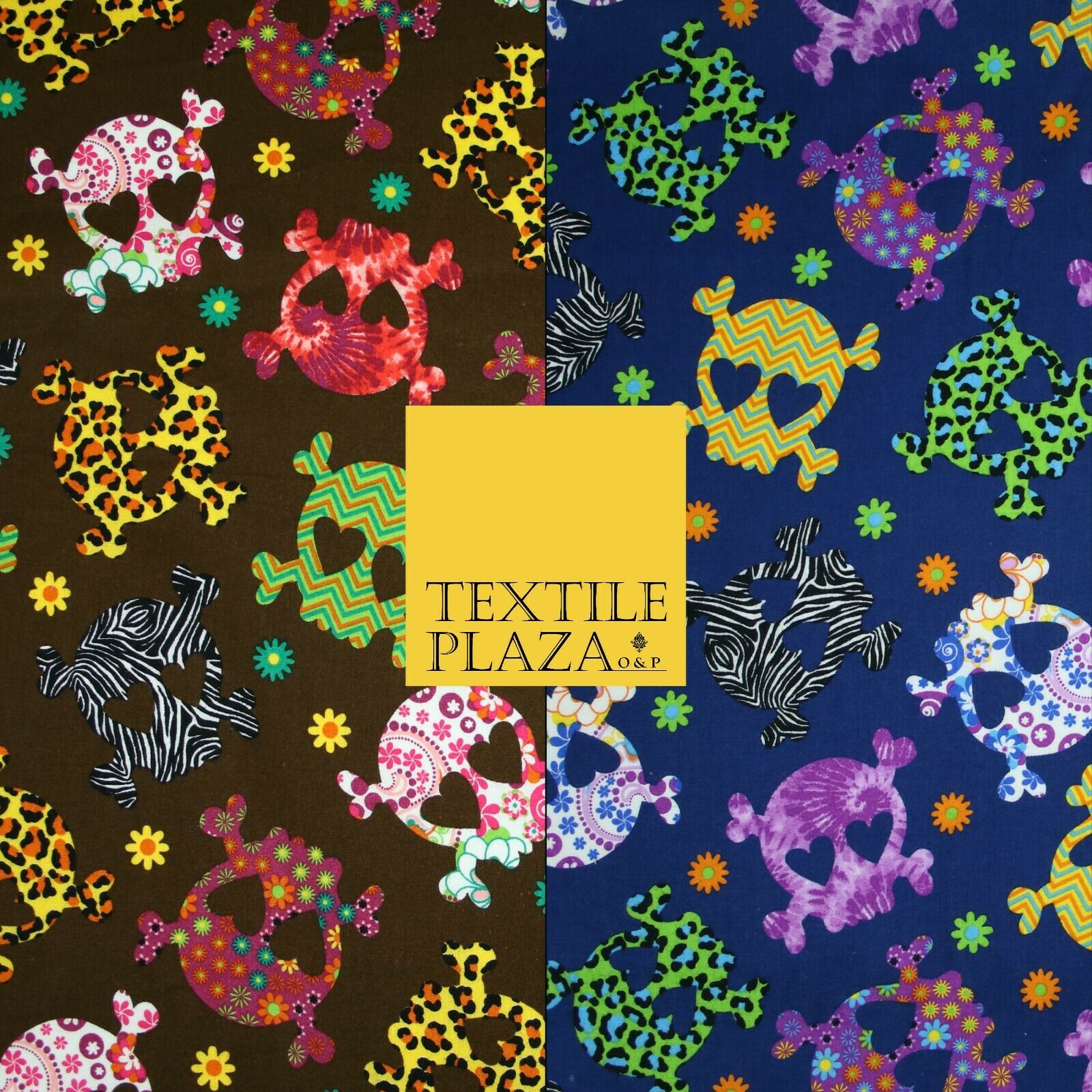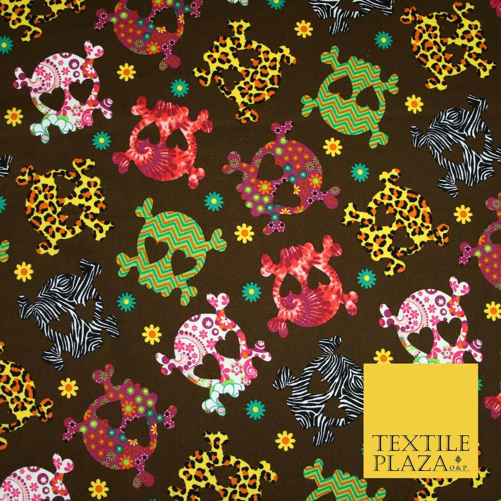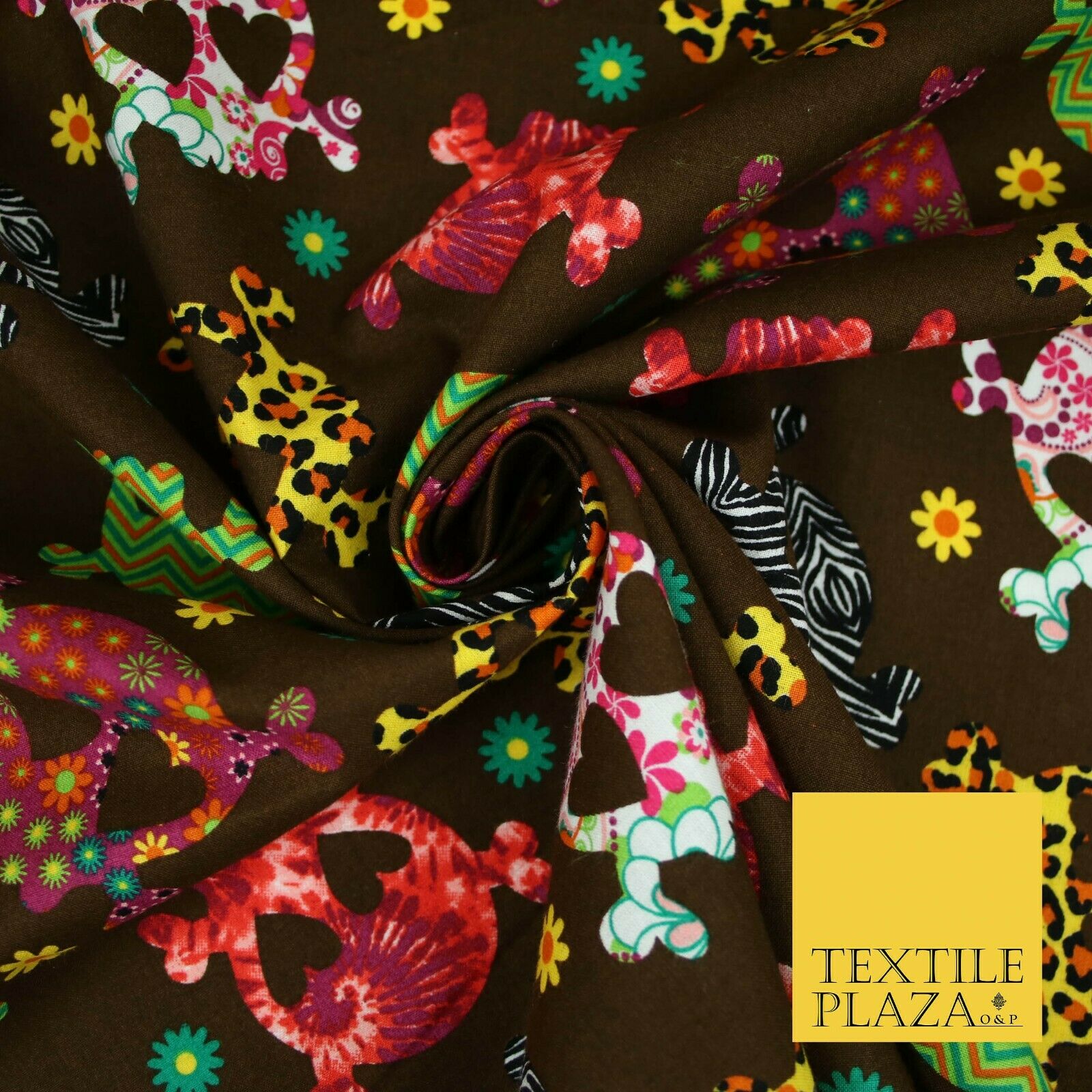 Patterned Animal Leopard Heart Eyed Skull Cross Bones Printed 100% Cotton Fabric
