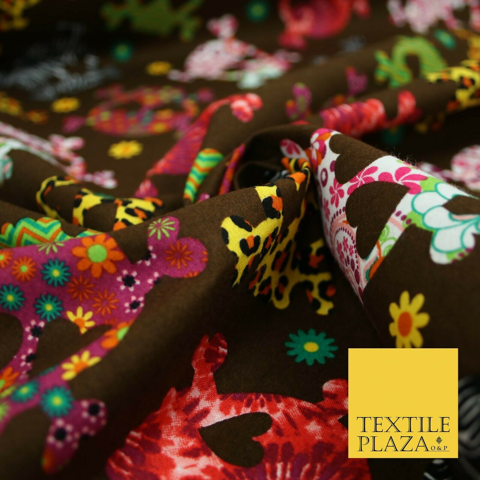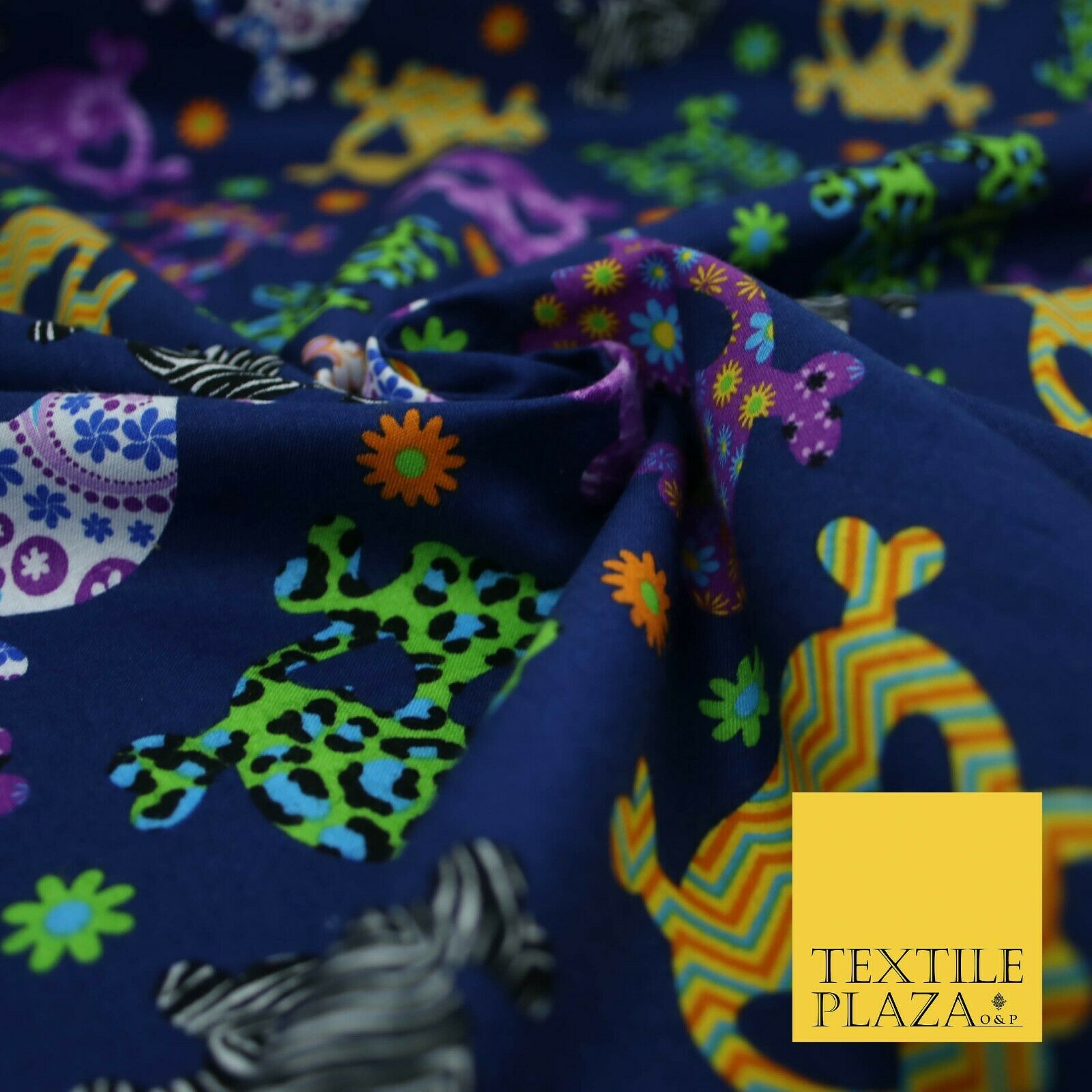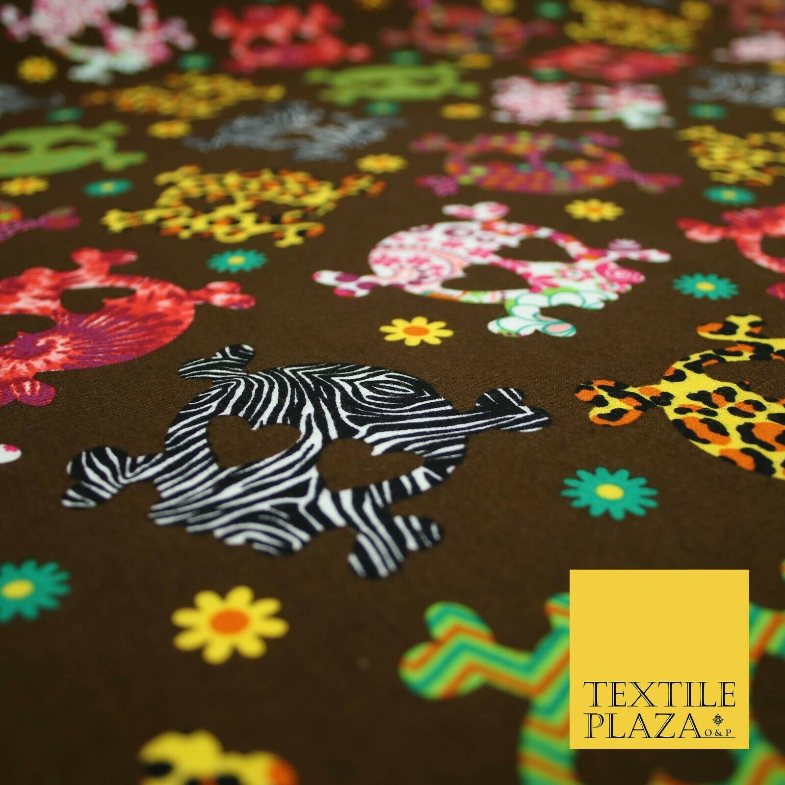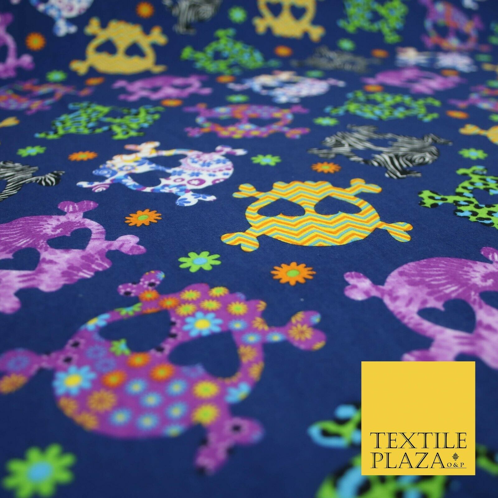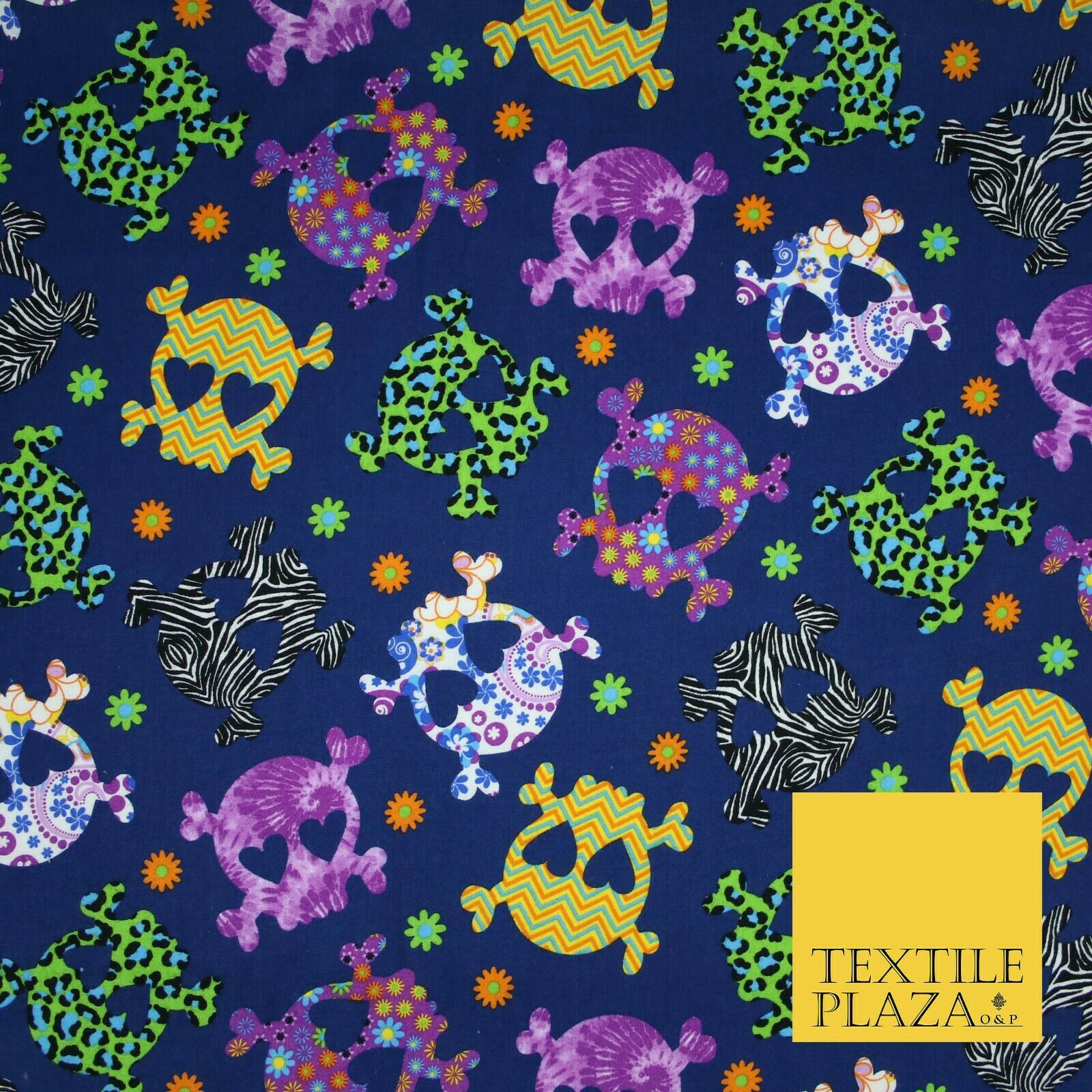 Patterned Animal Leopard Heart Eyed Skull Cross Bones Printed 100% Cotton Fabric