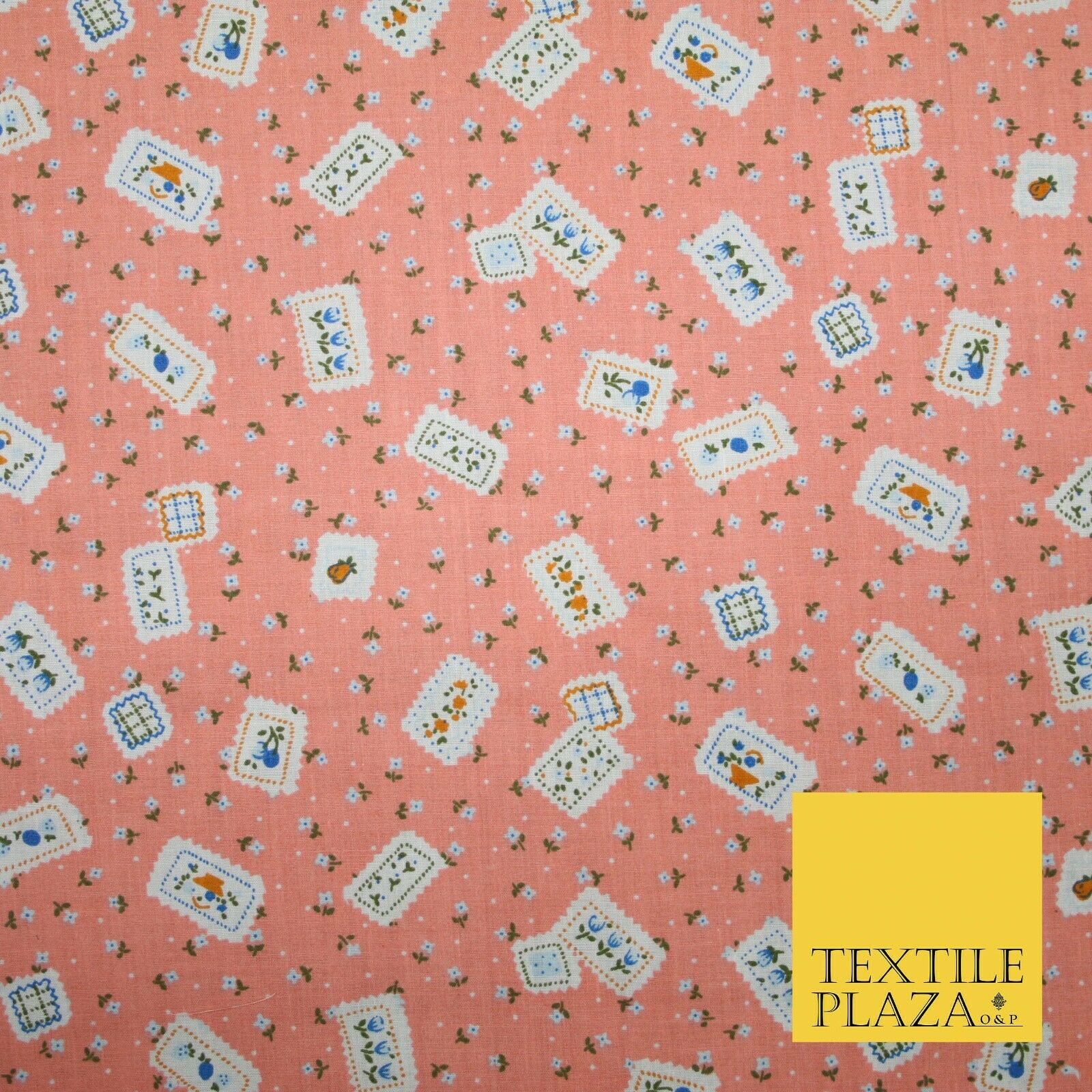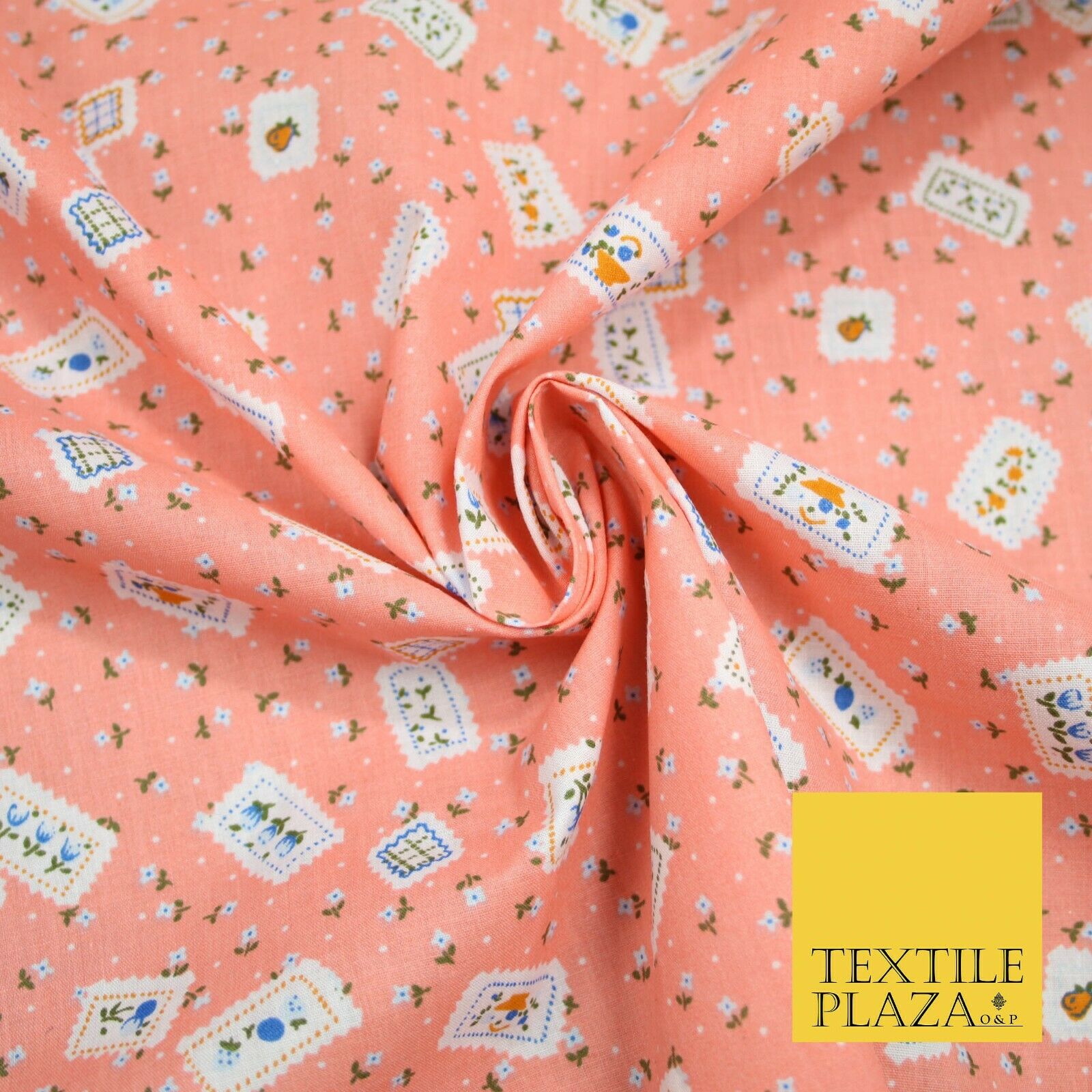 Peach Floral Ditsy Patchwork Flower Printed Poly Cotton Fabric Polycotton 5018