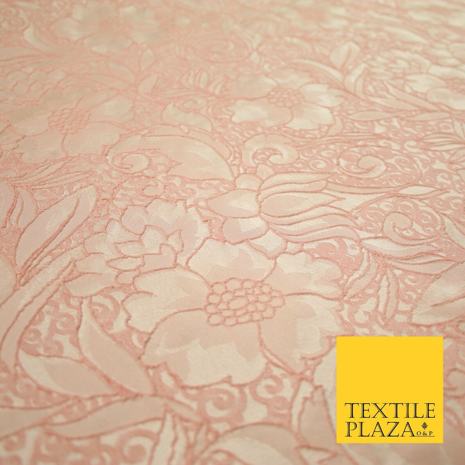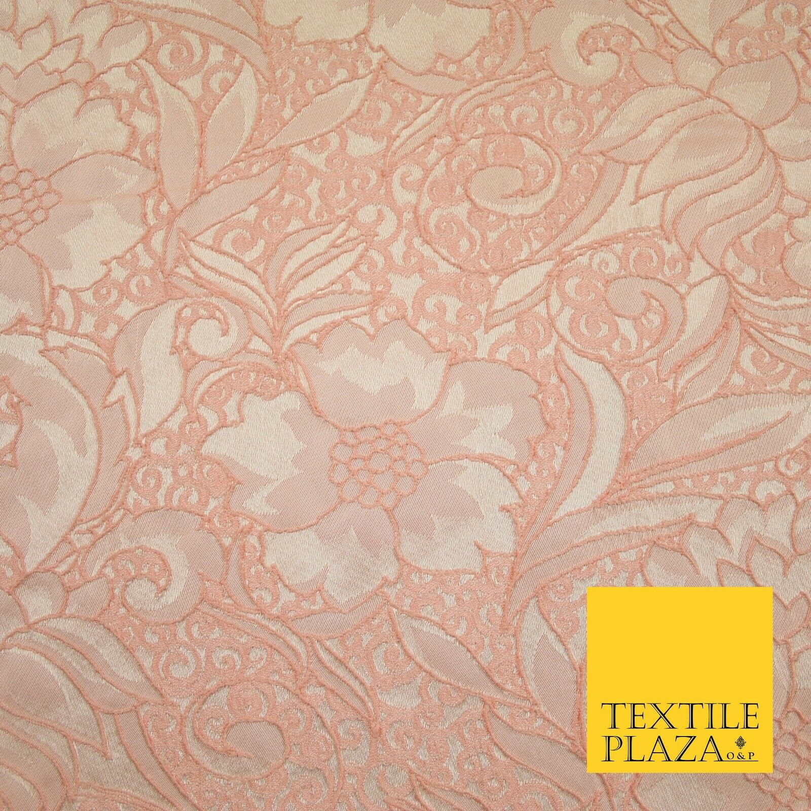 Peach Ornate Mix Floral Swirls Corded Textured Brocade Jacquard Fabric 7168