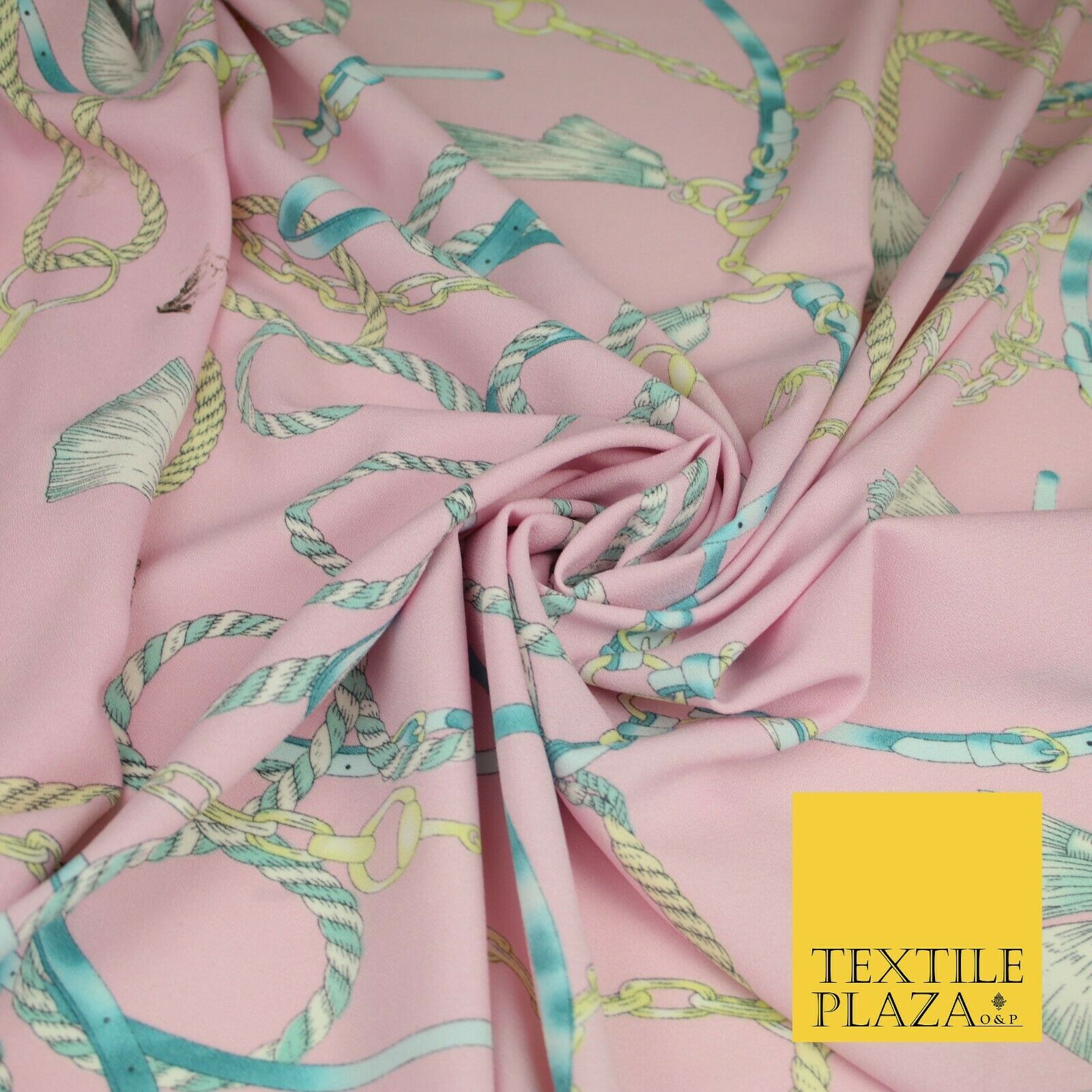 Pink Belt Chains Ropes Printed Textured Stretch Jersey Dress Fabric Craft 2073