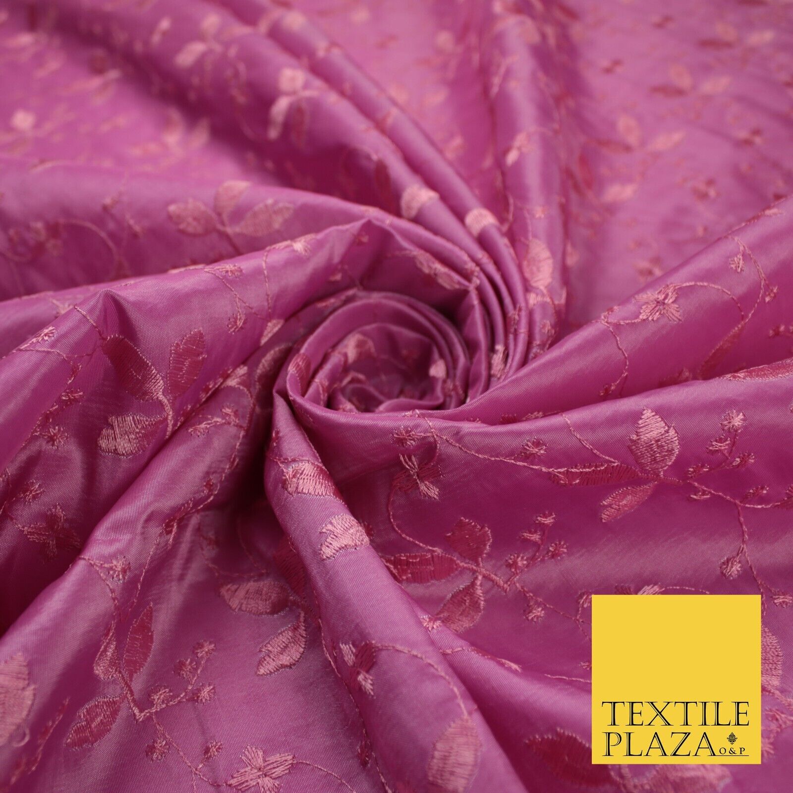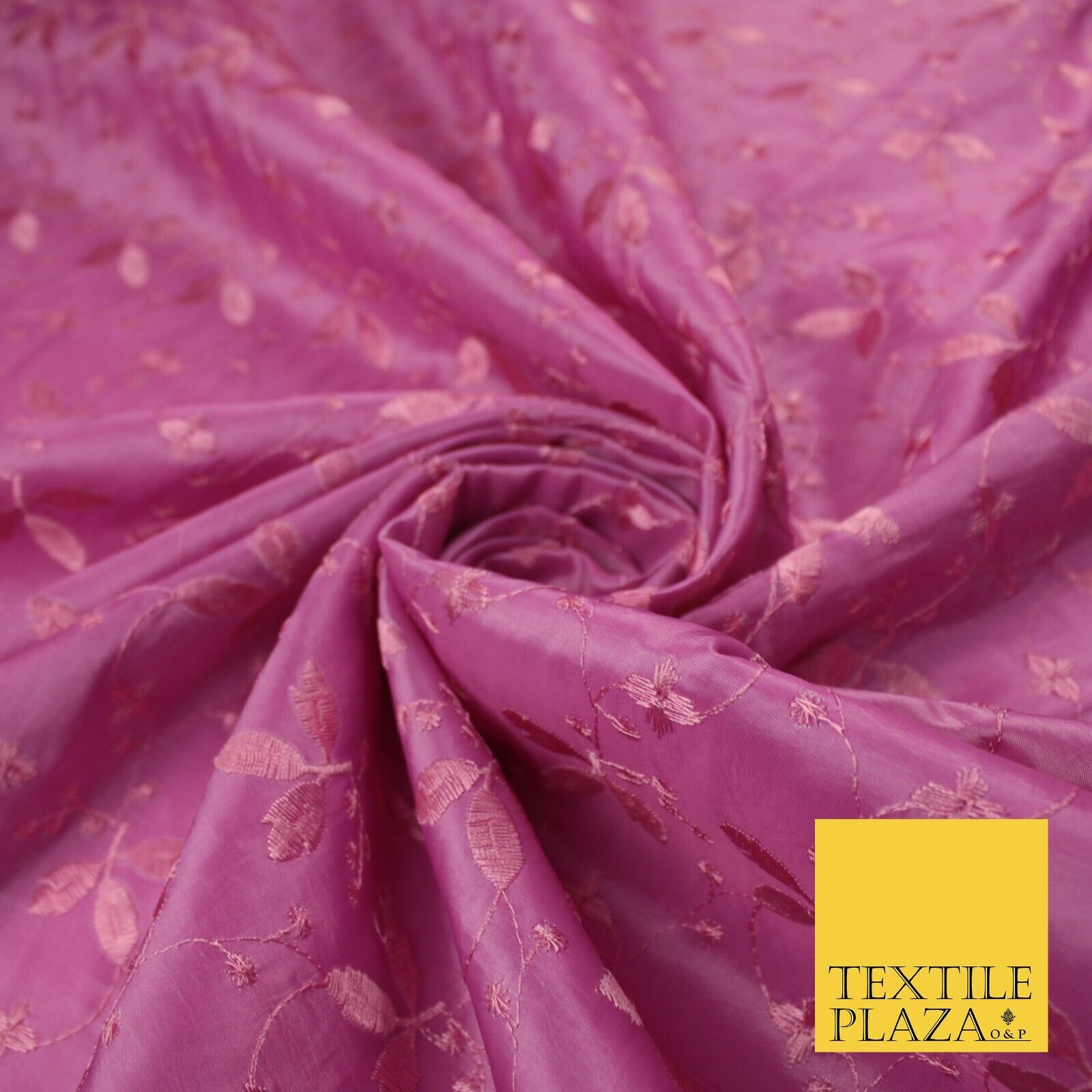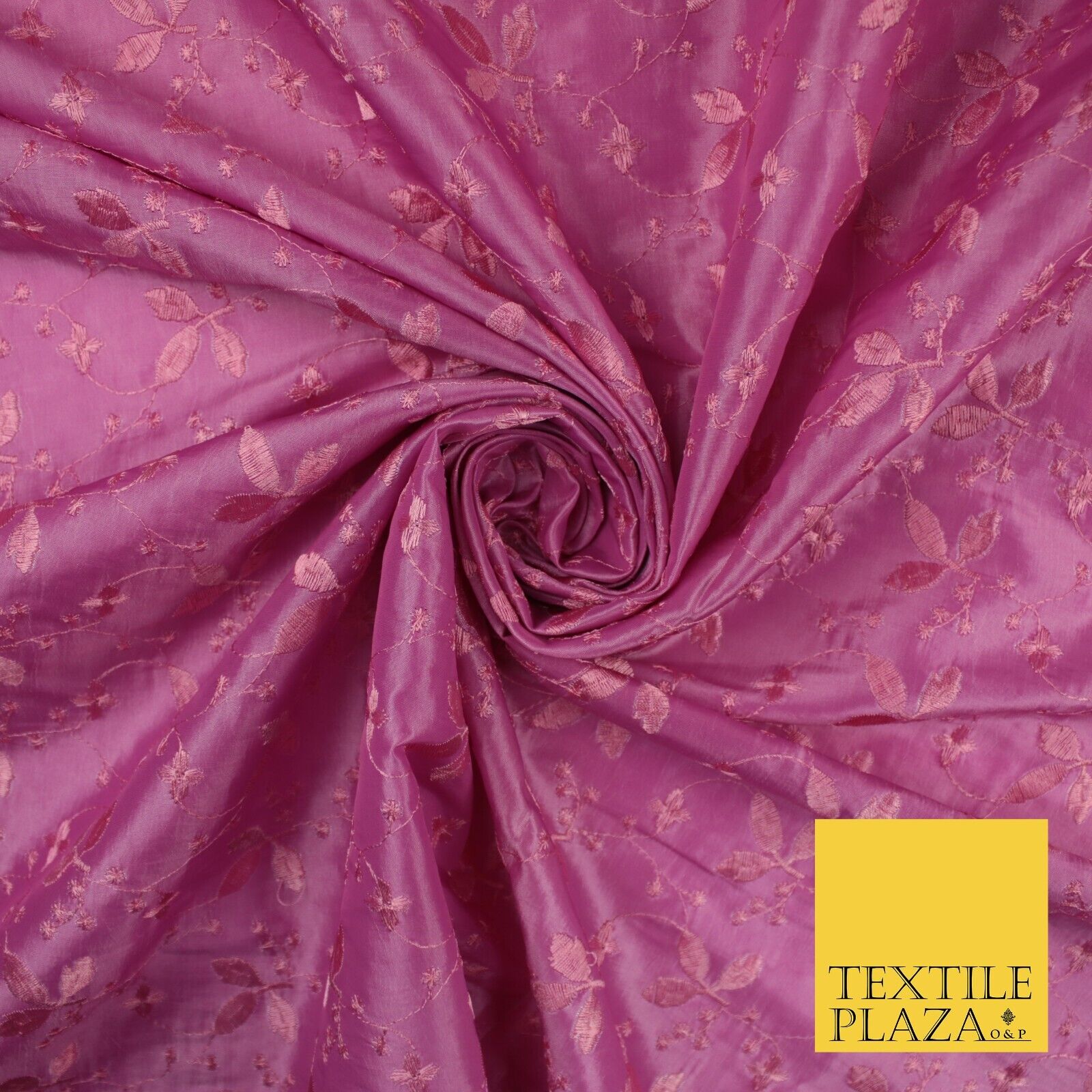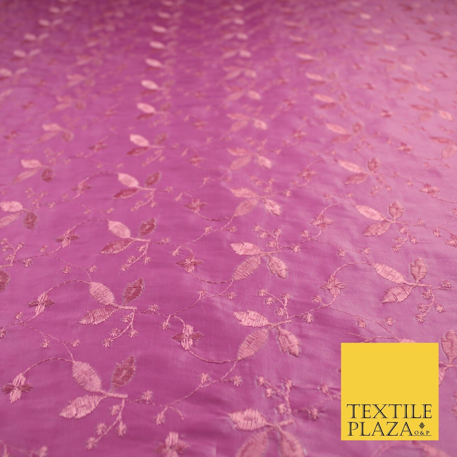 Pink Faux Silk Taffeta with Vine Leaf Thread work Embroidery Fabric 59" 10388