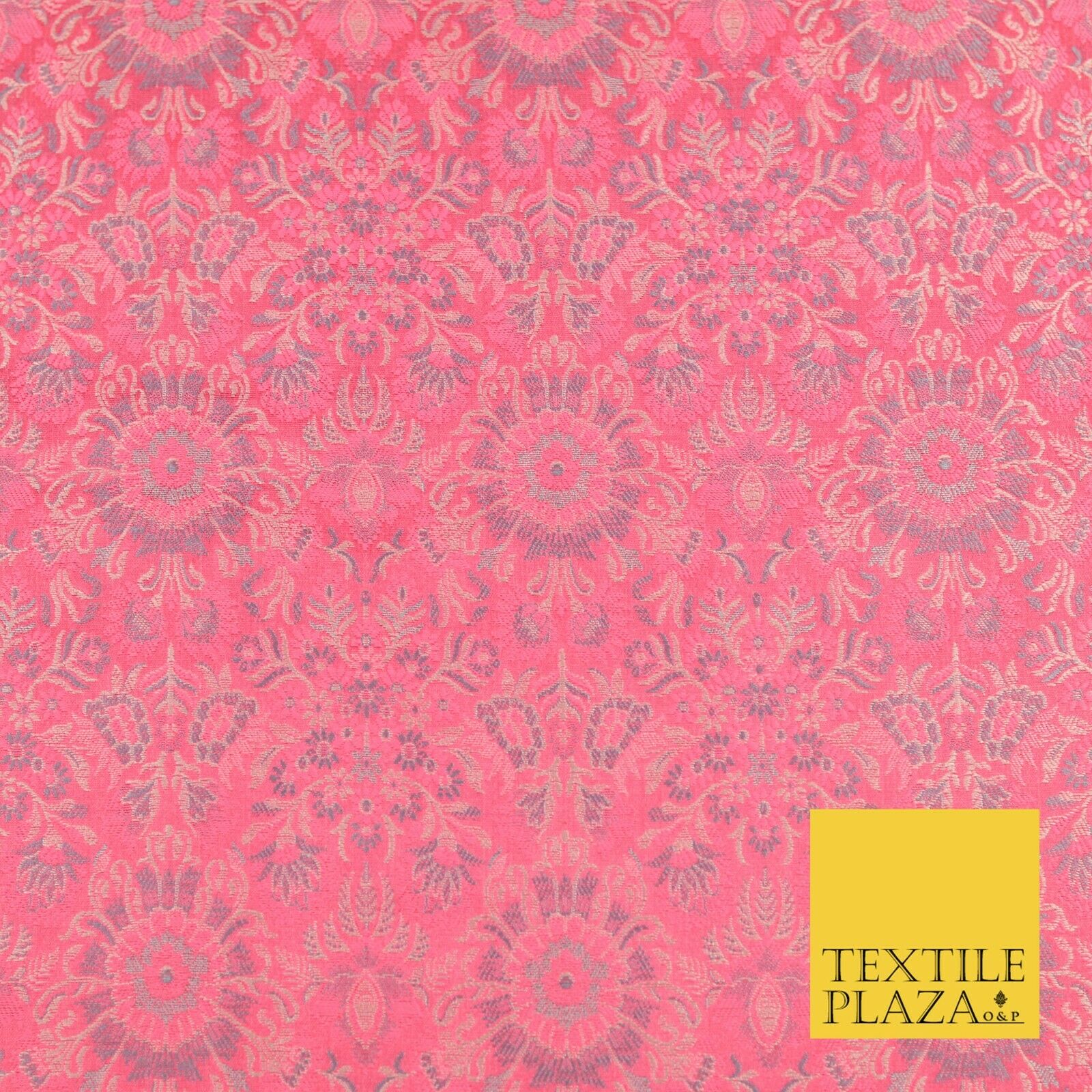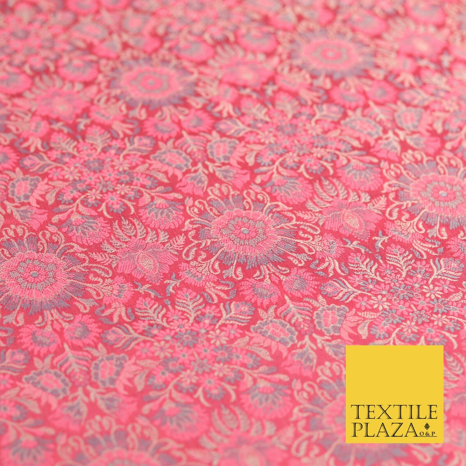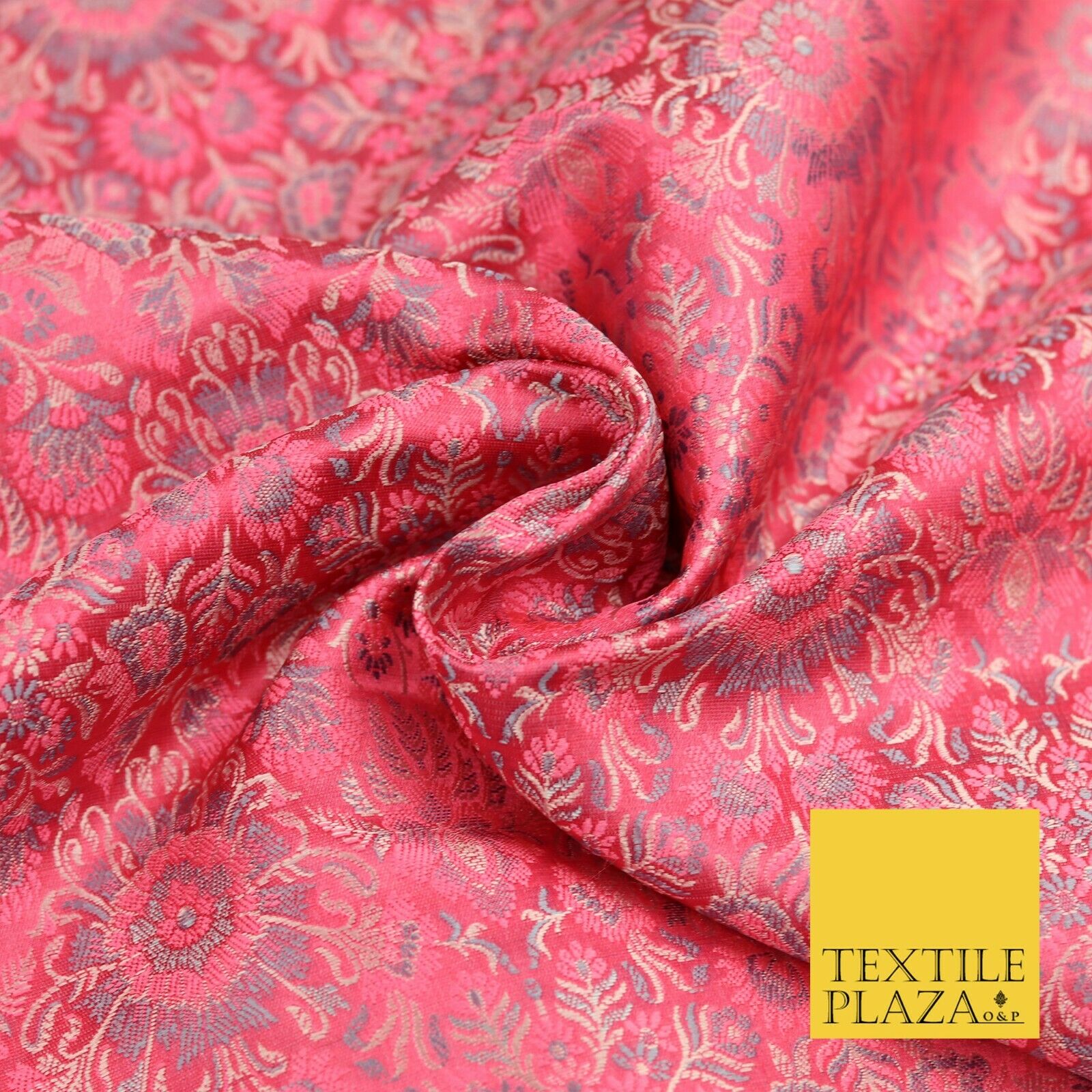Pink Luxury Flowers PURE Benarsi Brocade Woven Dress Fabric Fancy 1745